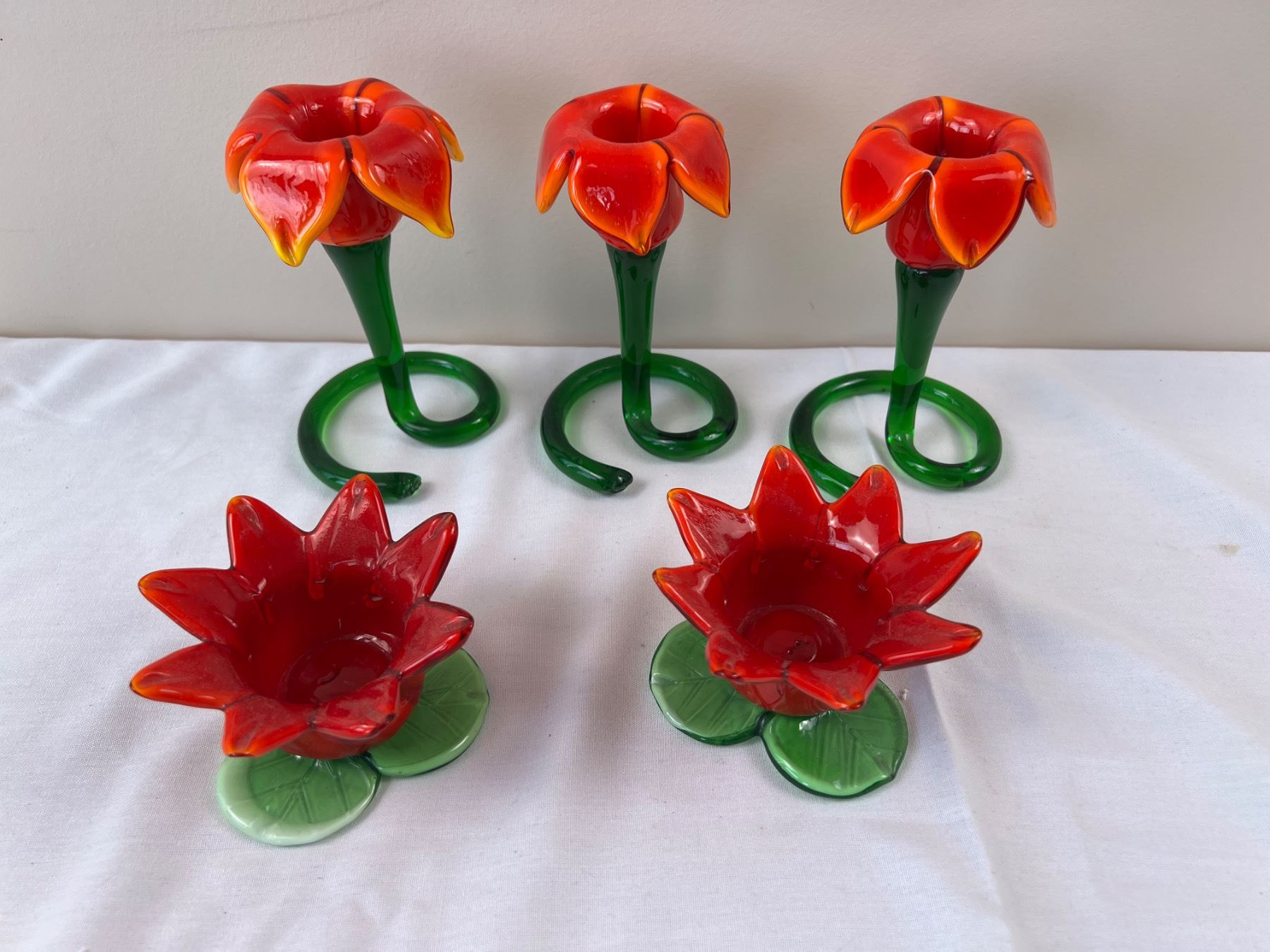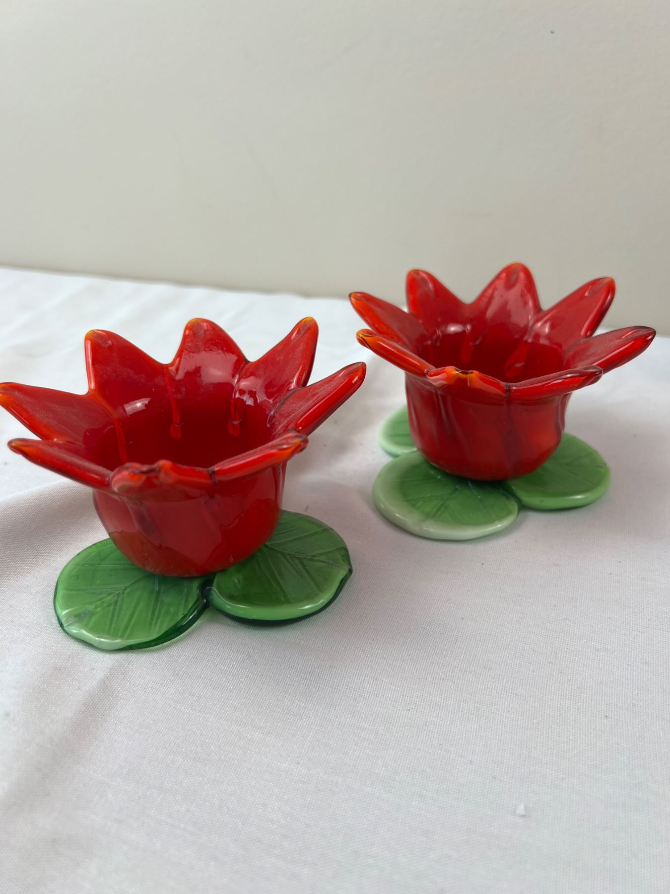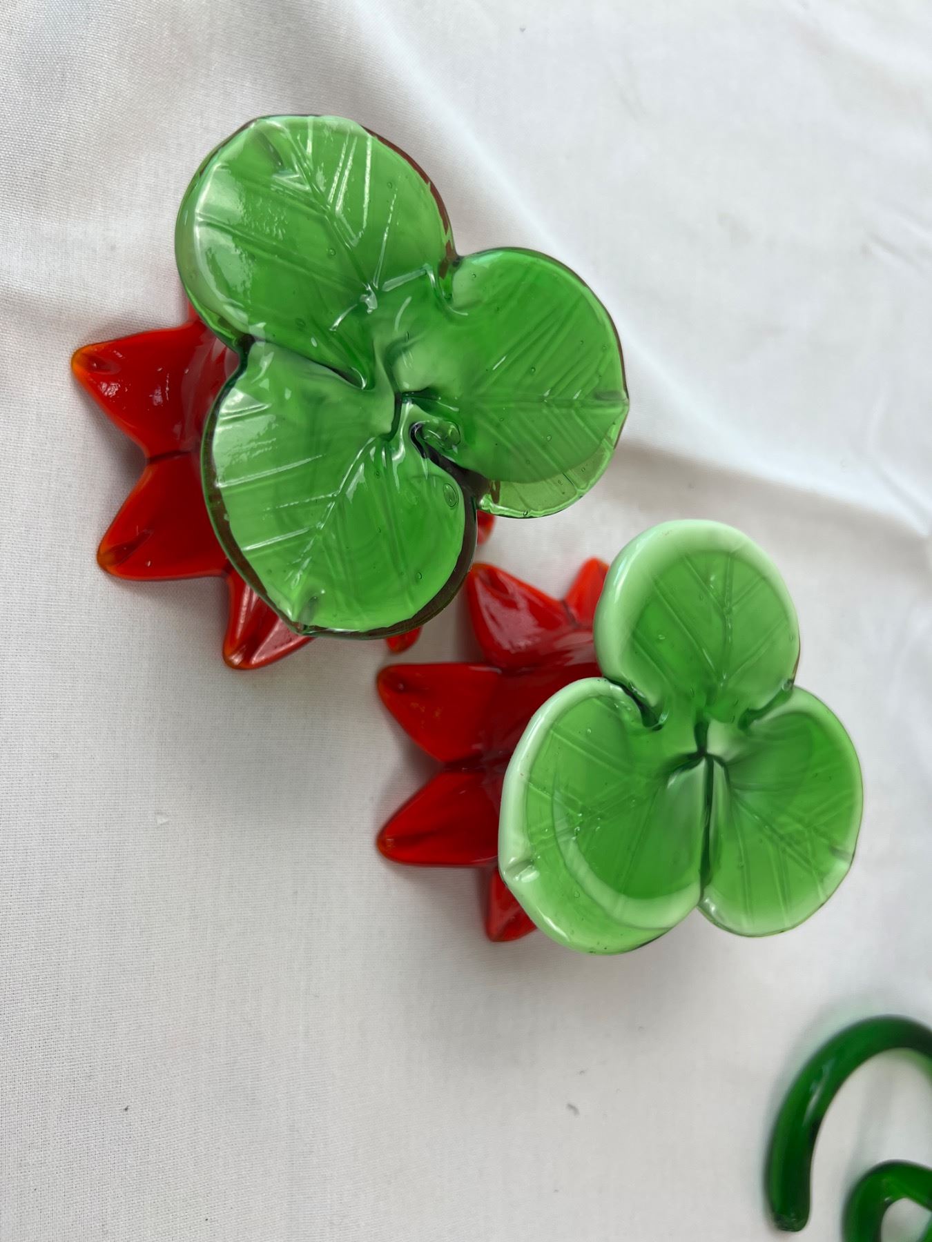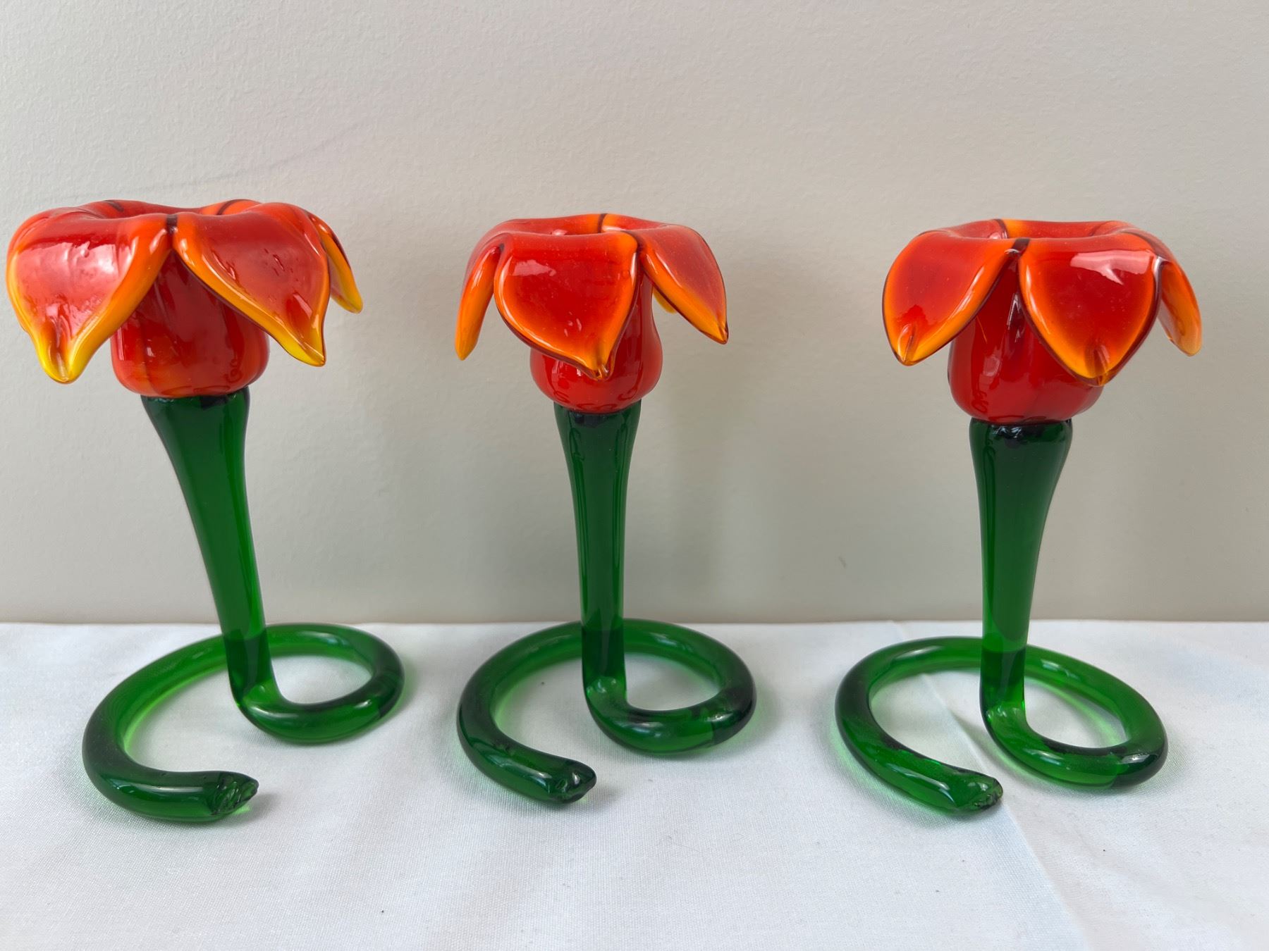 One of the stemmed pieces has a chipped end, Taller stemmed pieces are 6"H