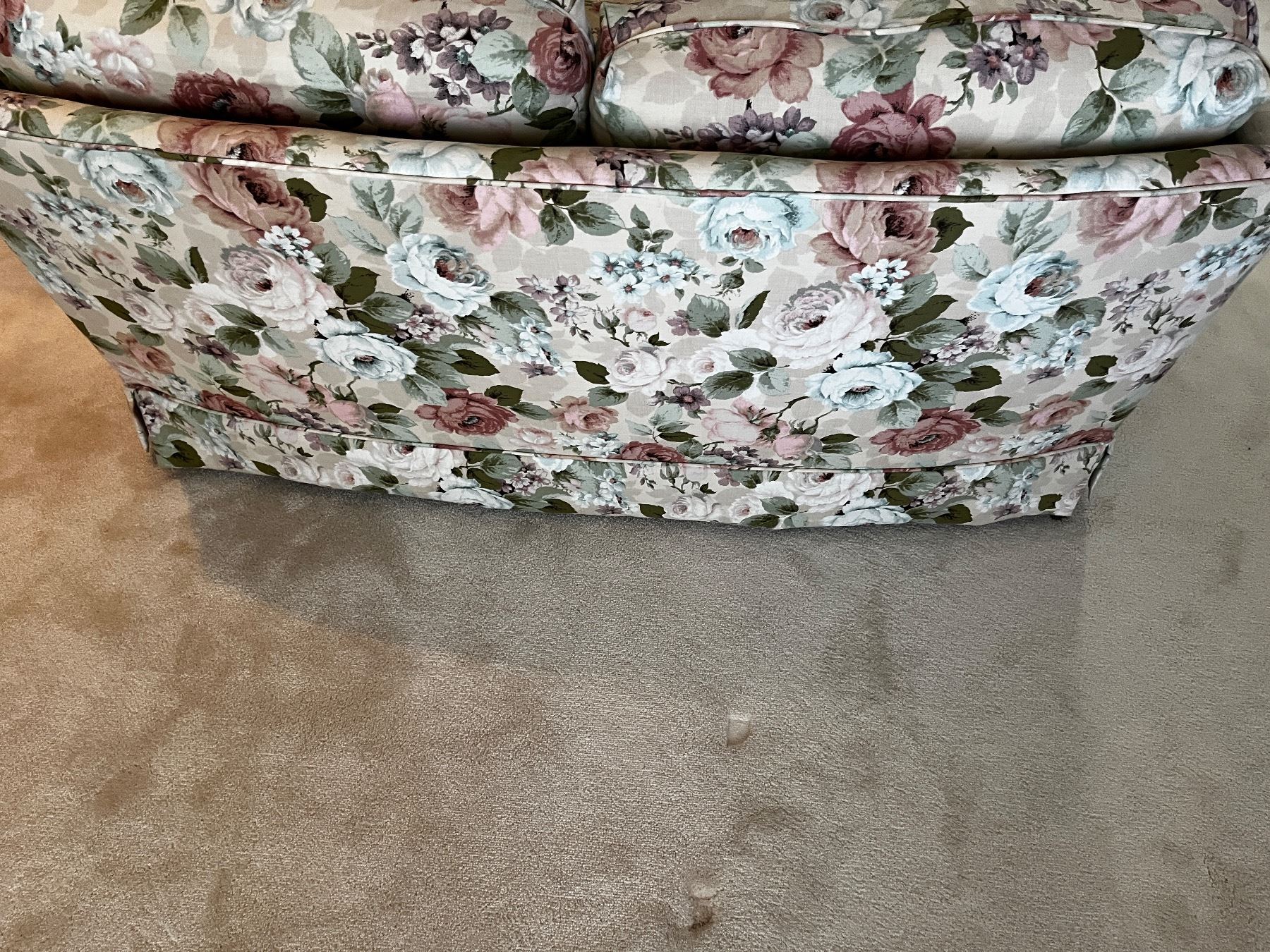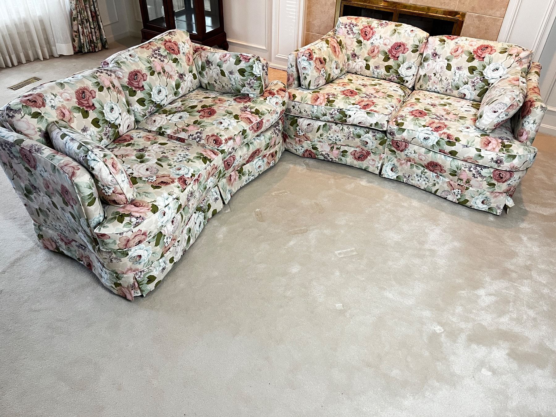 62"L x 34"D x 25"H, x2, in good condition, no stains or tears in fabric