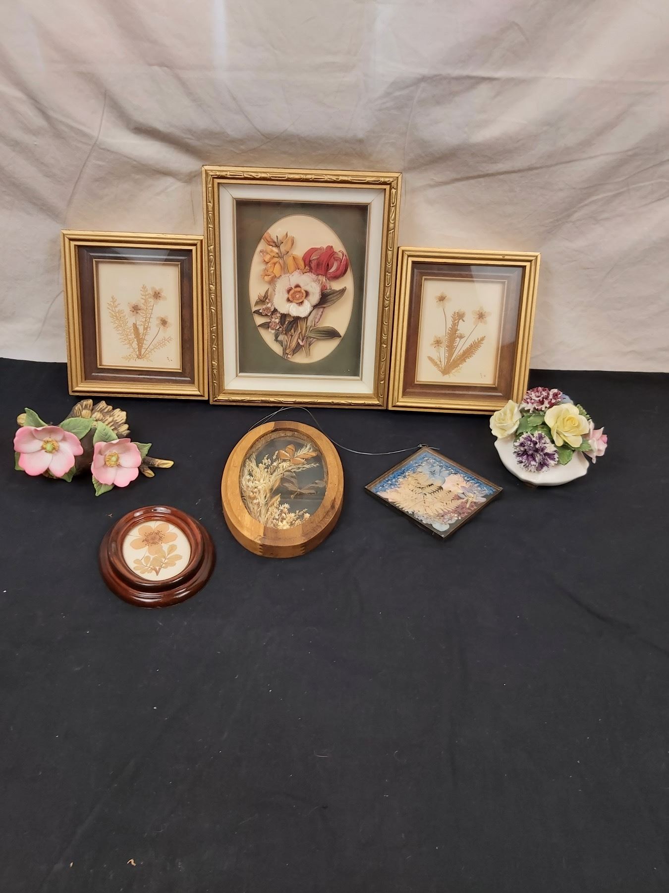 Includes, Radnor china flowers, Pressed flowers in frames, etc. Largest; 8"x10"