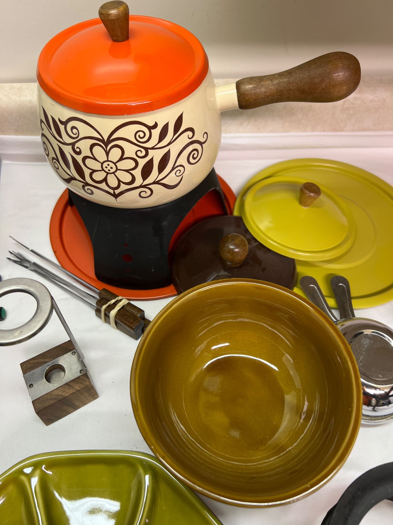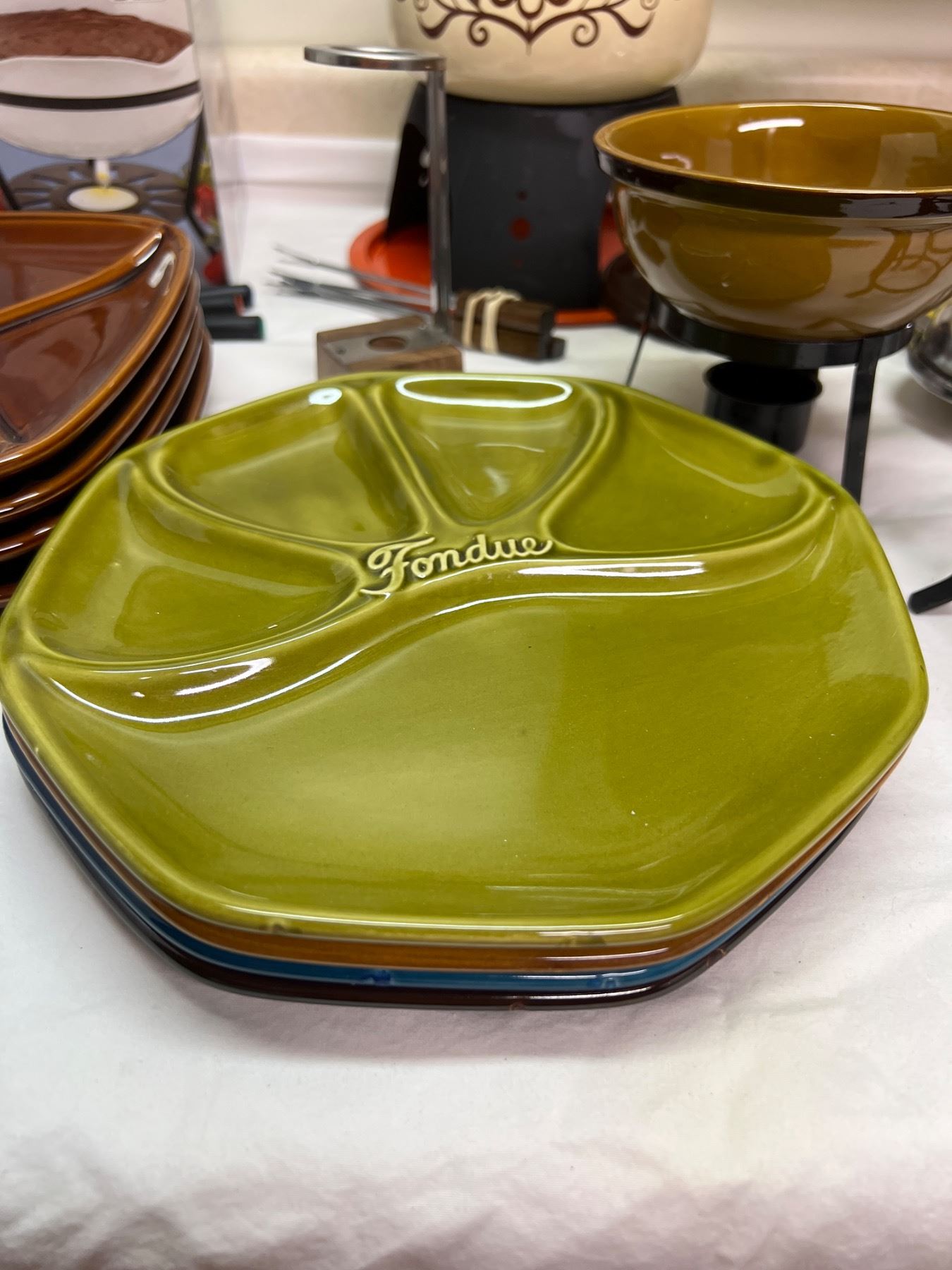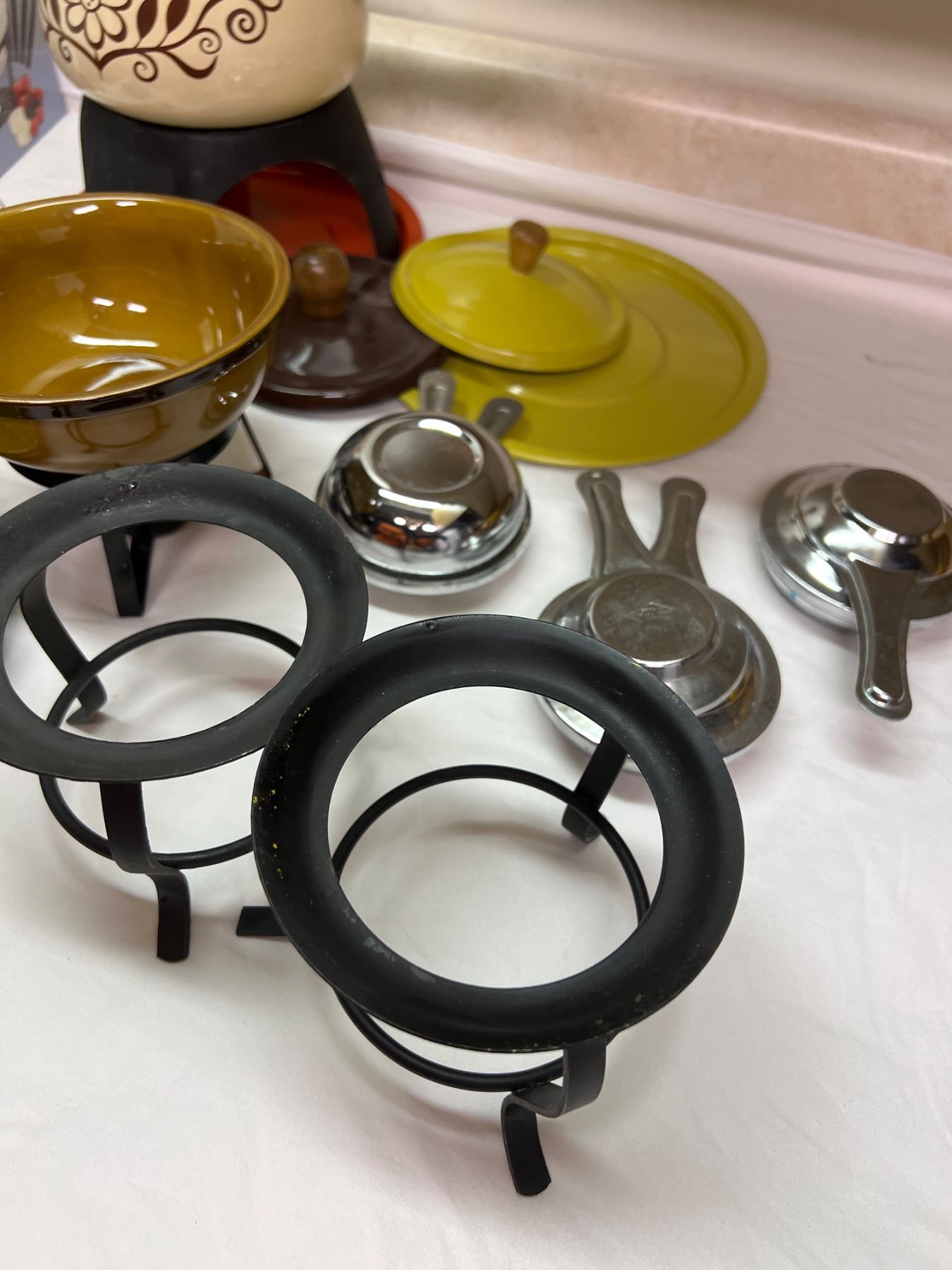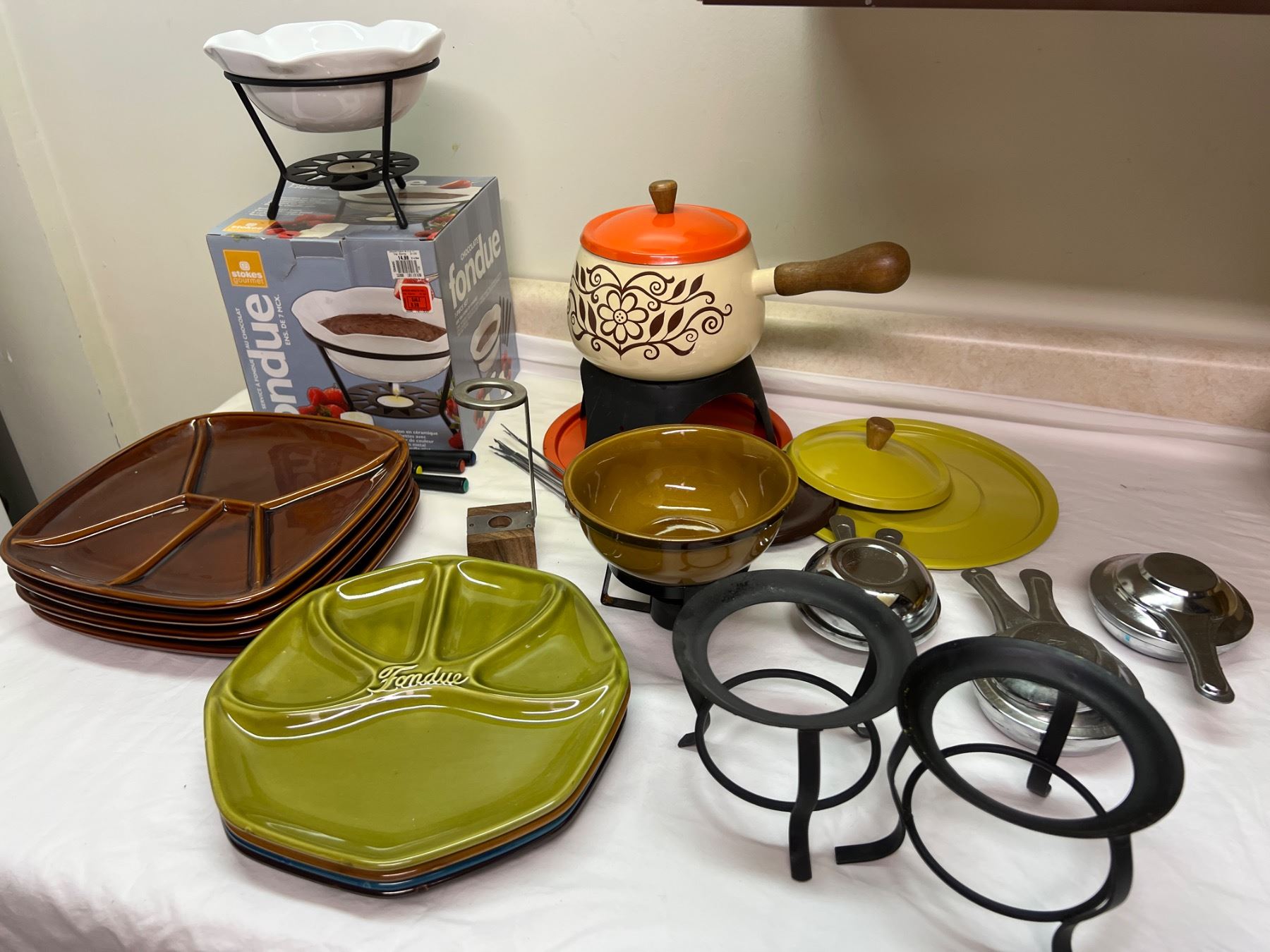 One pot comes with spare lids, Includes fondue forks and plates, and more