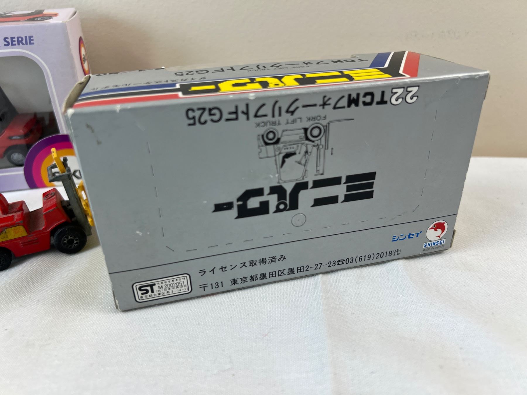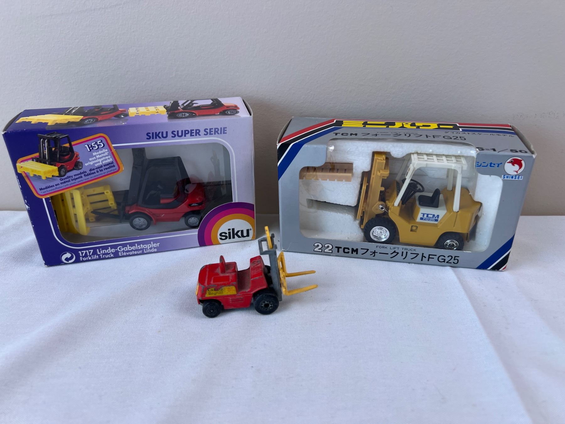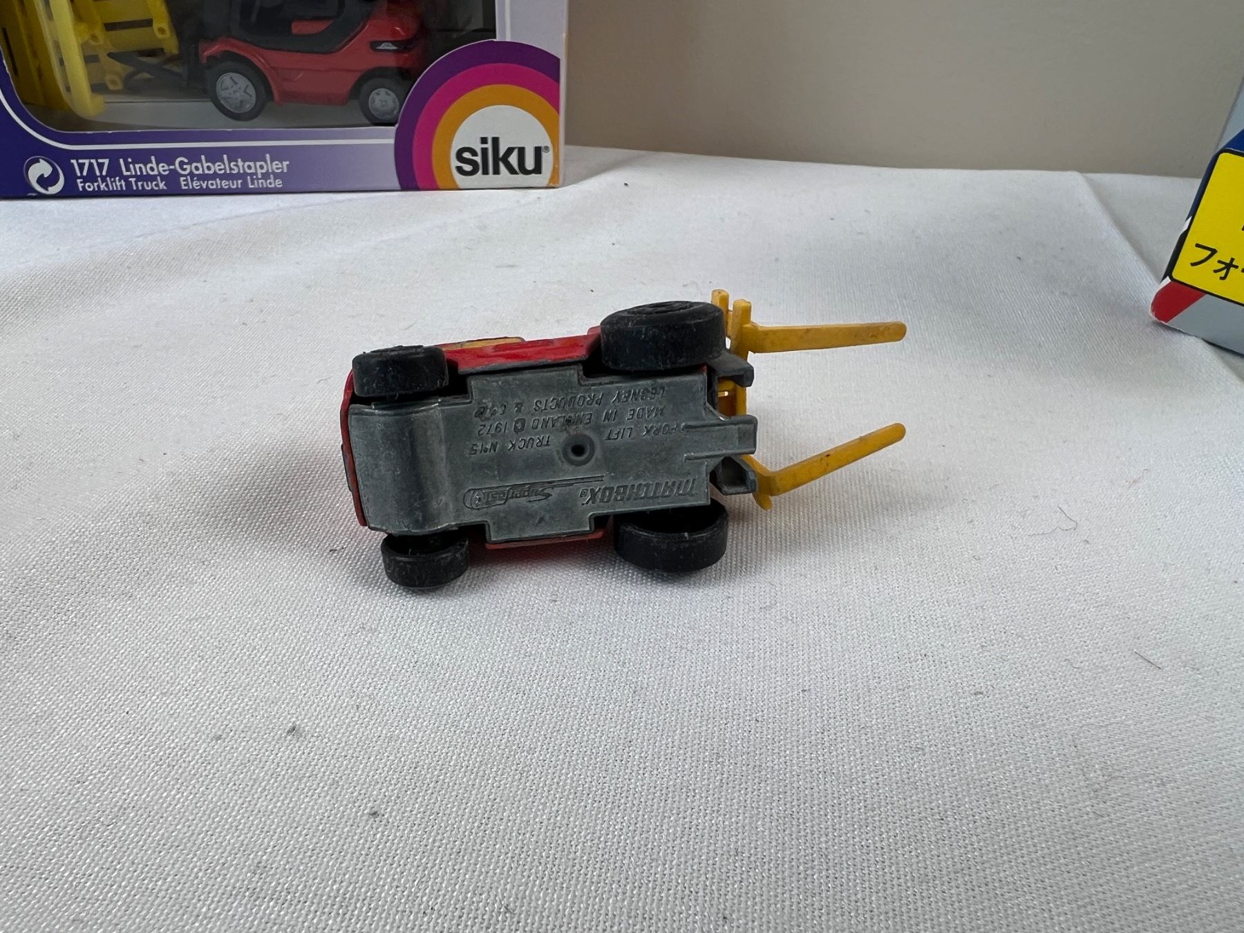 Includes one by Matchbox, Siku Super Serie and Schinsei Forklift Truck both in original boxes