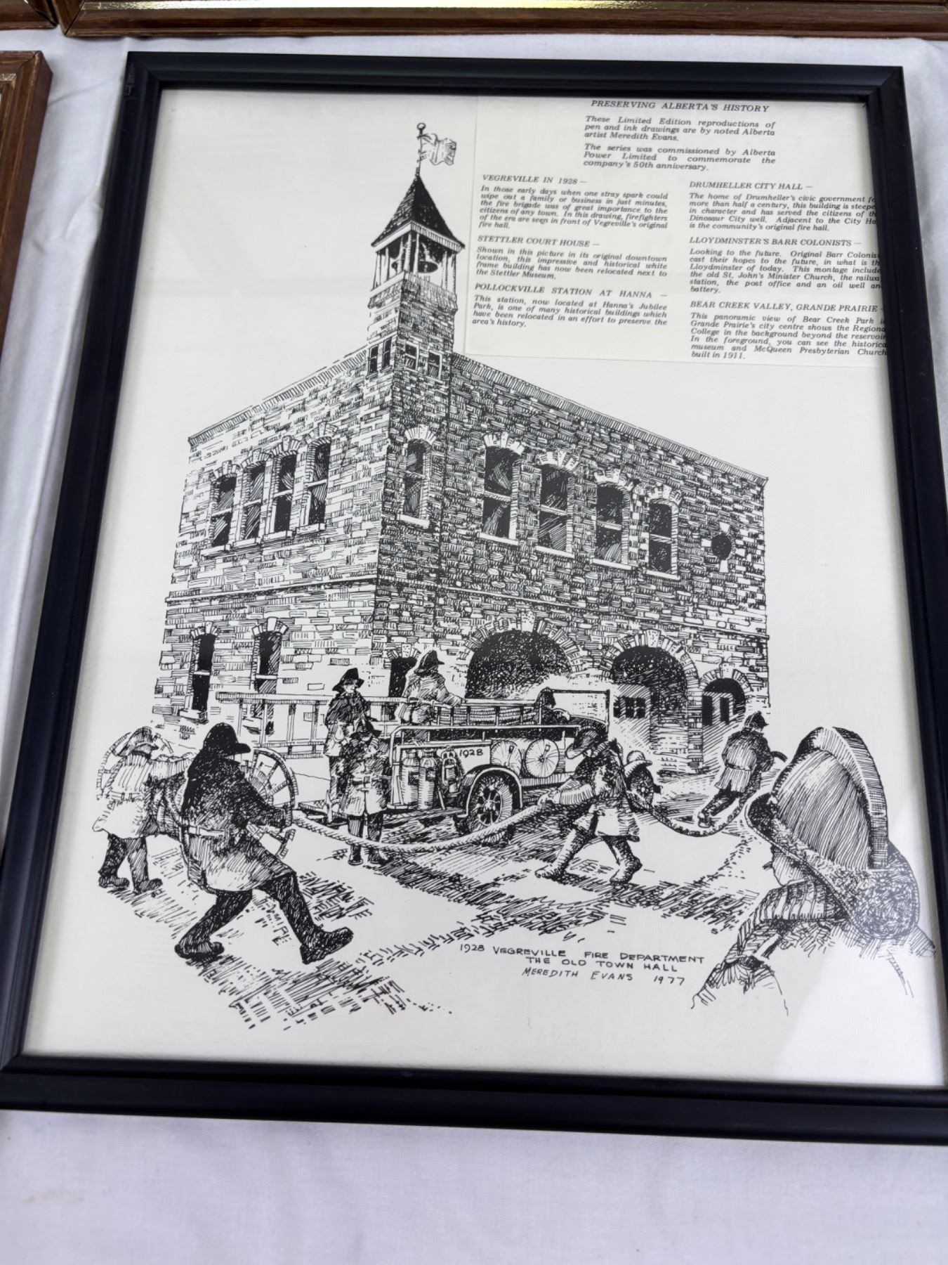 The Pollockville Station print has broken glass, Largest frame is 15x12"