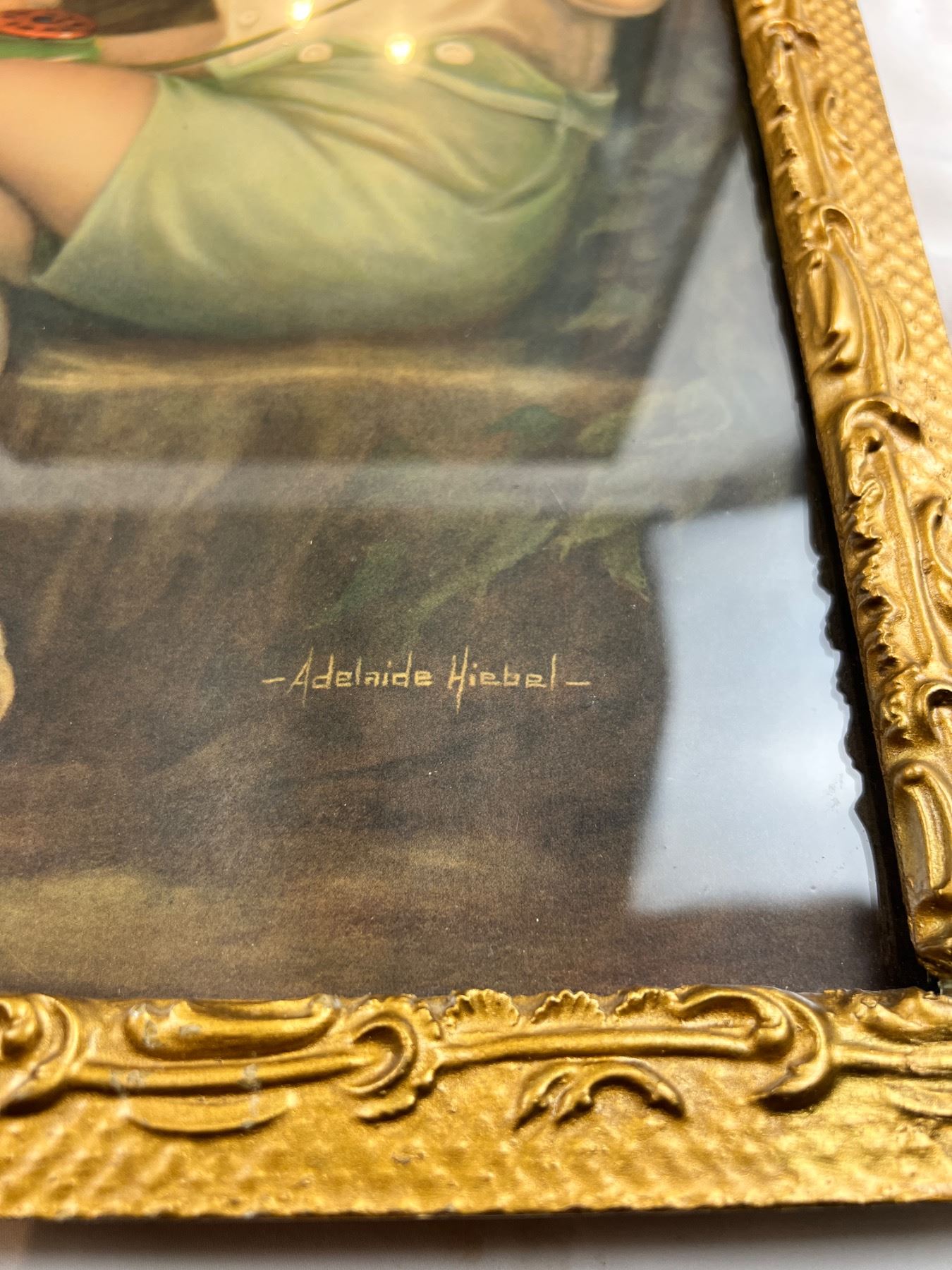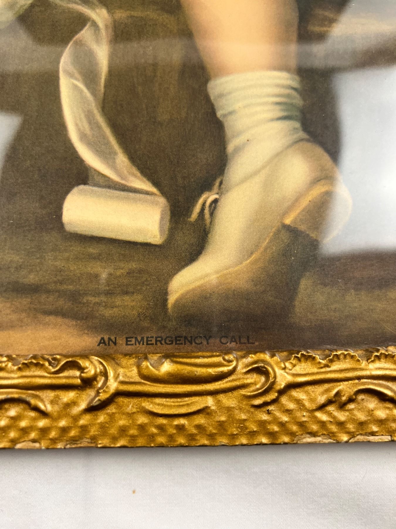 Includes "An Emergency Call" print by Adelaide Hiebel. Larger frame is 33" by 27.5". Emergency Call is 21" by 17"