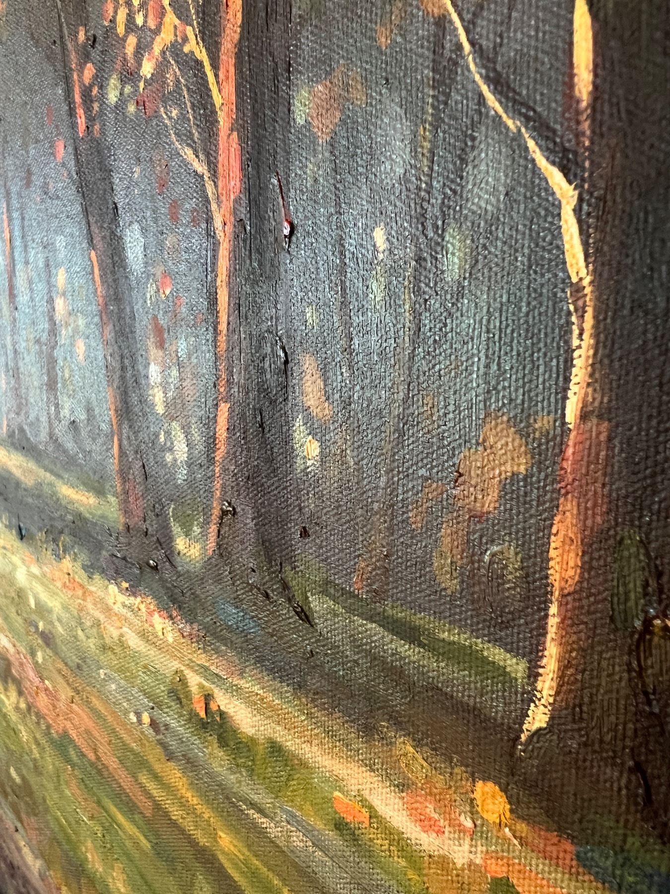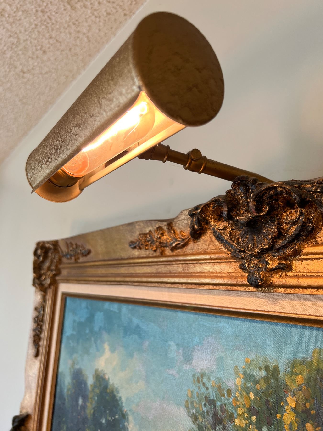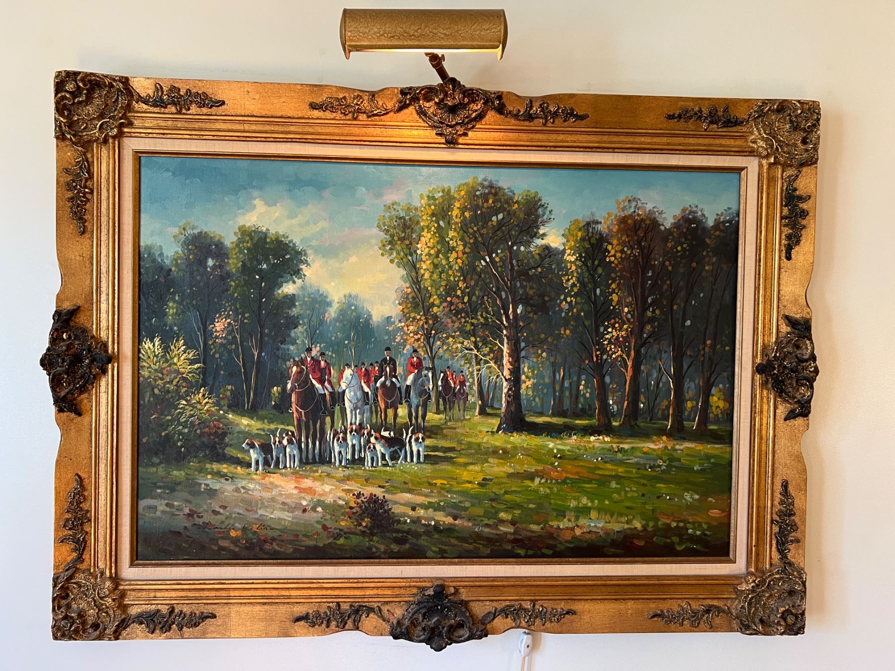 Signed by the artist, includes a light that is attached to the frame (works), 45x32"