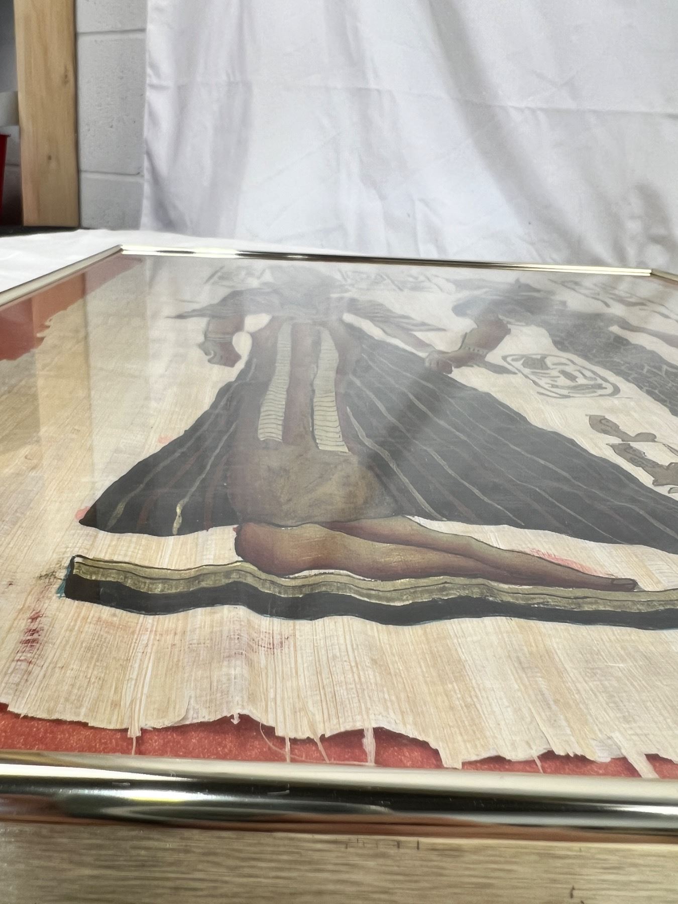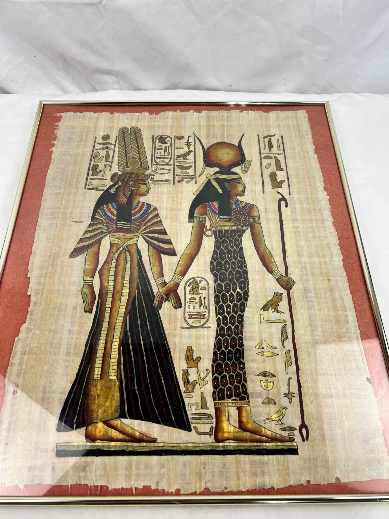 Image depicts the Goddess Isis leading Queen Nefertari. Isis has the Cobra in her crown and the staff in her hand. Approximately 24.5" by 21.5".