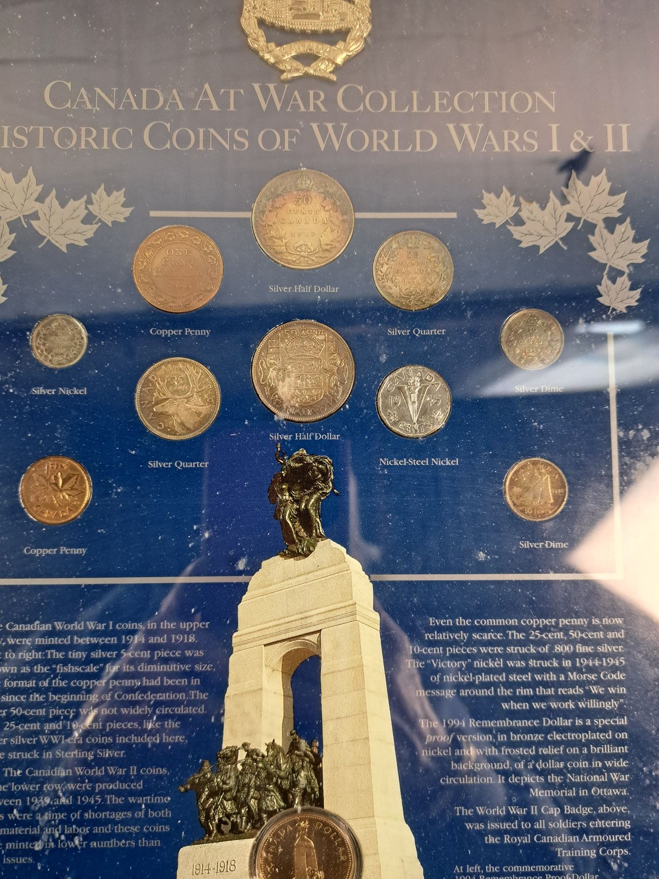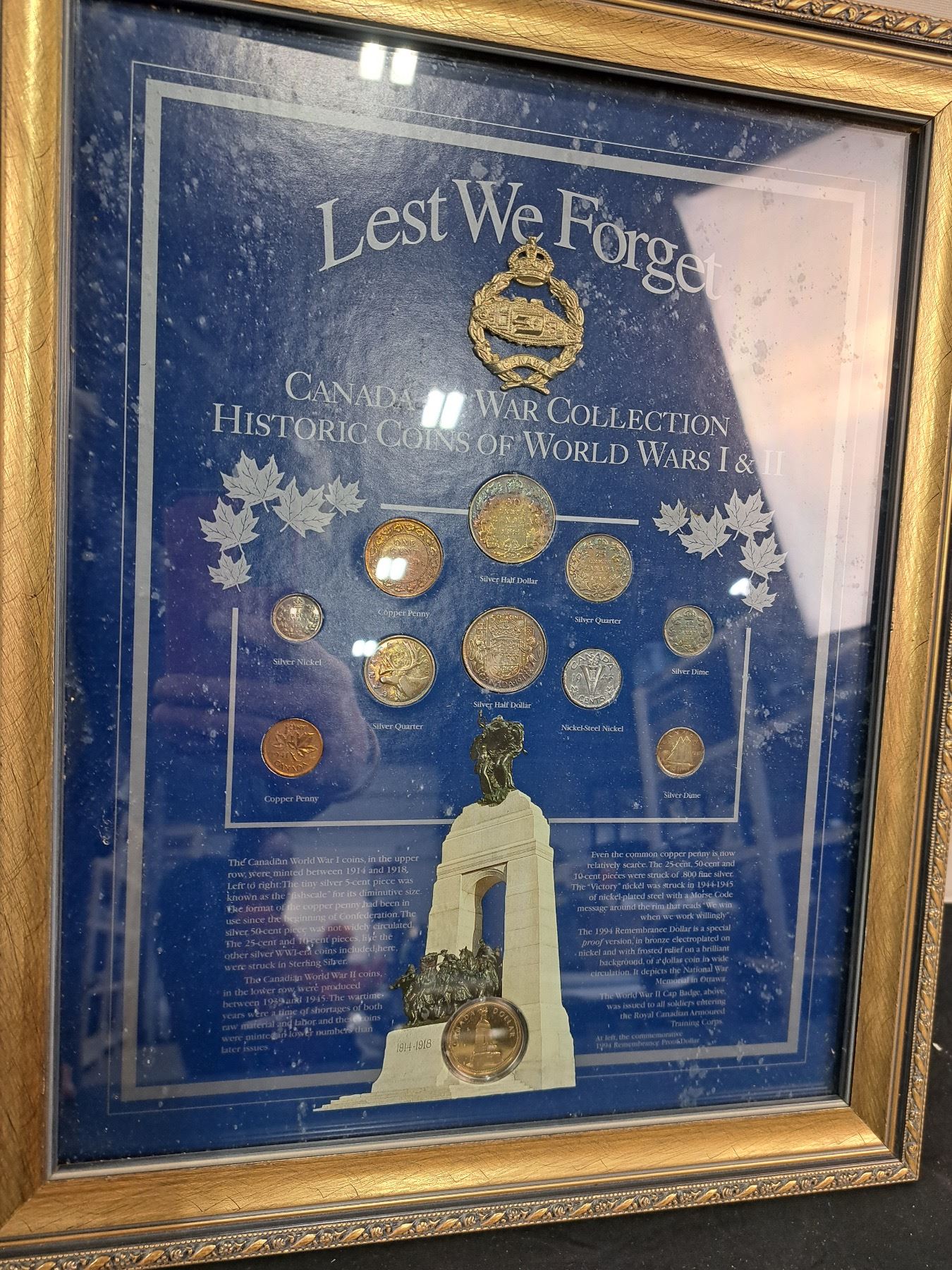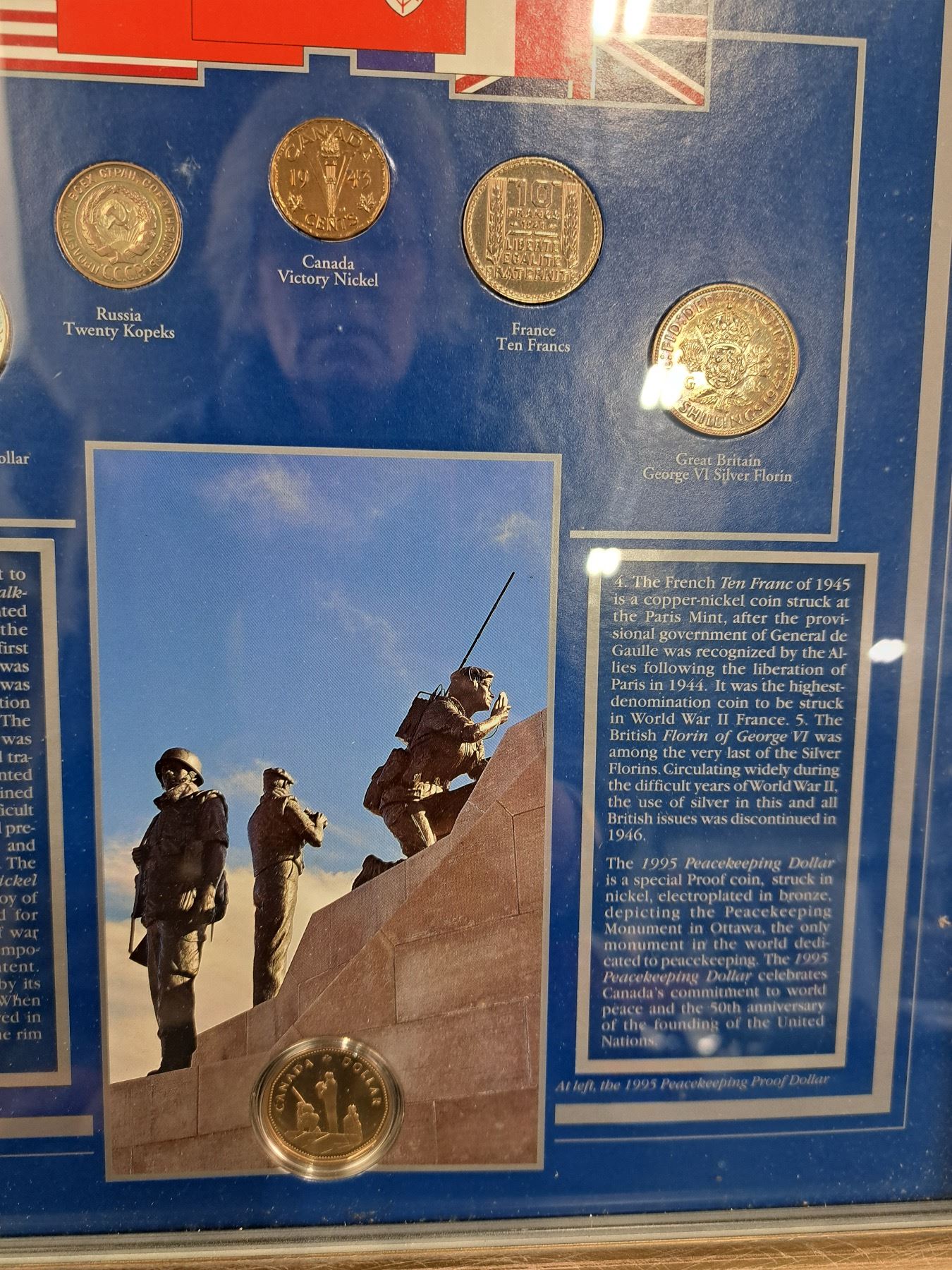 Includes, "Lest We Forget", "Victory WWII Historic Coins of the Allied Nations", inside of glass needs cleaning