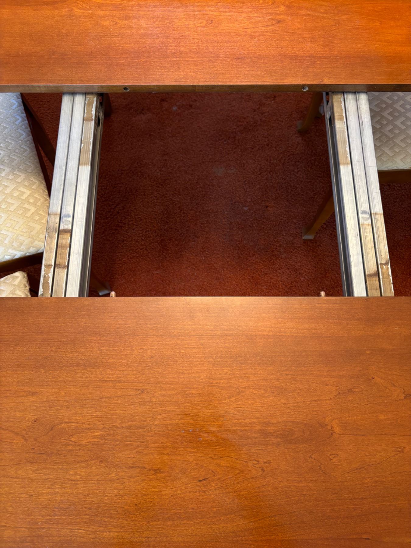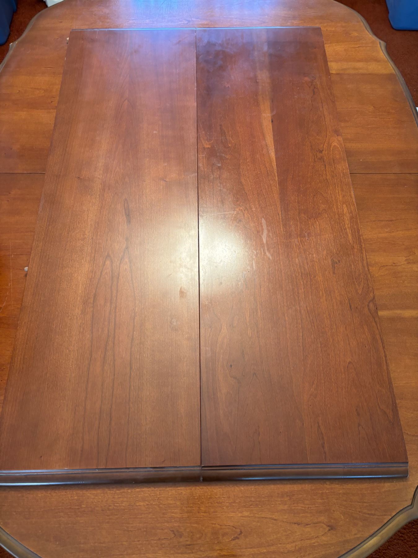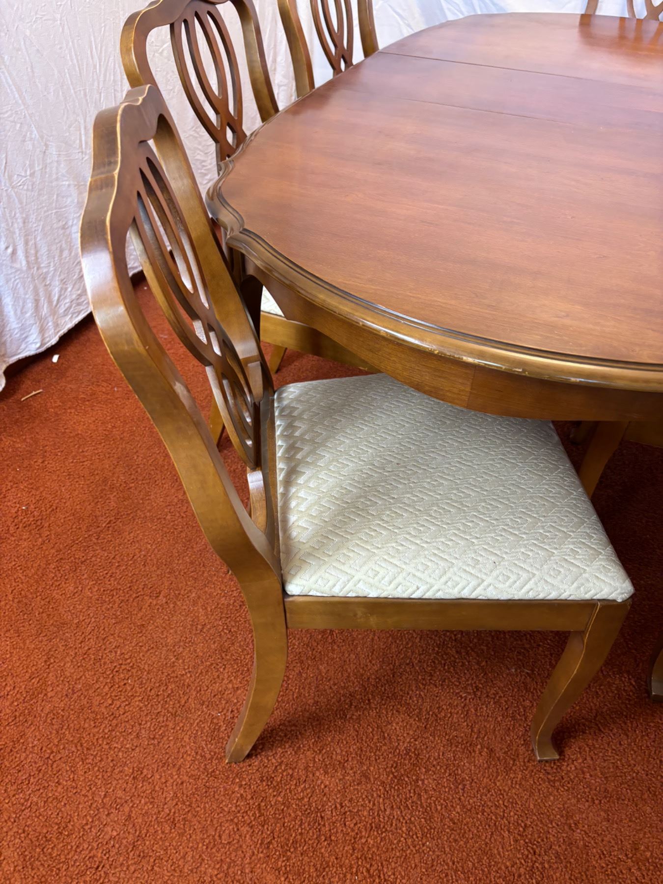 Includes two leafs (12"W each), Table measures 58.5"L x 39"W x 29"H without leafs, Chairs are 35"H seat height 18"H,