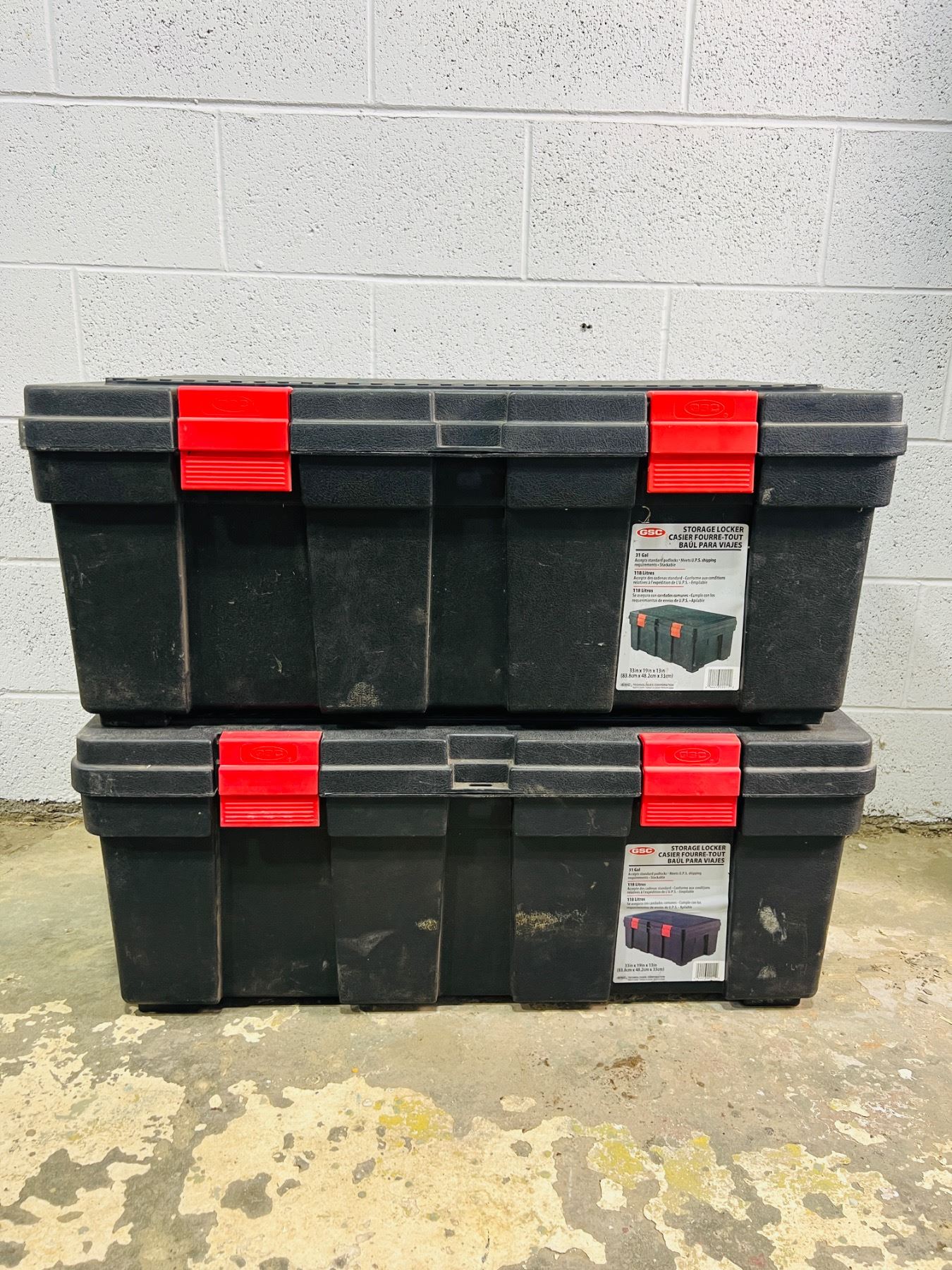 Each tote is 31Gal, 33x19x13"