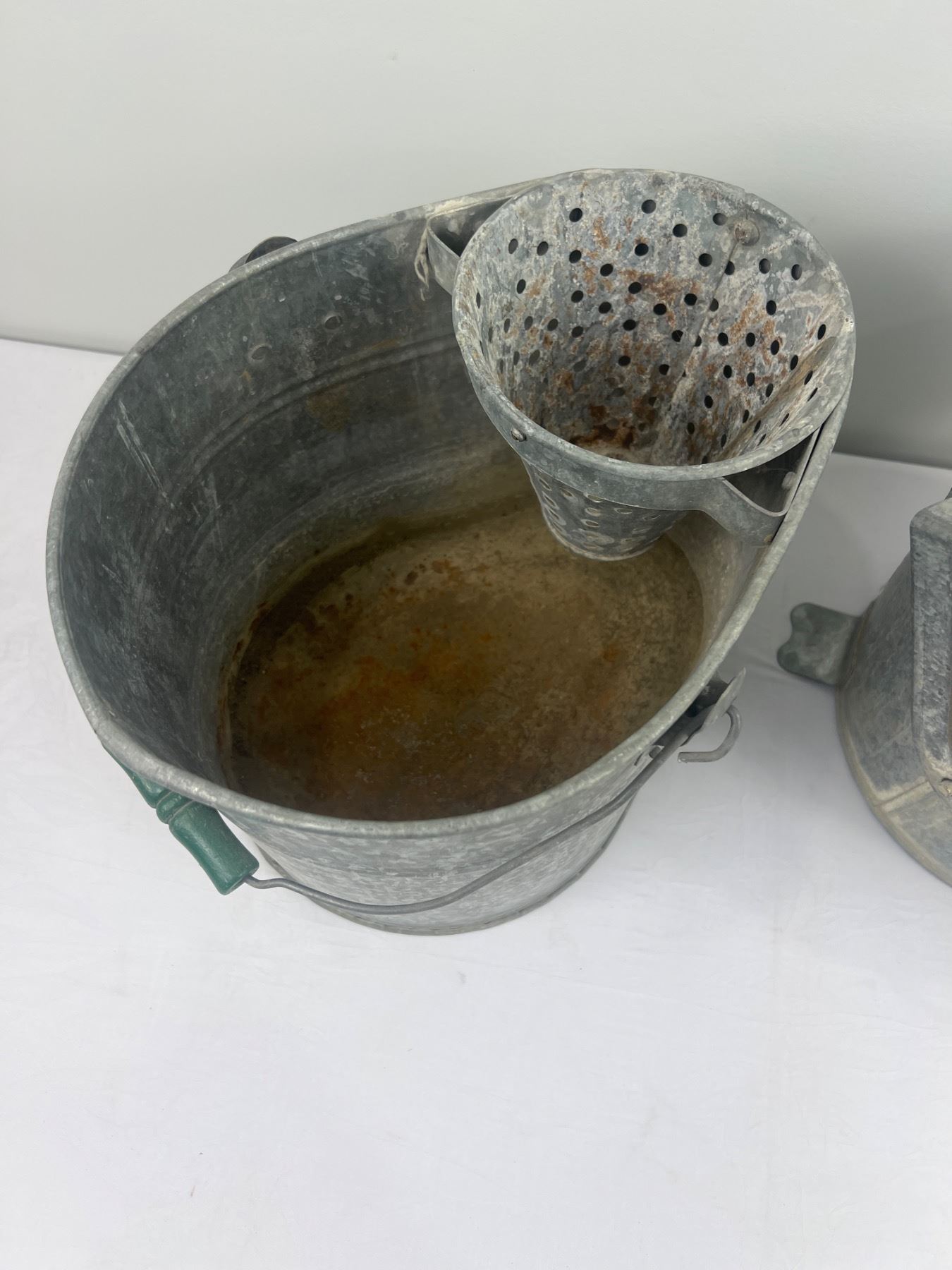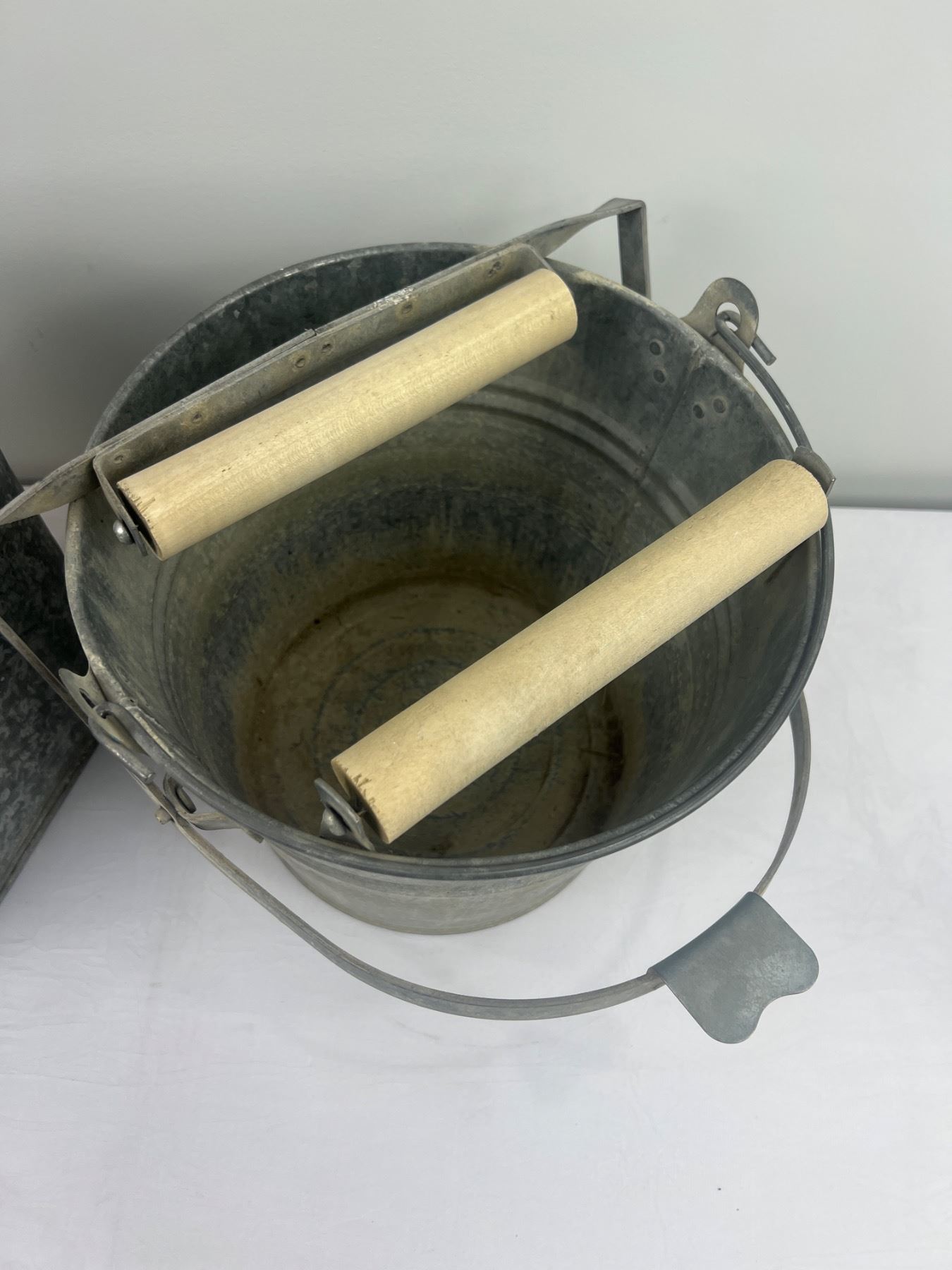 The GW Metal bucket is 12x10"H, some wear and rust spots