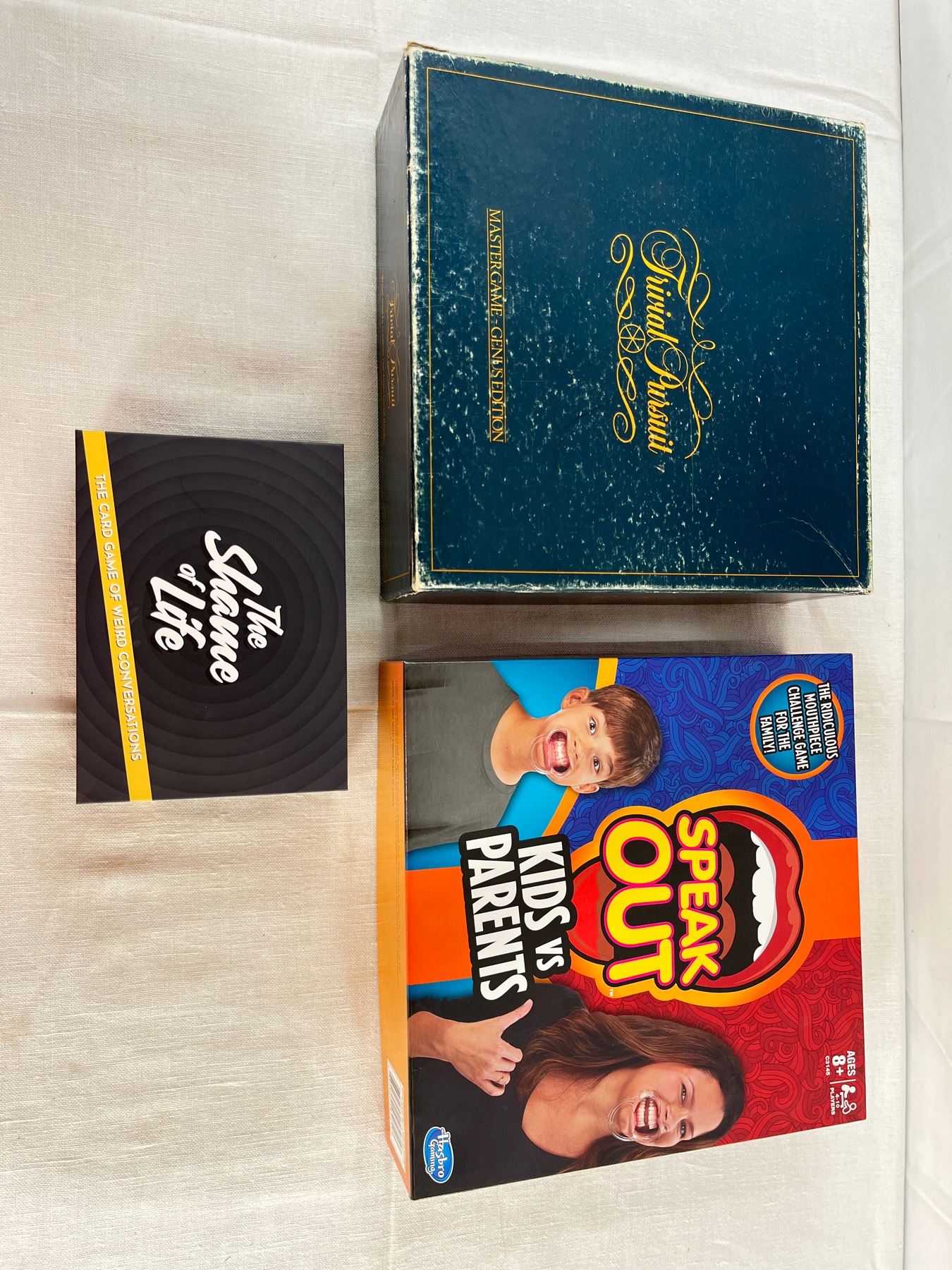 3 different games - Trivial Pursuit,Speak Out,and The Shame of Life