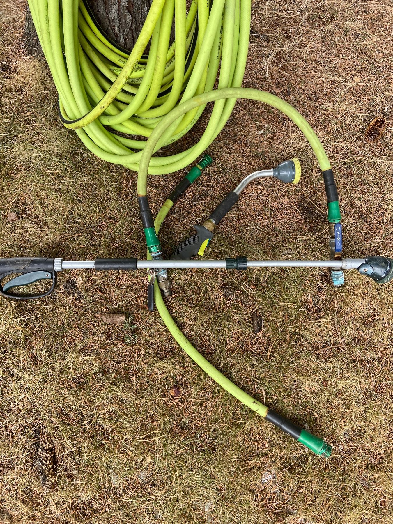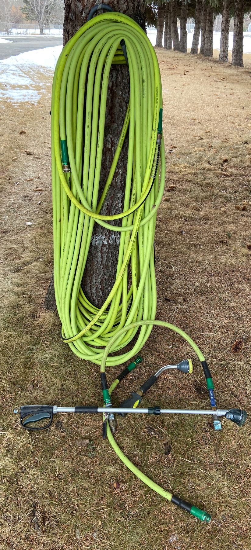 Includes 5/8" hoses, sprayers, extension hose, etc.