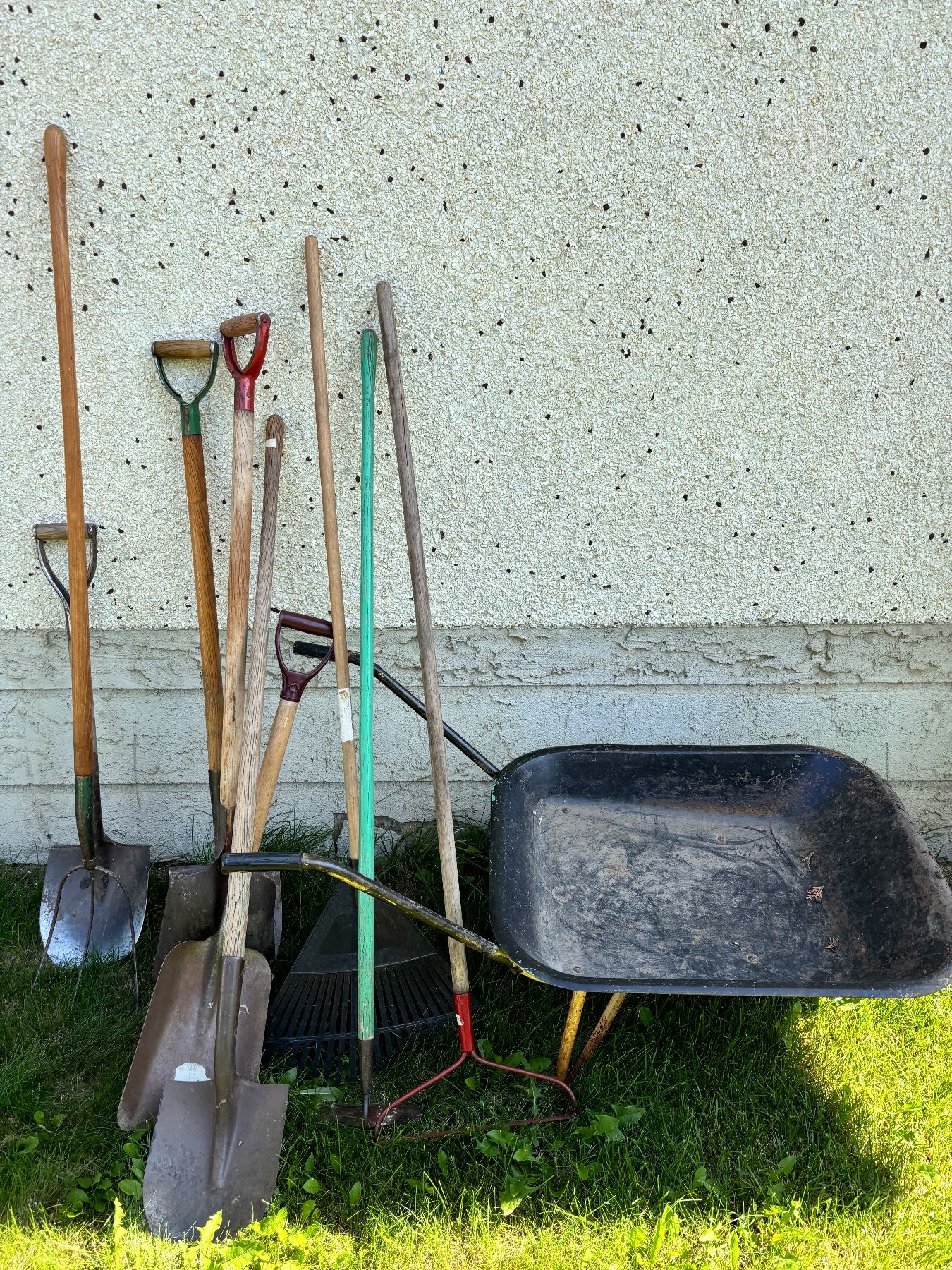 Includes wheelbarrow, shovels, rakes, etc.