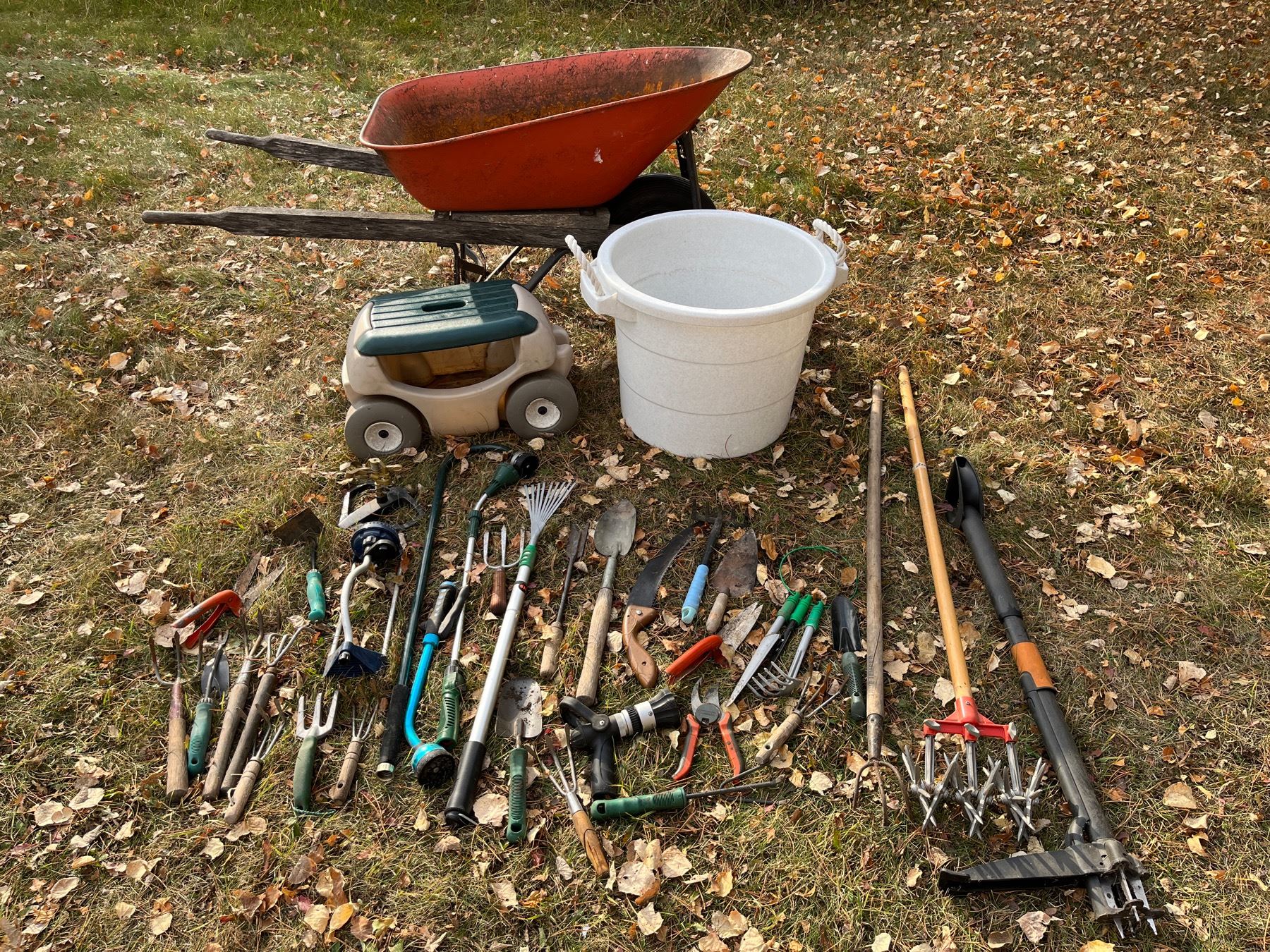Including wheelbarrow, sprinlers, various hand tools etc…