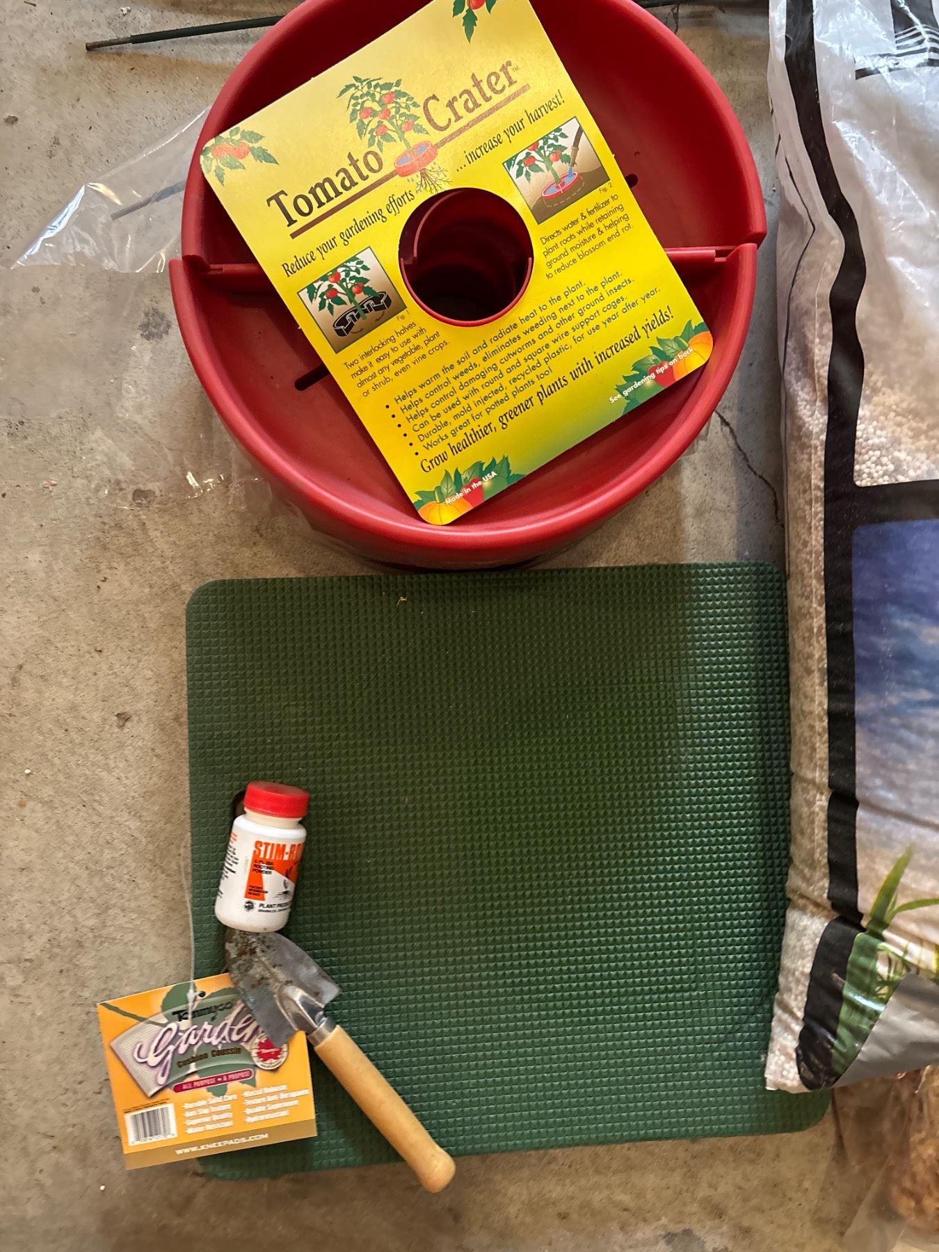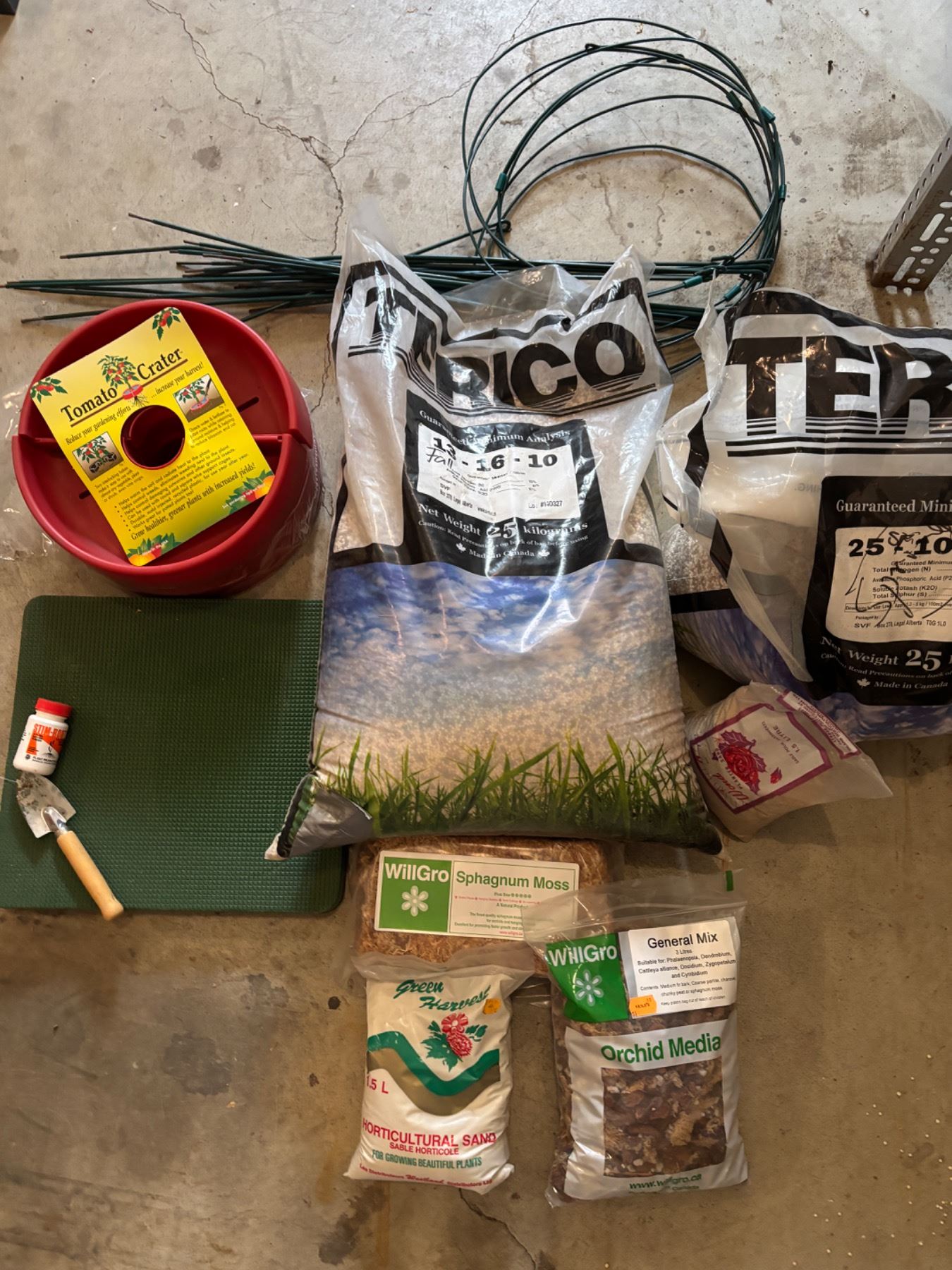 Includes Tomato Craters, New and open bag of Terico fertilizer, and more