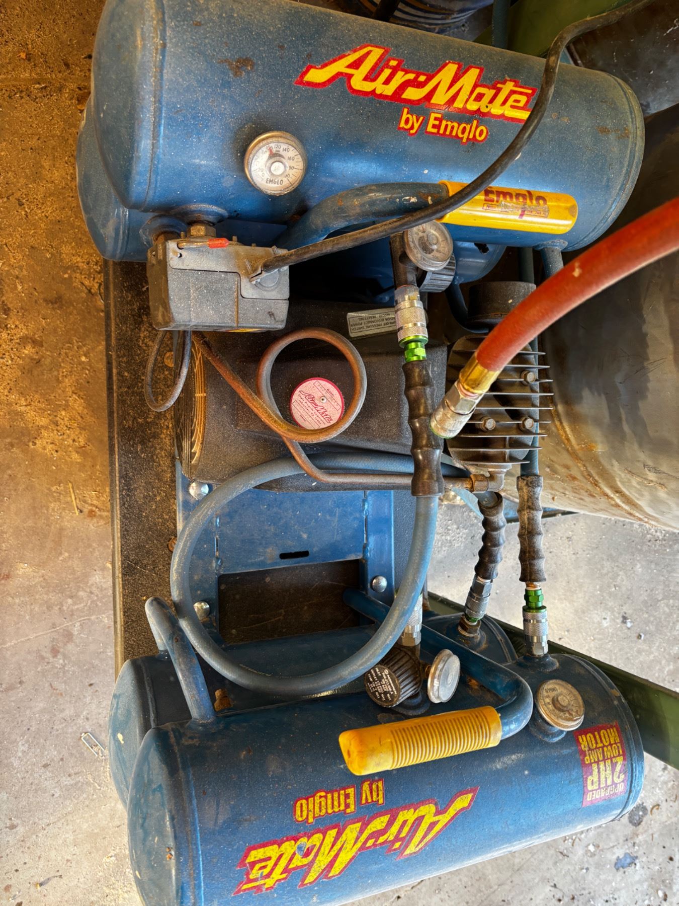Includes the air compressor and hoses, not tested and in unknown working condition, aproximately 88"H x 43"W