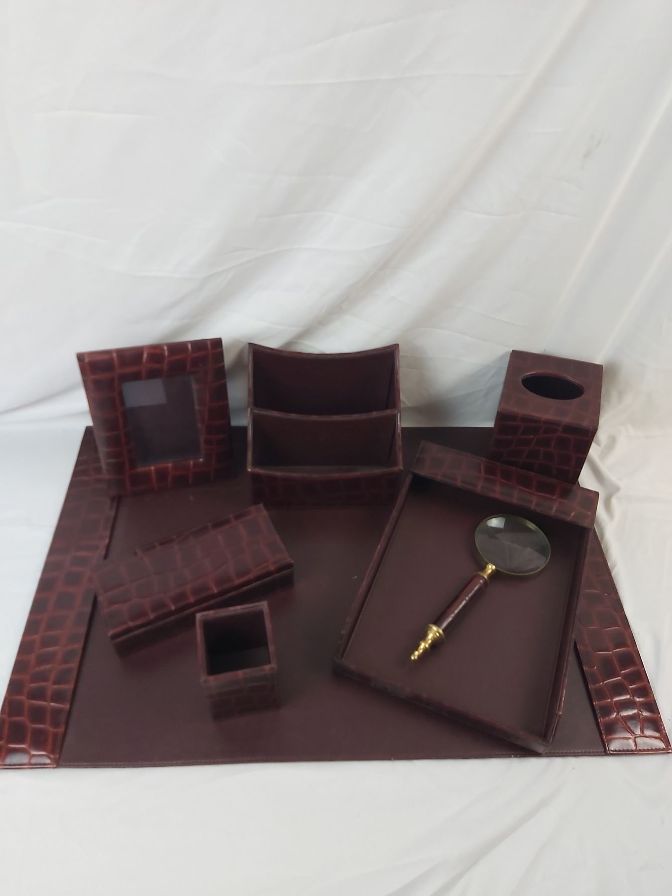 Includes, picture frame, tissue box cover, pencil holder, magnifying glass, has some wear