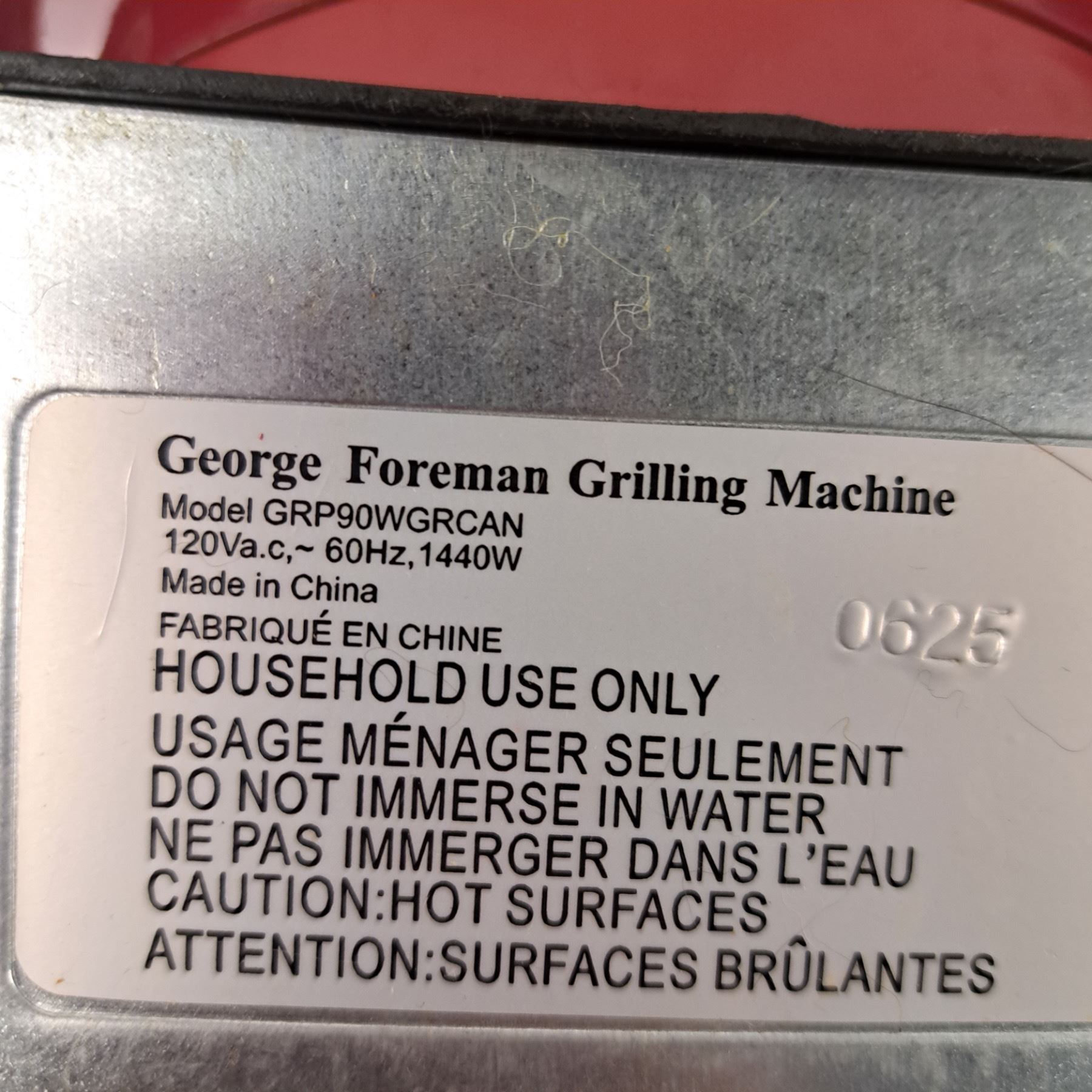 George Foremen Model # GRP90WGRCAN