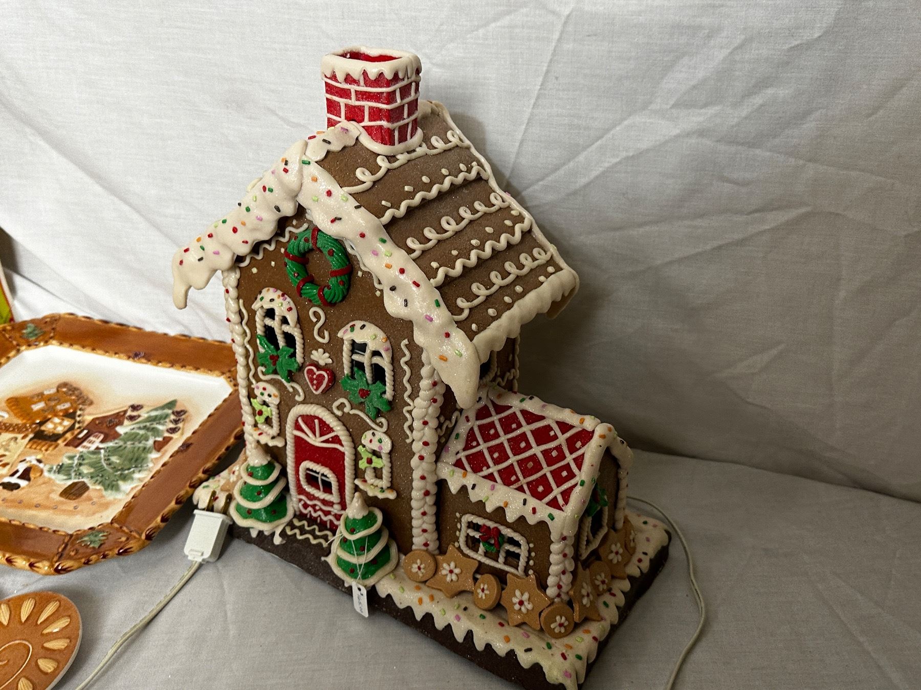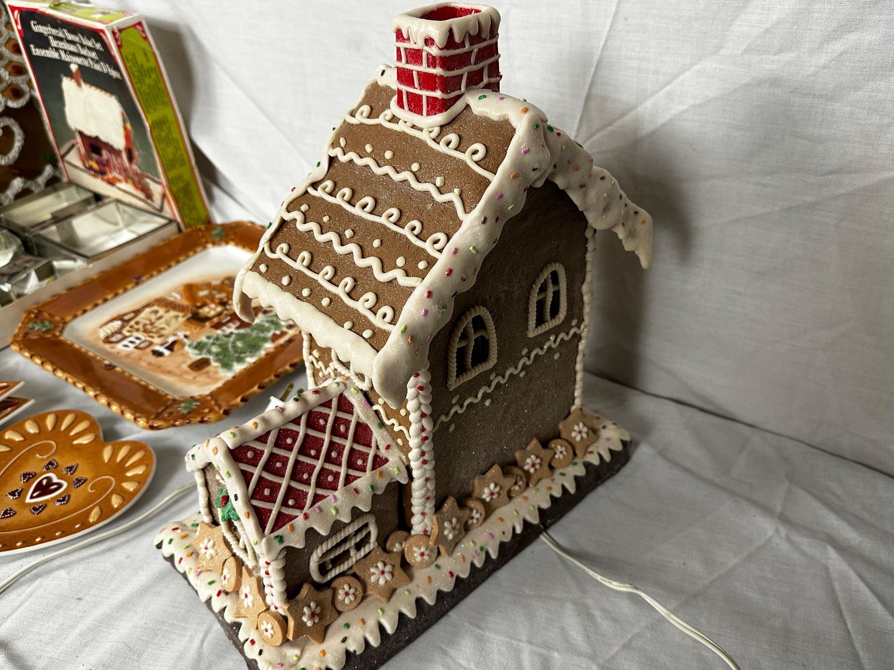 Includes light up gingerbread house 14" tall x 12" wide x 7" deep works - Gingerbread house without light 14" tall x 9.5" wide x 9.5" deep
