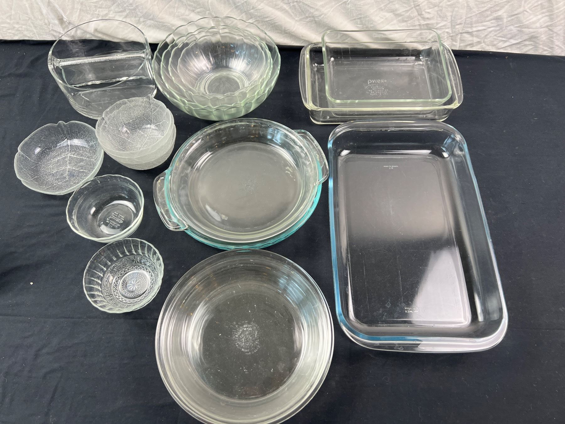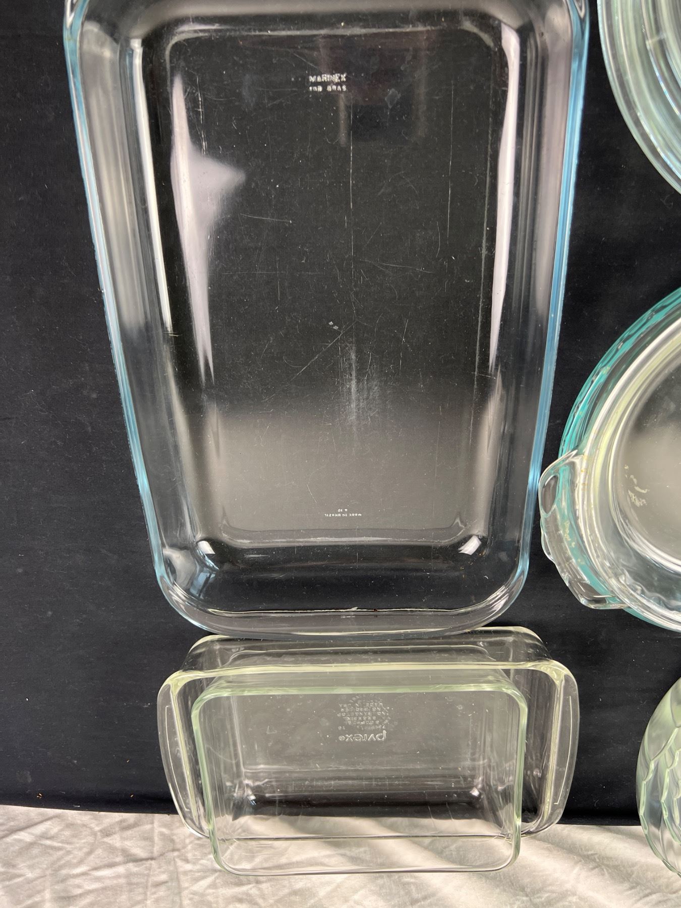 Some pieces are scratched and have wear, Includes Pyrex, Fire King, Anchor Hocking, and more