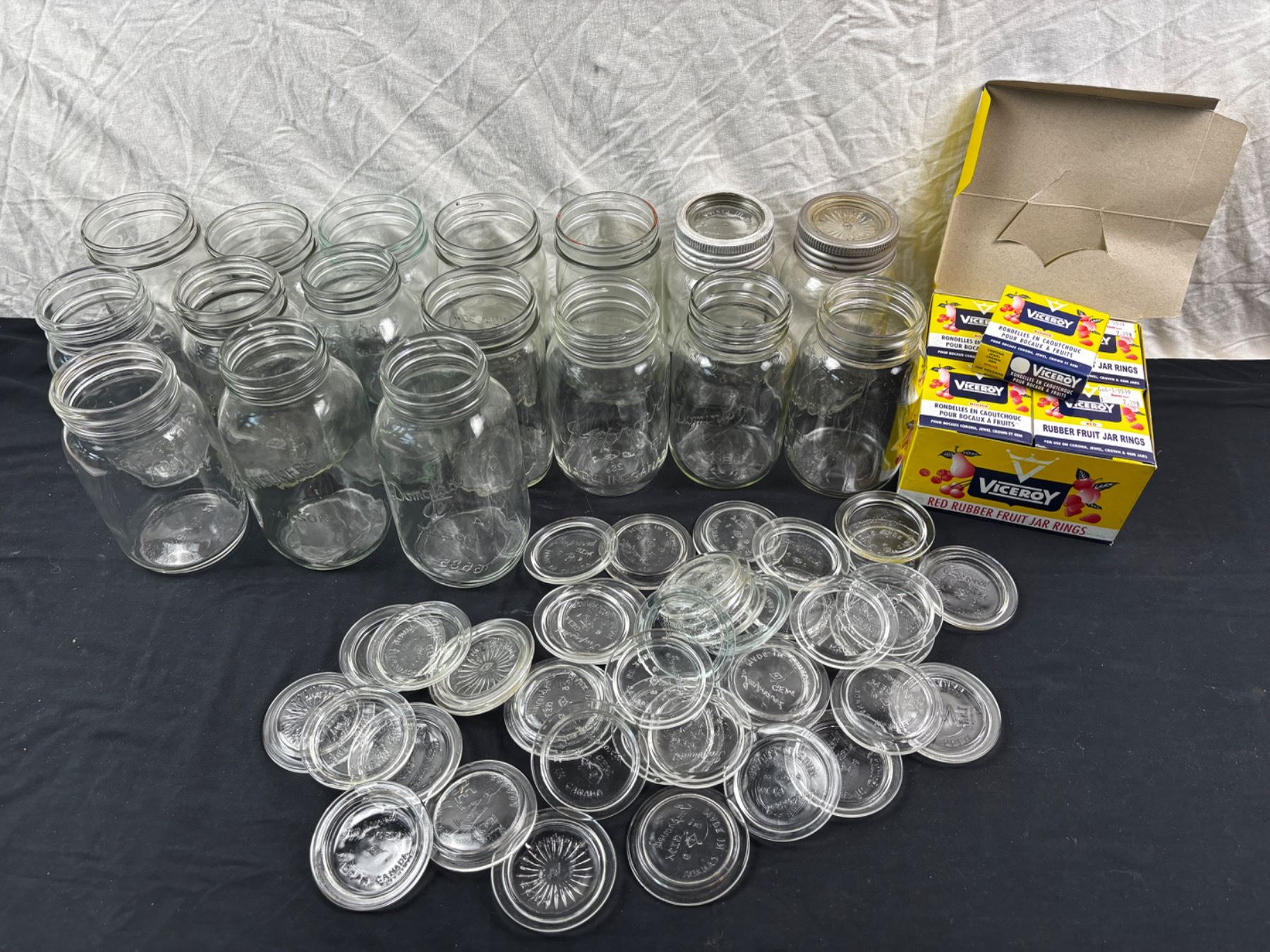 Largest is 7 3/4"H, Include ViceRoy Rubber Fruit Jar Rings, Glass lids, and more