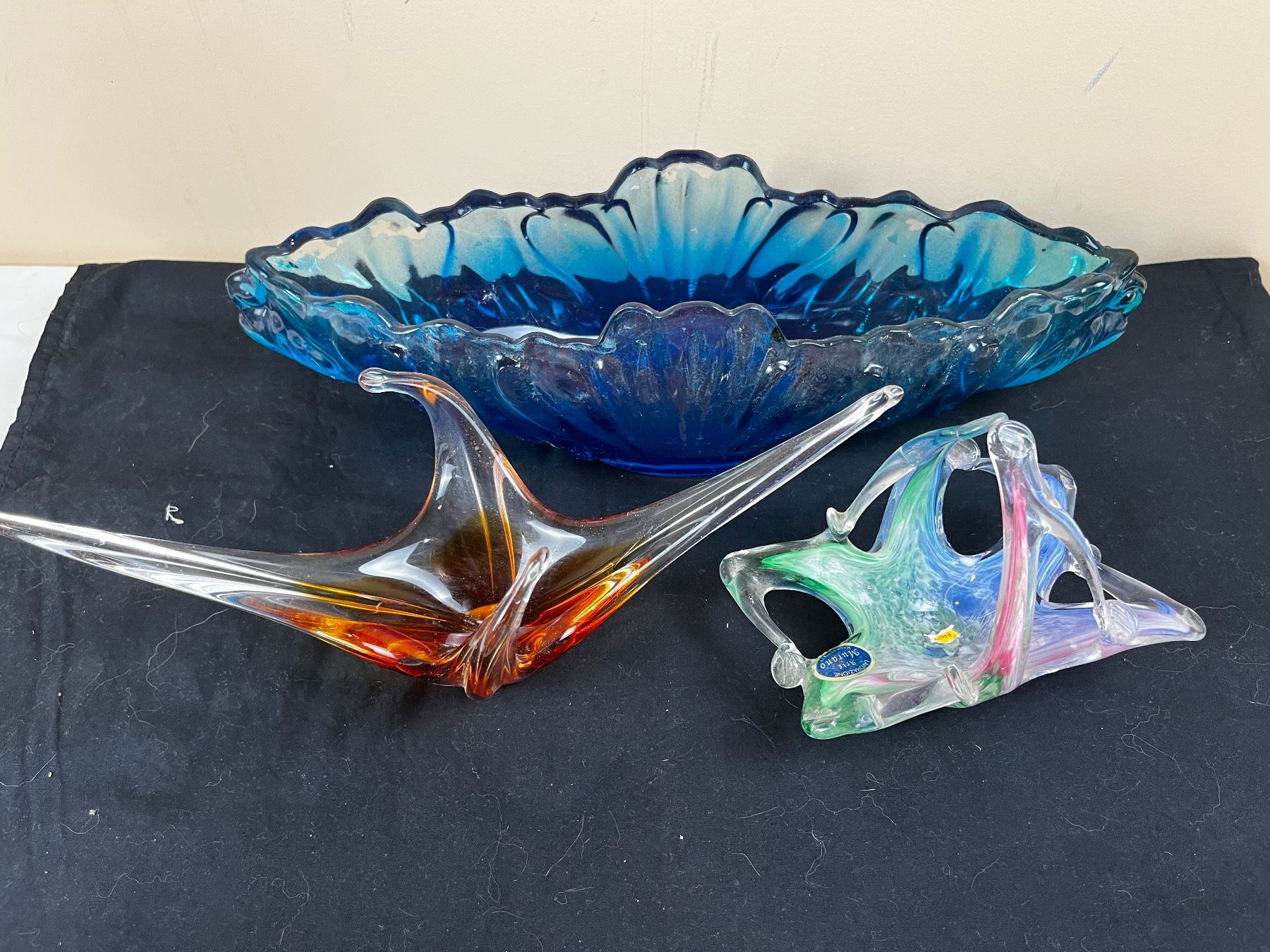 3 pieces in total - Large blue dish 15" long - Lavorazione Arte Murano, Italy