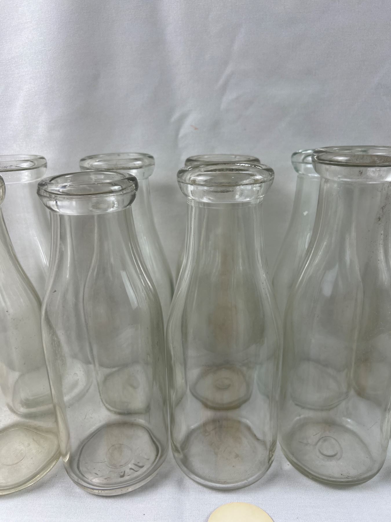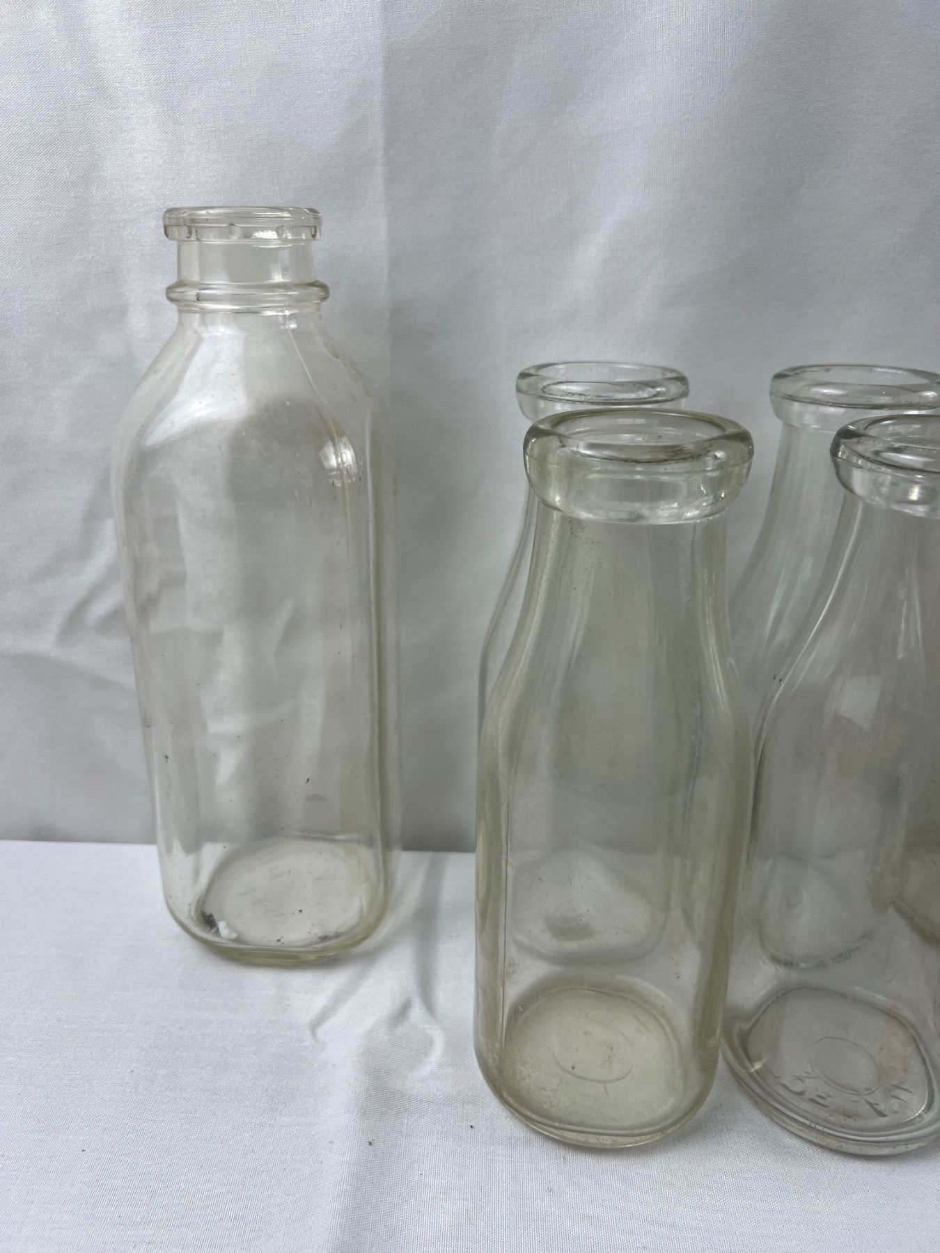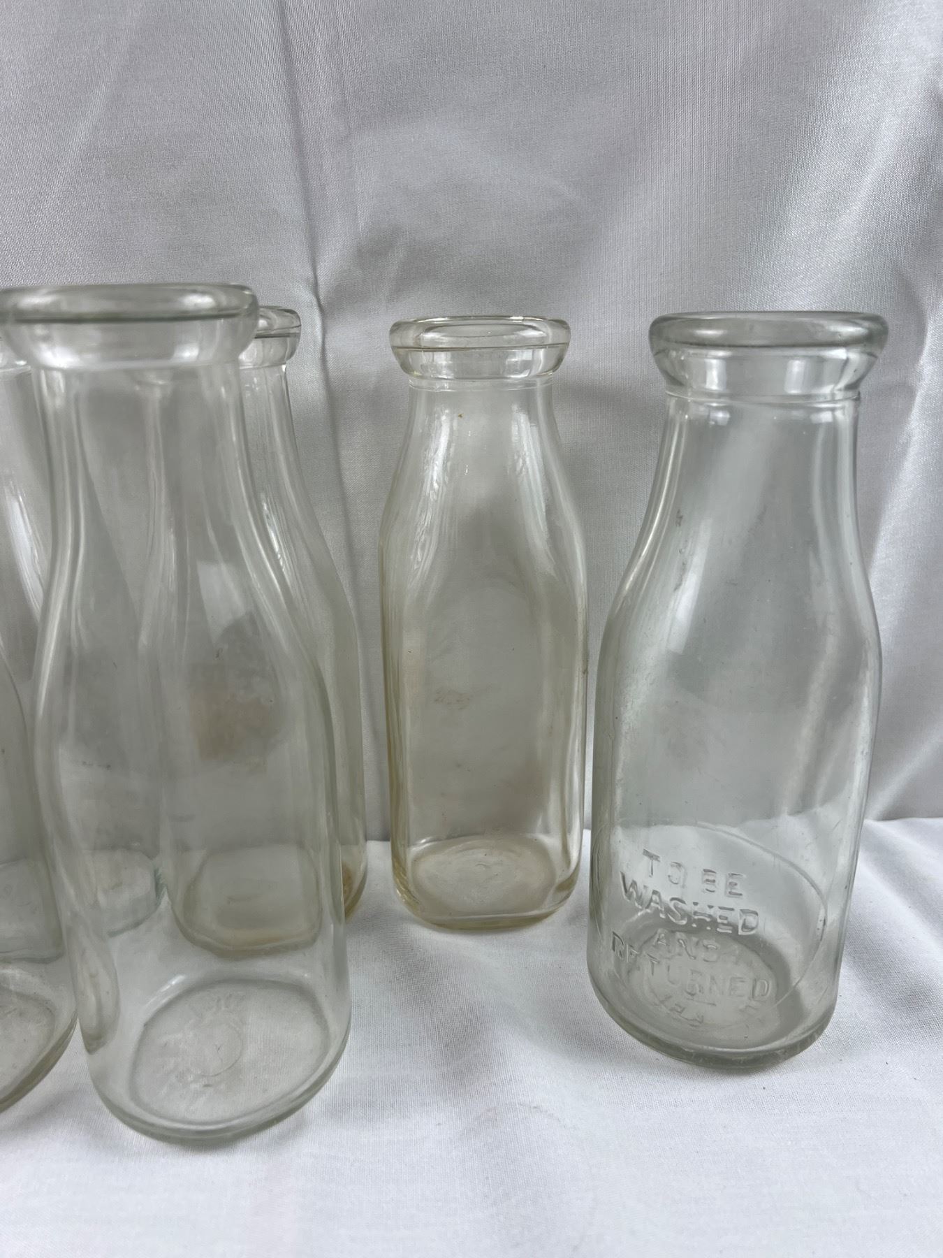 Some stains, The largest bottle is 10.5"H, includes a variety of milk bottle caps and a Edmonton City Dairy opener