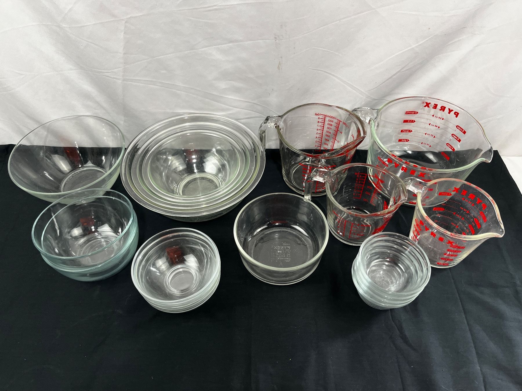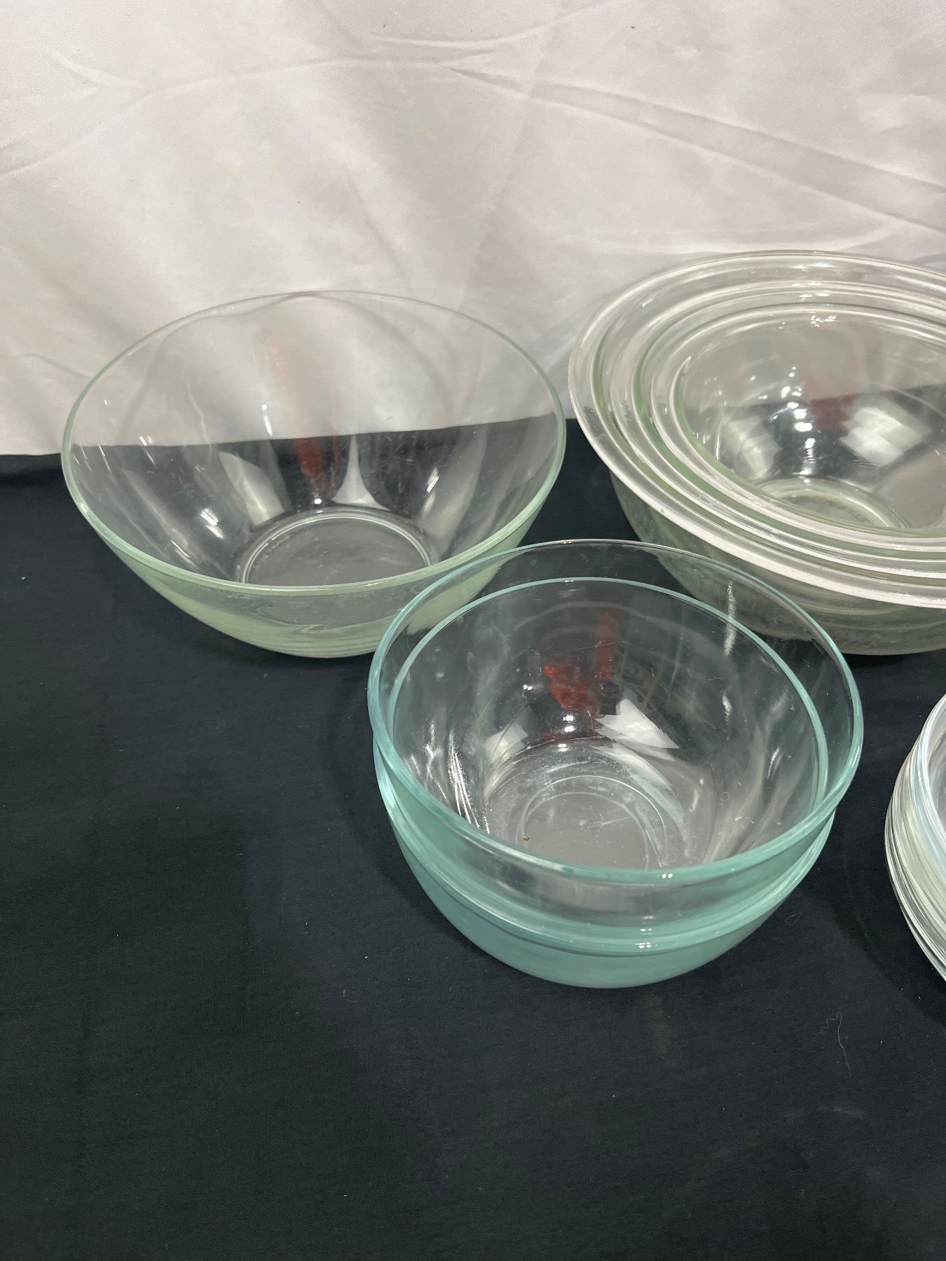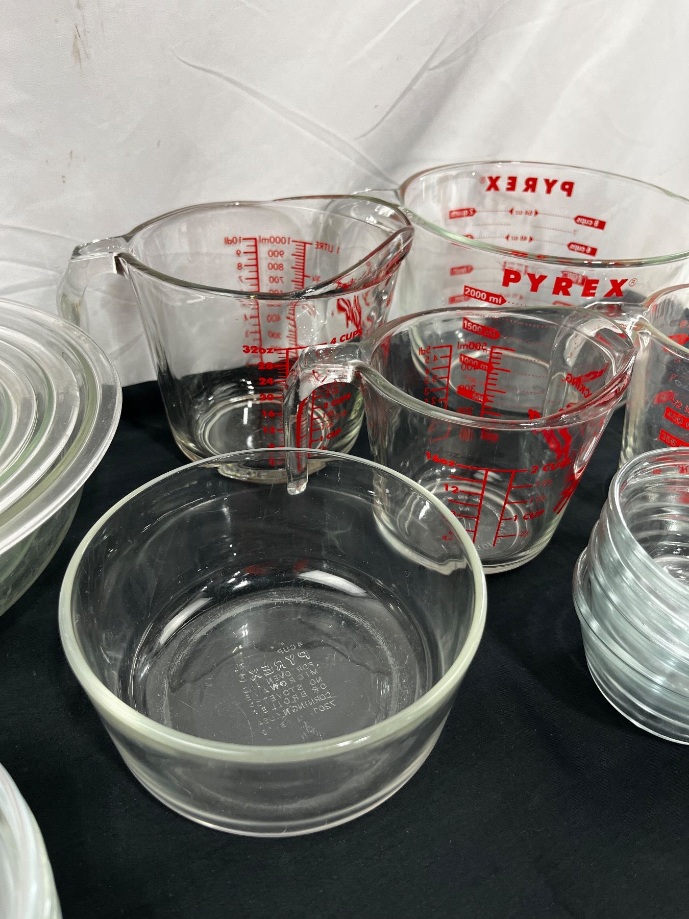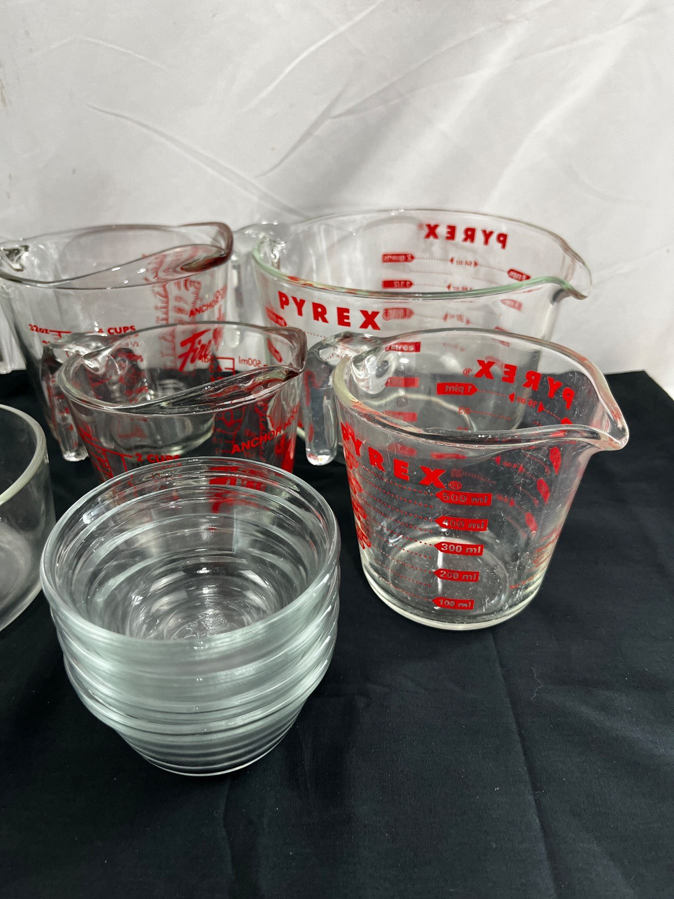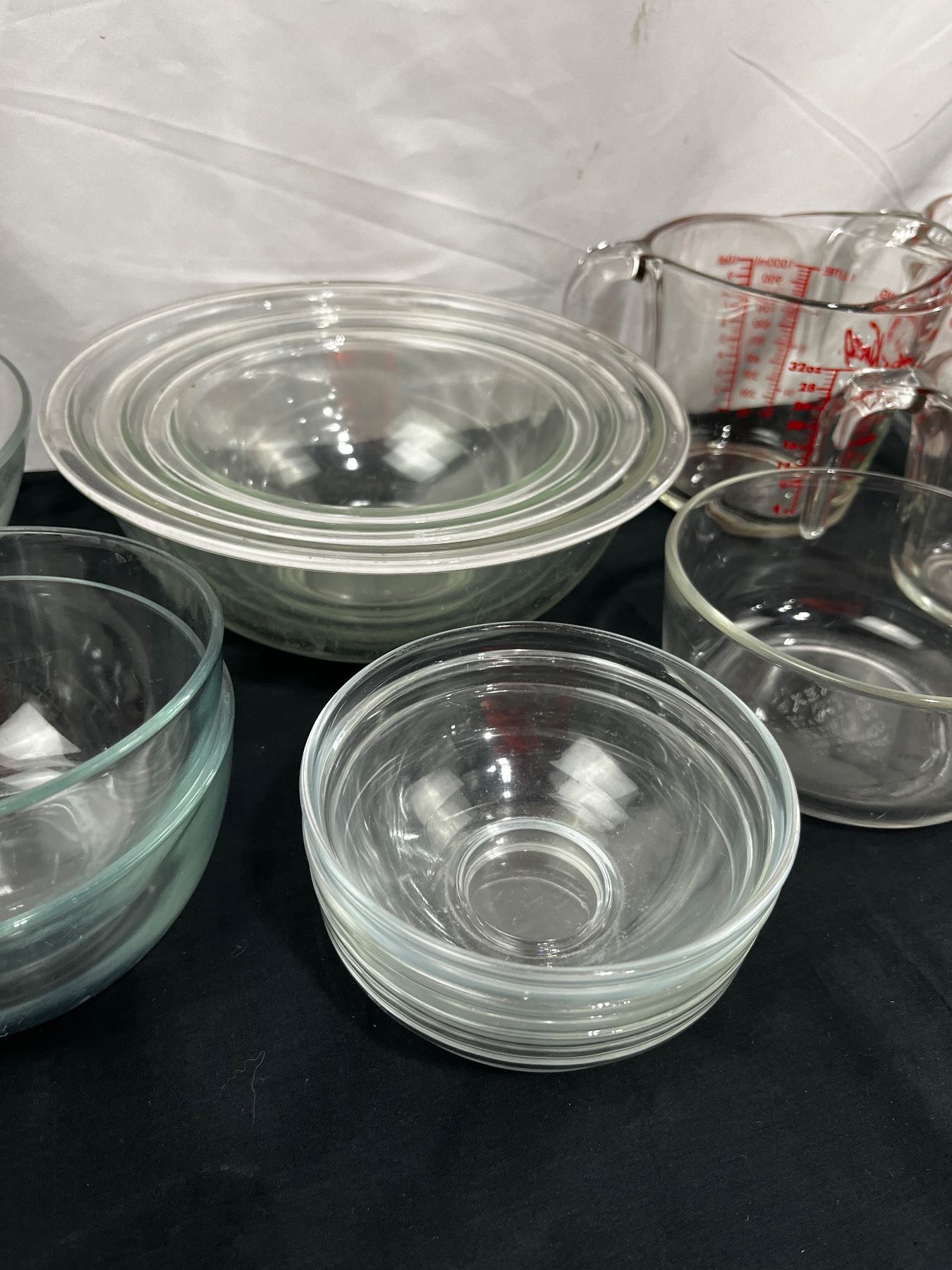 In used condition, no chips or cracks, Includes Pyrex, Fire King and Arcoroc