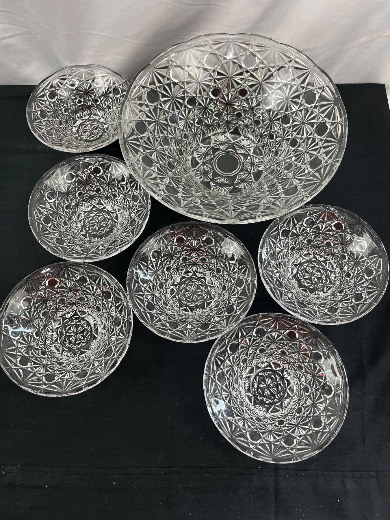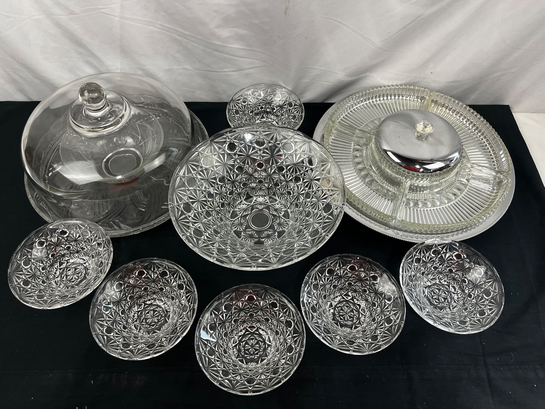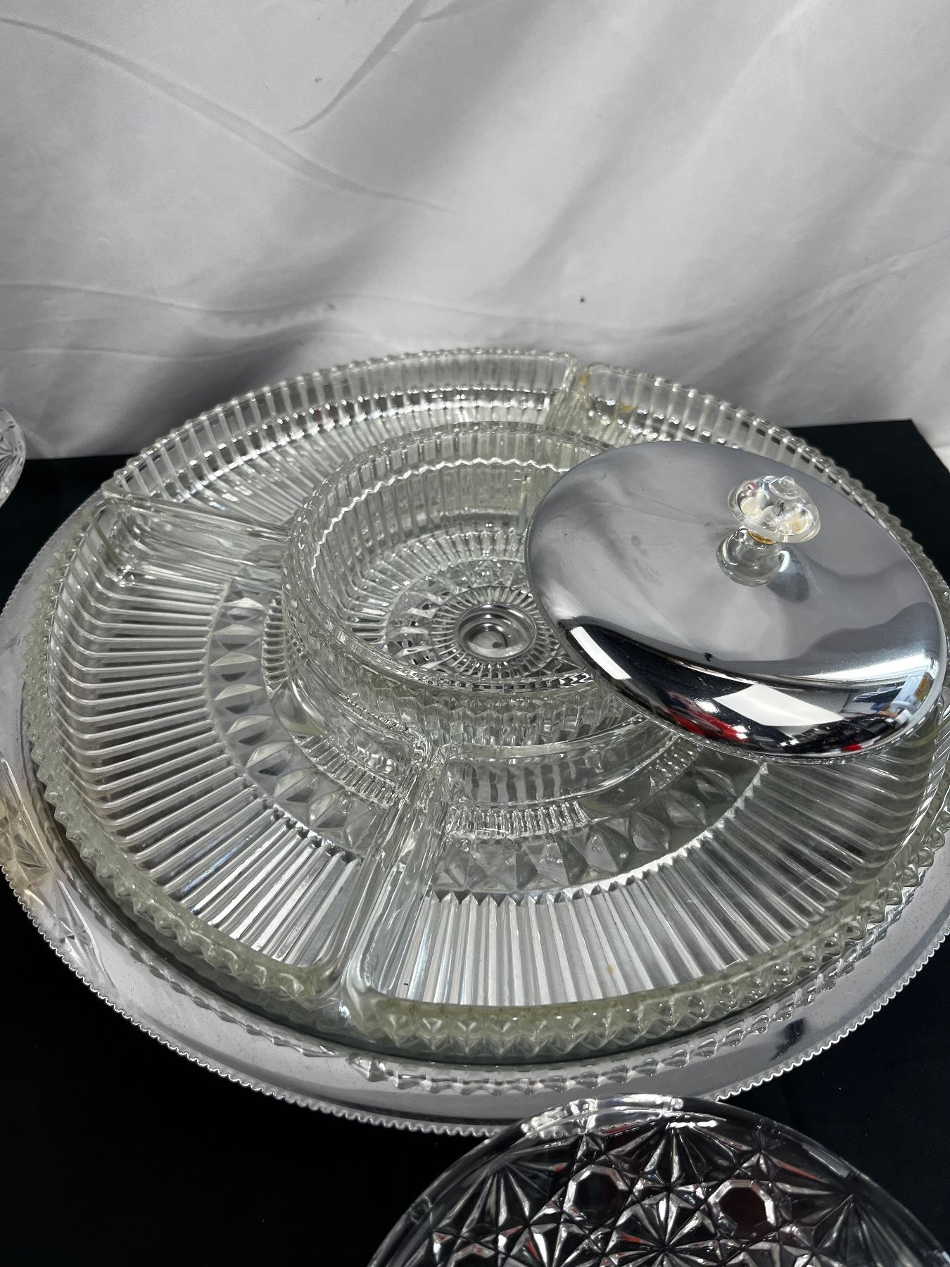 Includes lazy susan condiment tray (one dish has been repaired), set of 7 bowls, etc.