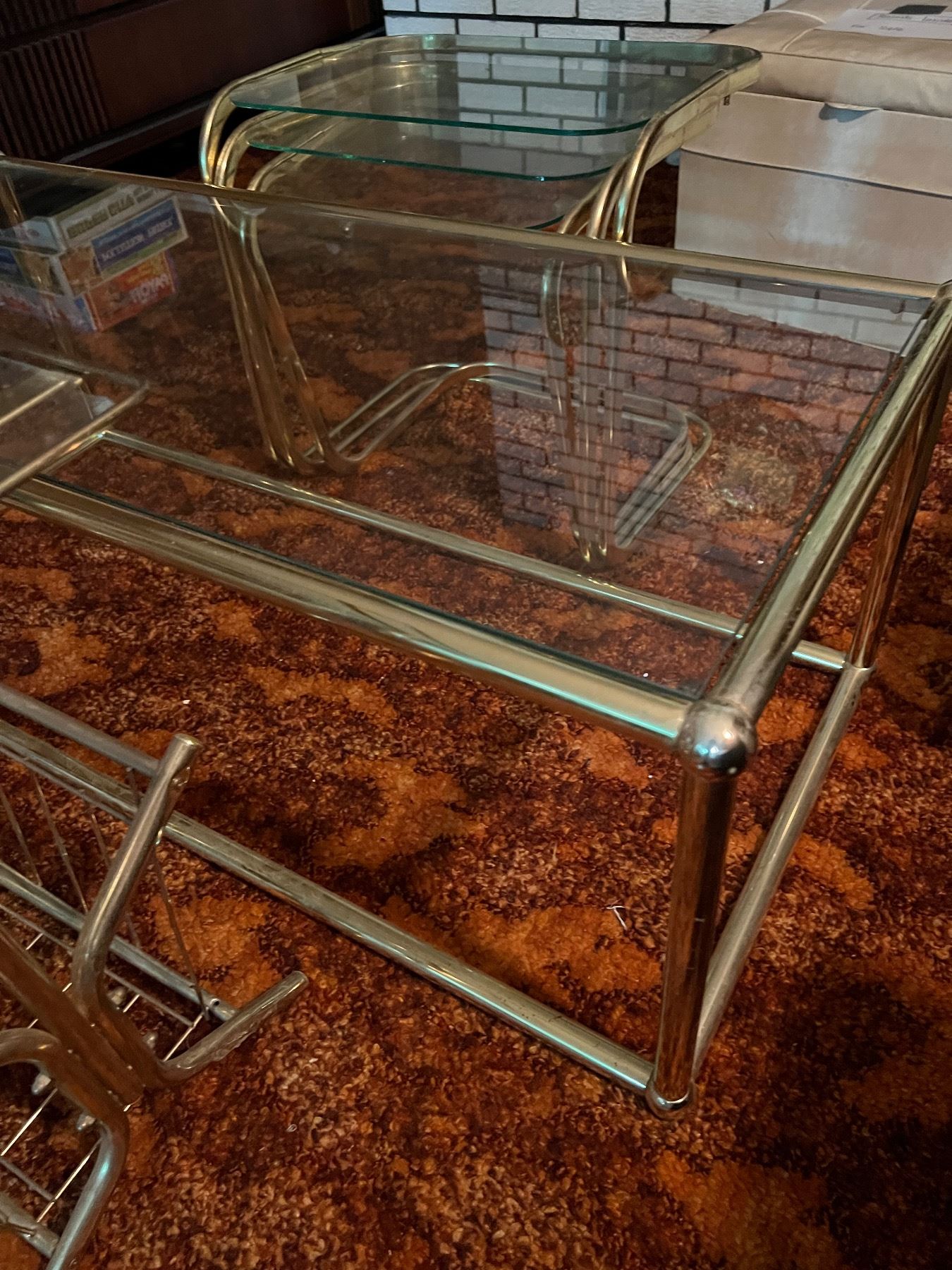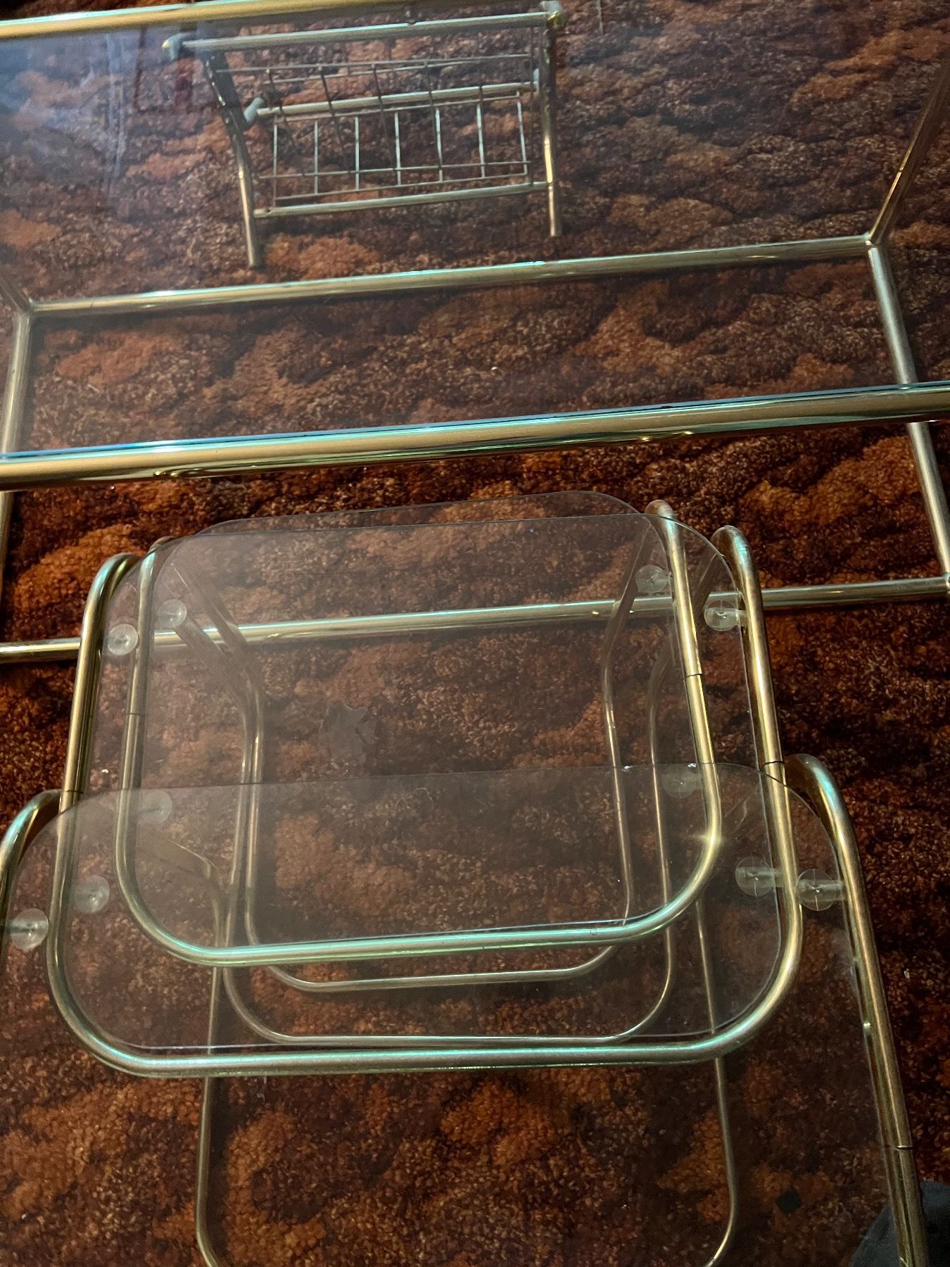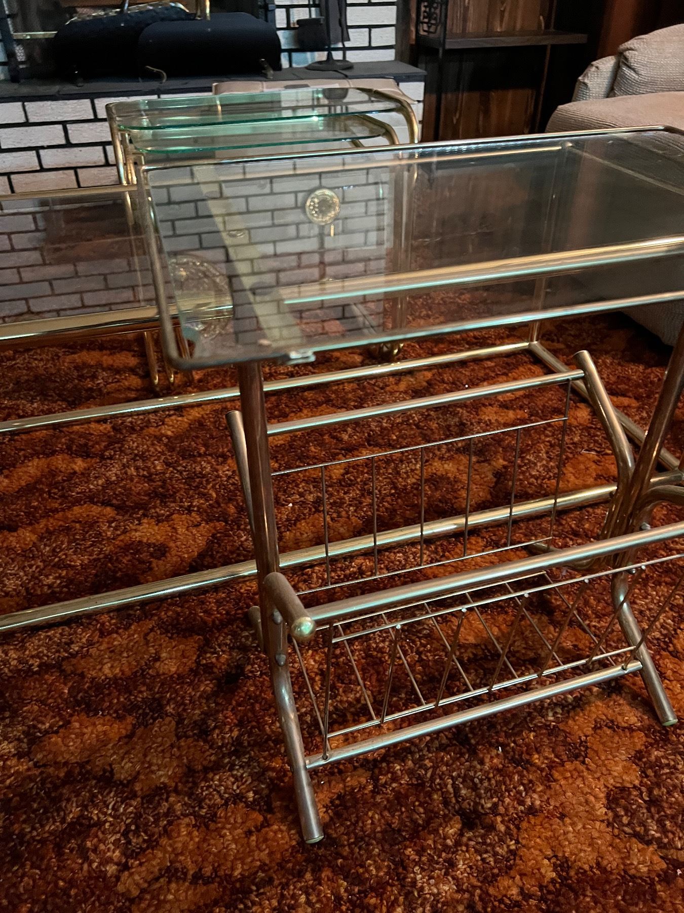 Including coffee table - magazine rack (glass is chipped) - set of 3 nesting tables