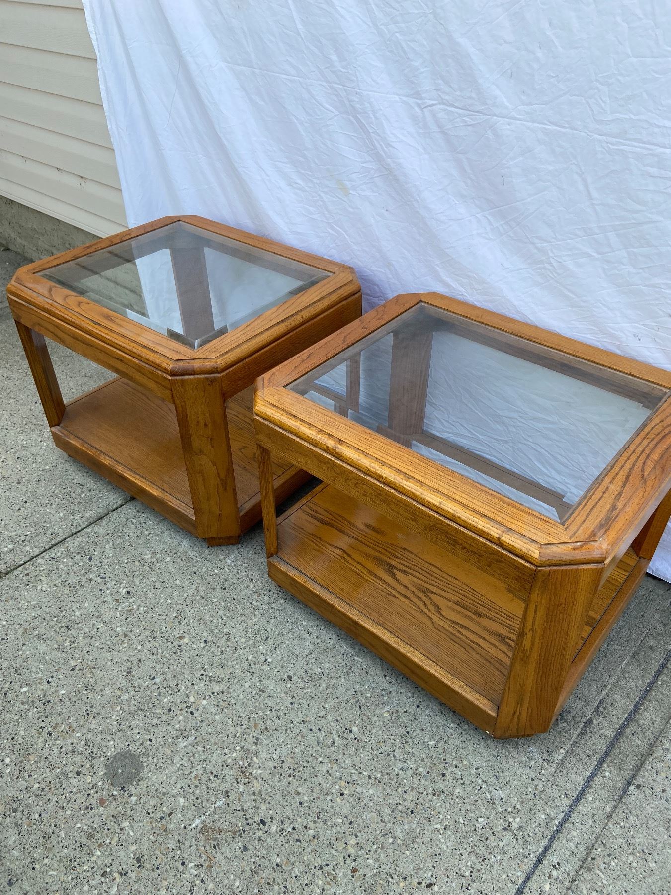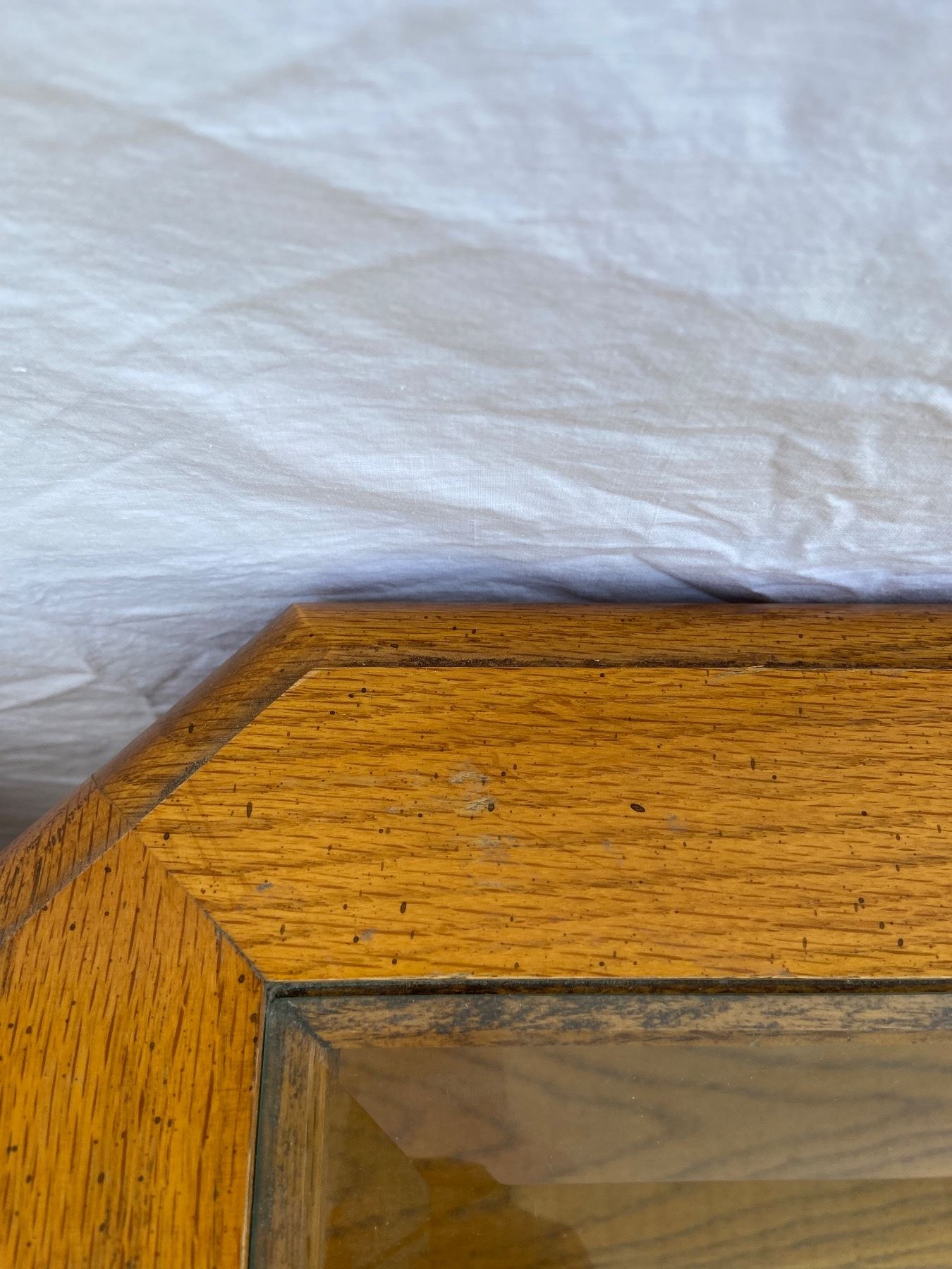 Has some scuffs and small chips in glass, 28"L x 24"W x 21"H