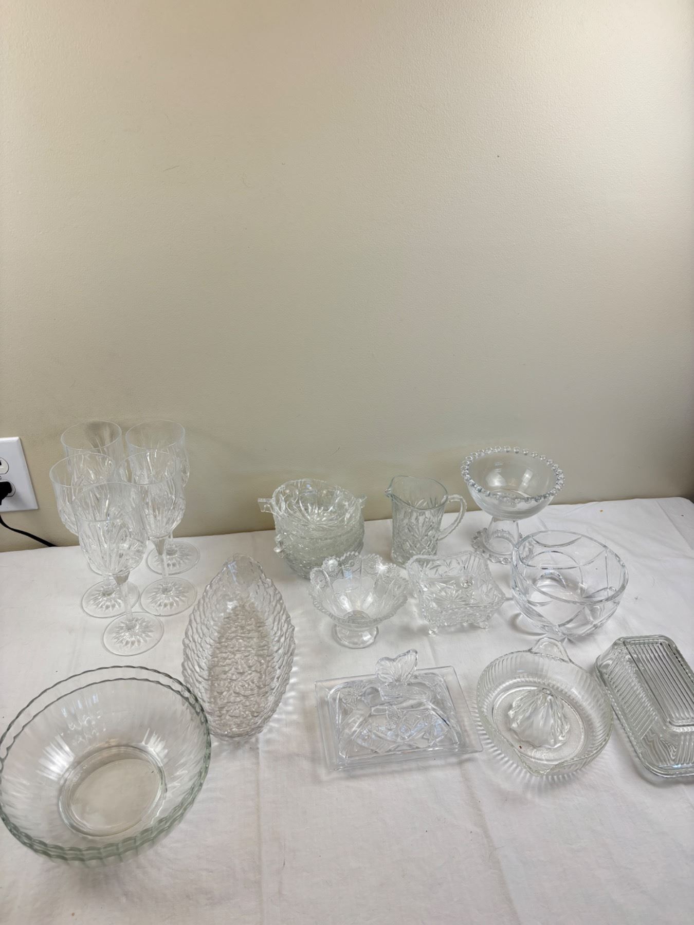 Includes five wine glasses, butterfly butter dish, lemon juicer, and more