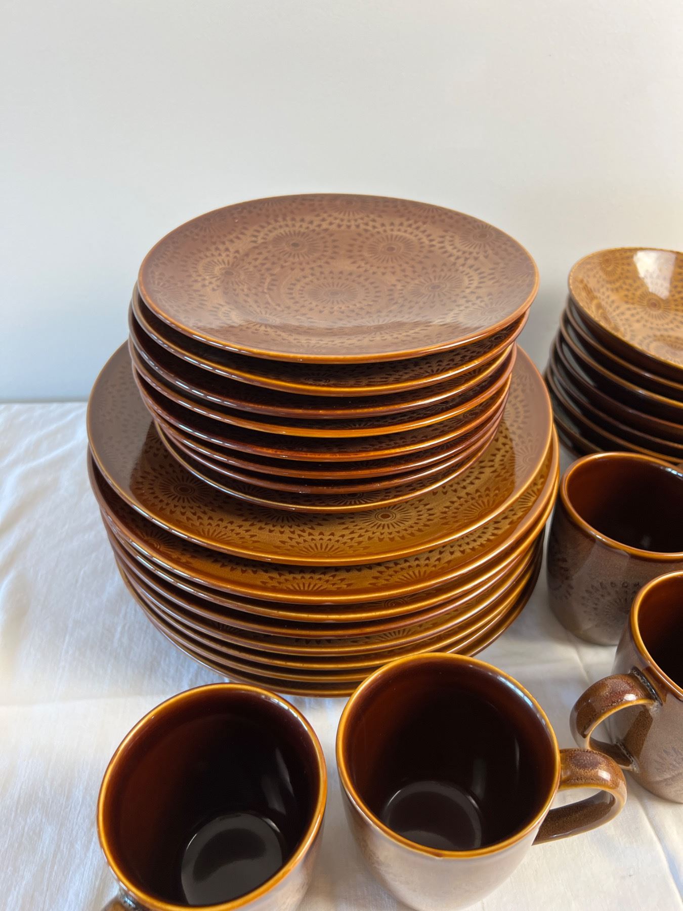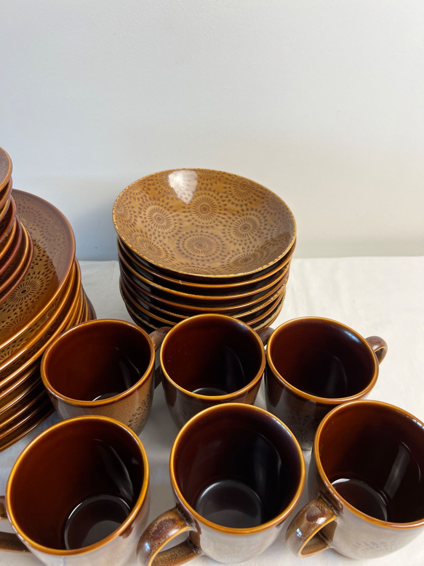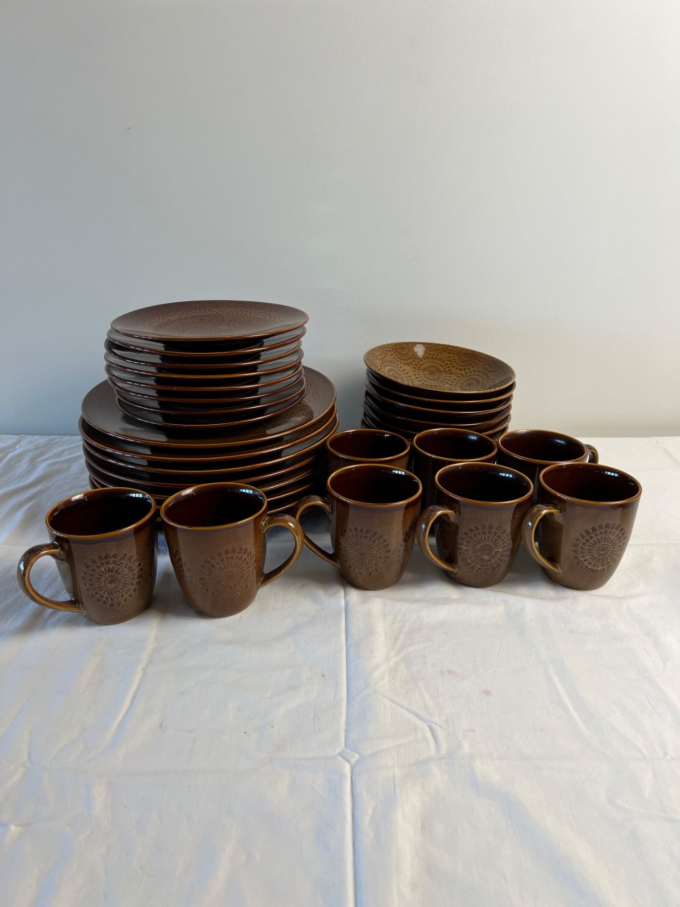 Small chip in one of the bowls. Largest plates measure 11" in diameter. 32 pieces total.