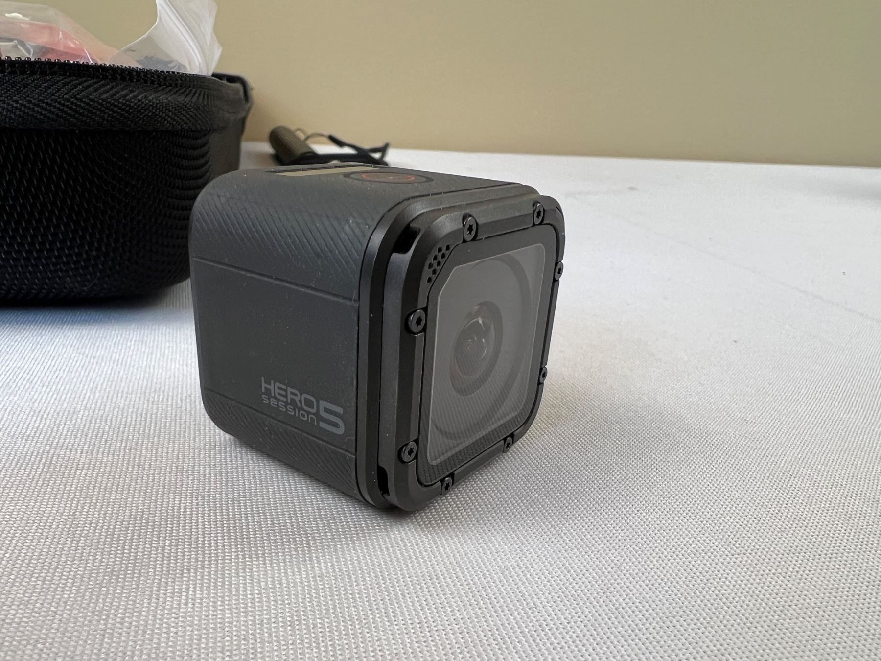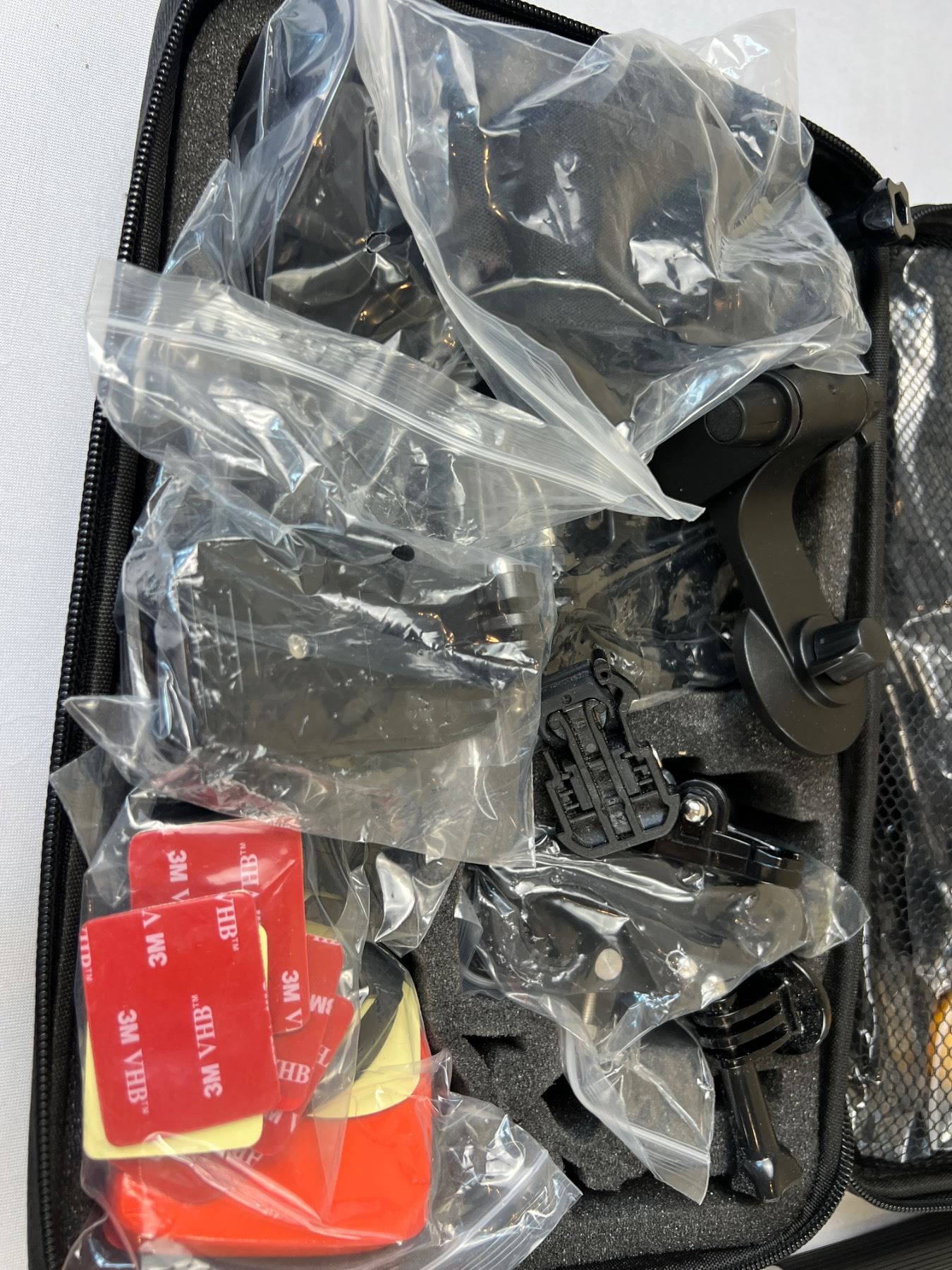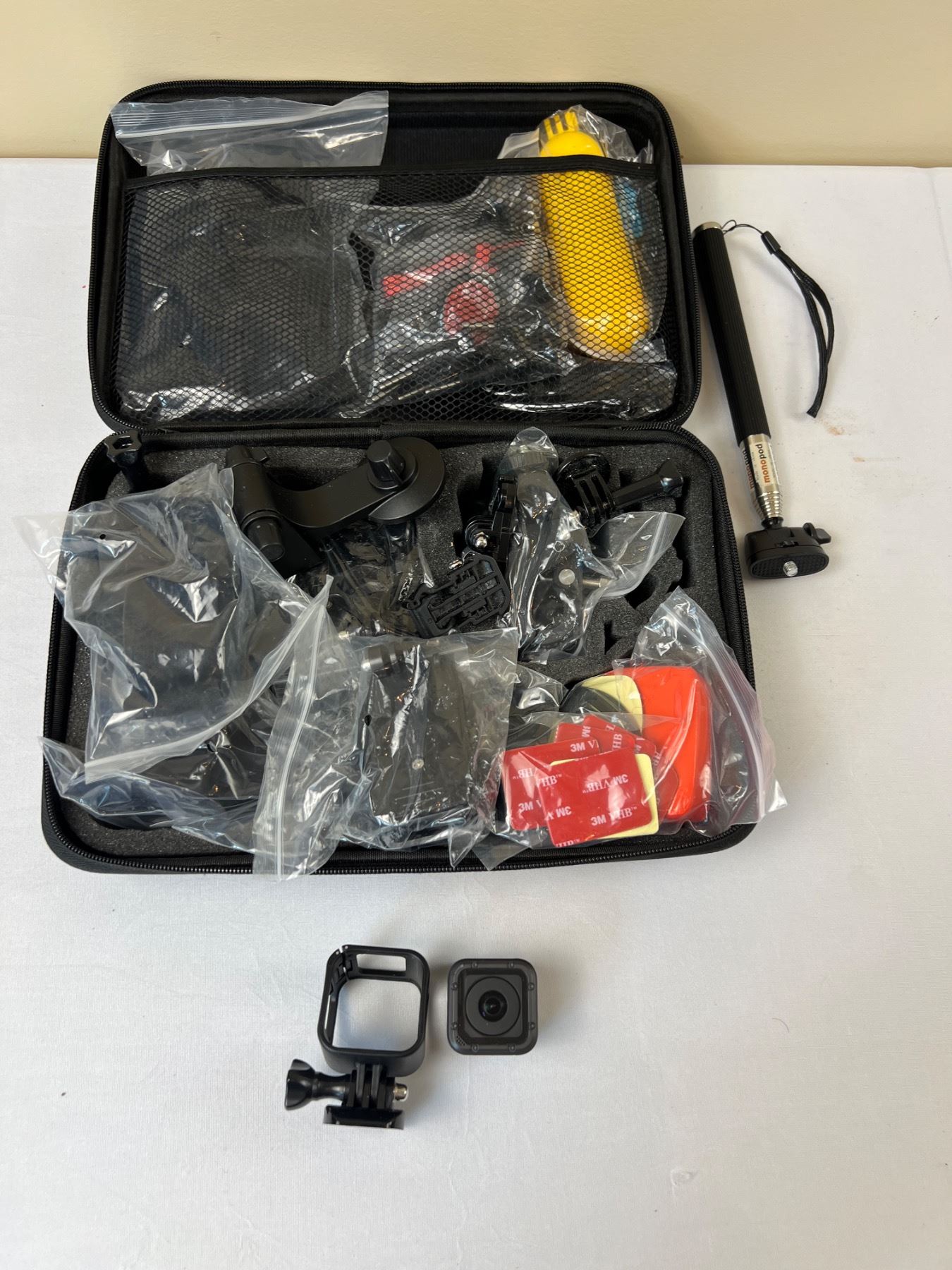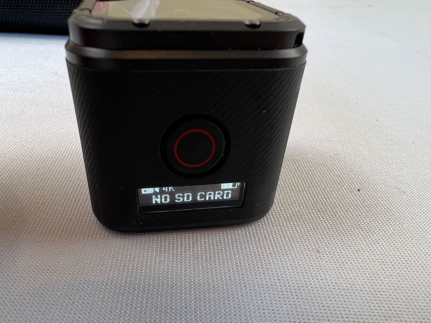 Includes an accessory kit, the GoPro powers on - needs an SD card, no charger