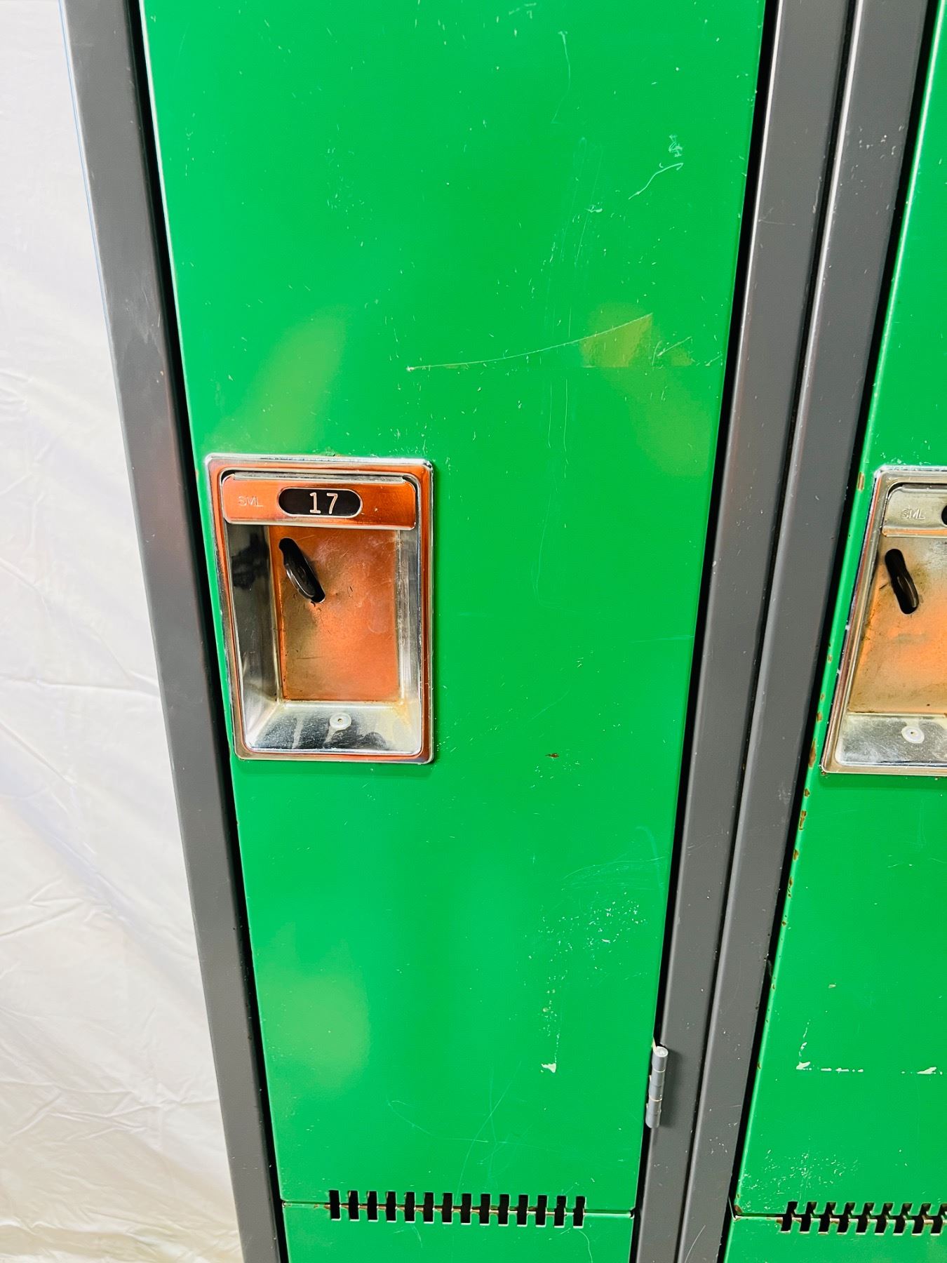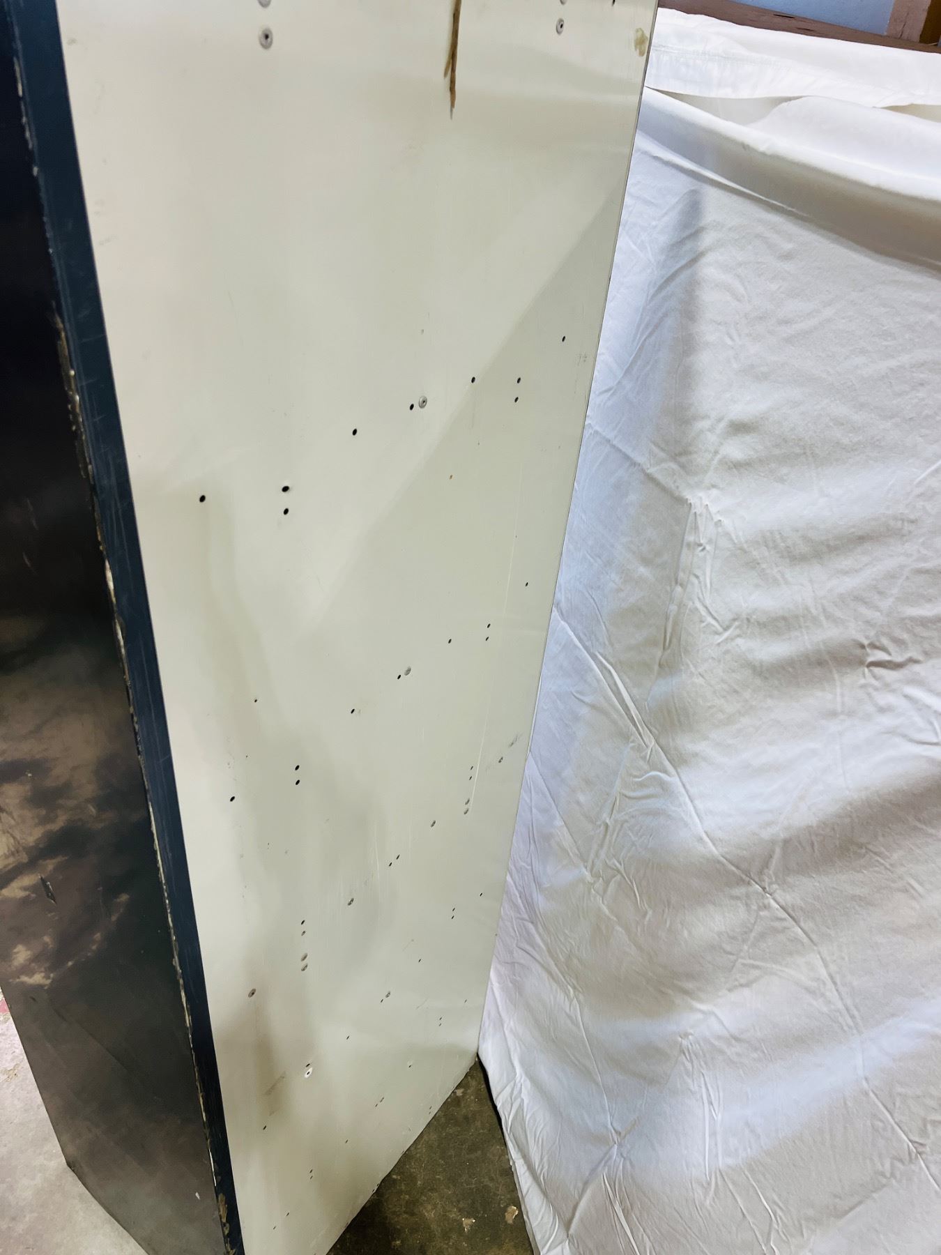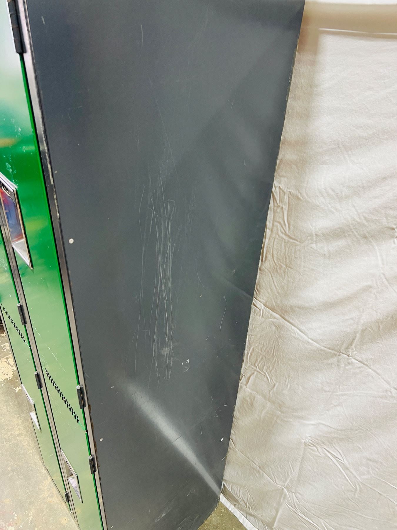 Measures 72"H 18x24", Writing and markings on left side, scratches and scuffs to metal surfaces