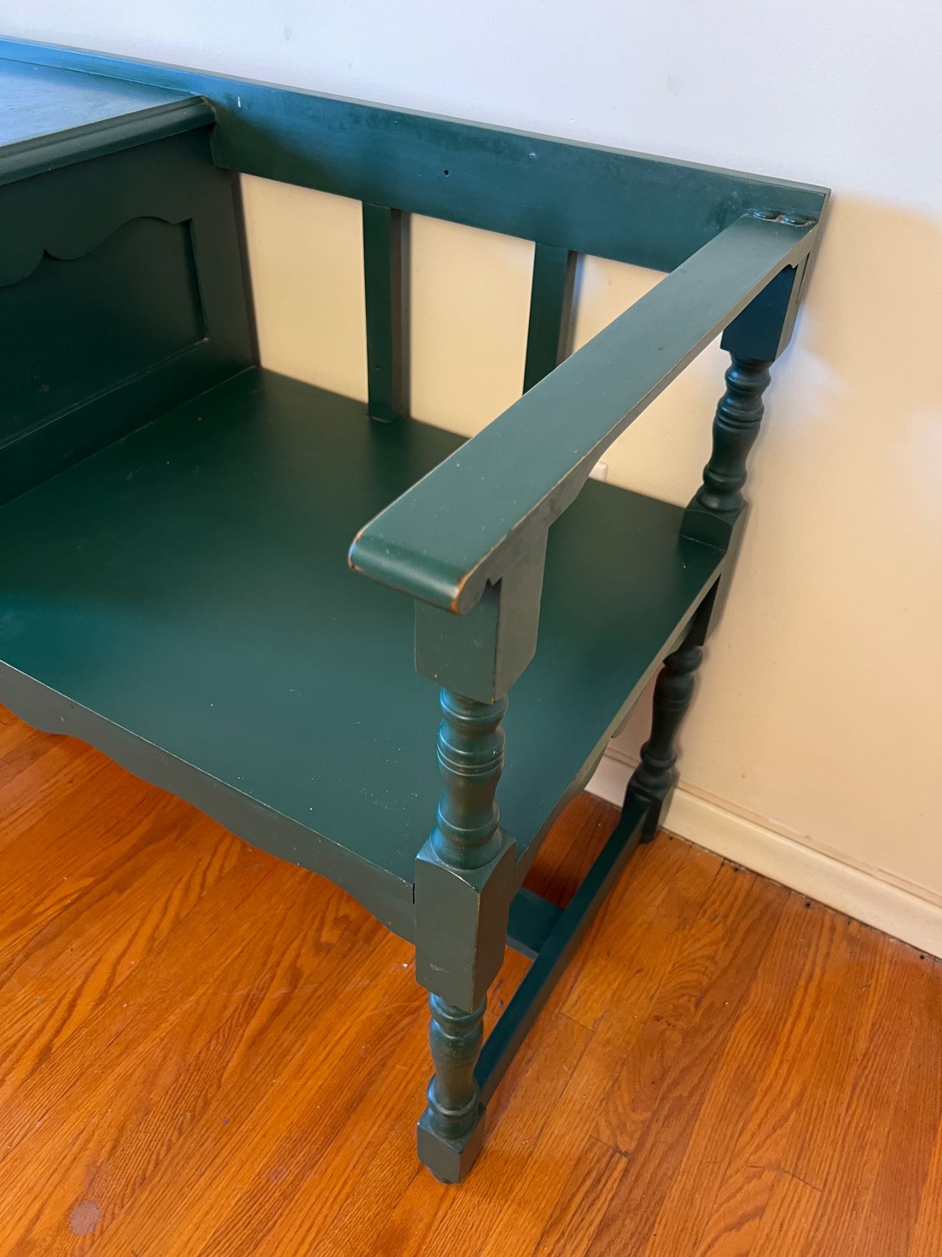 37"L x 20"W x 28"H, Has some chips and small stains, no cushions included