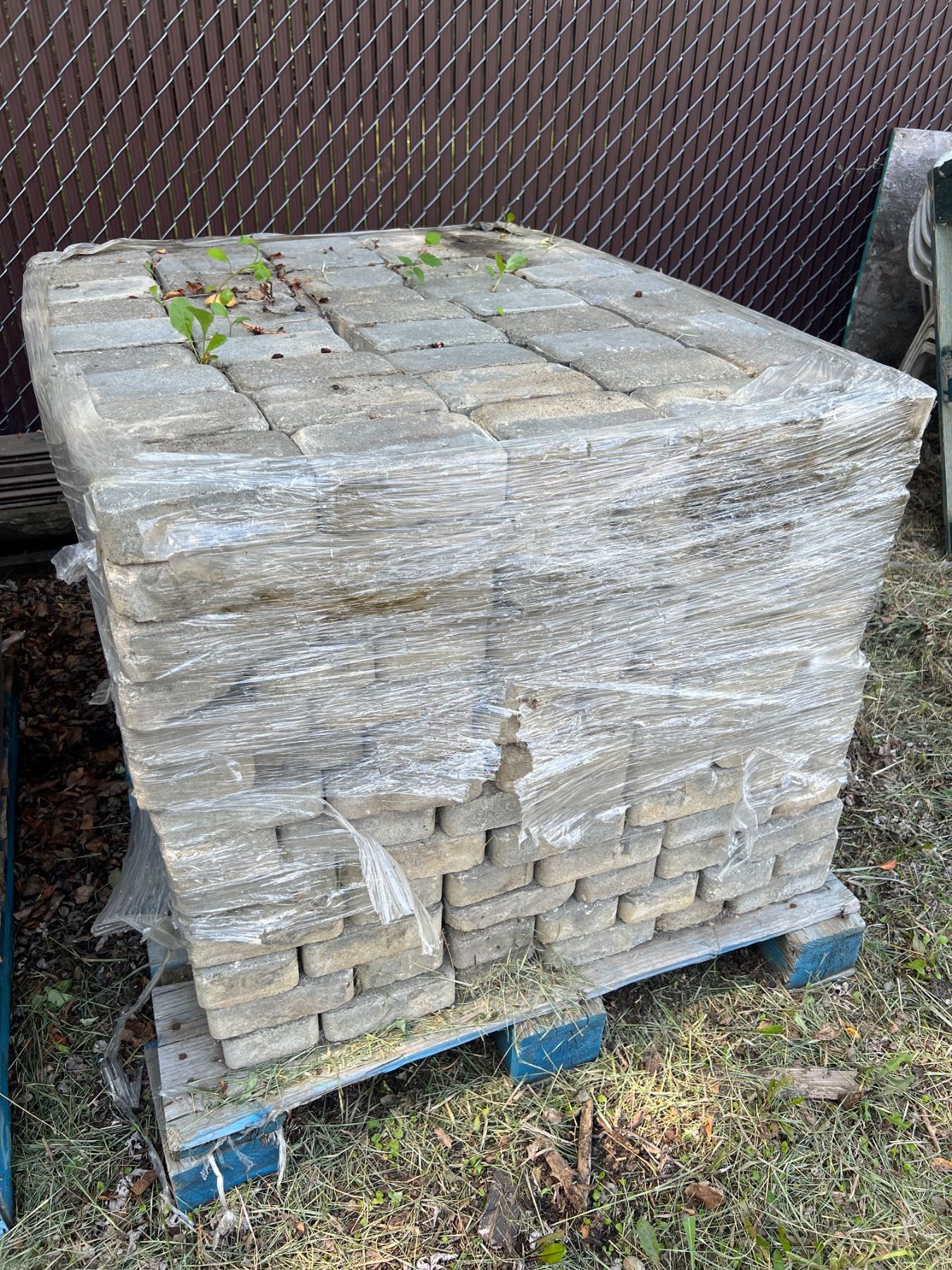 Bricks are on a pallet, each brick measures 5x7", buyer must bring appropriate equipment to move bricks (gate entrance ton the yard is 8' wide)