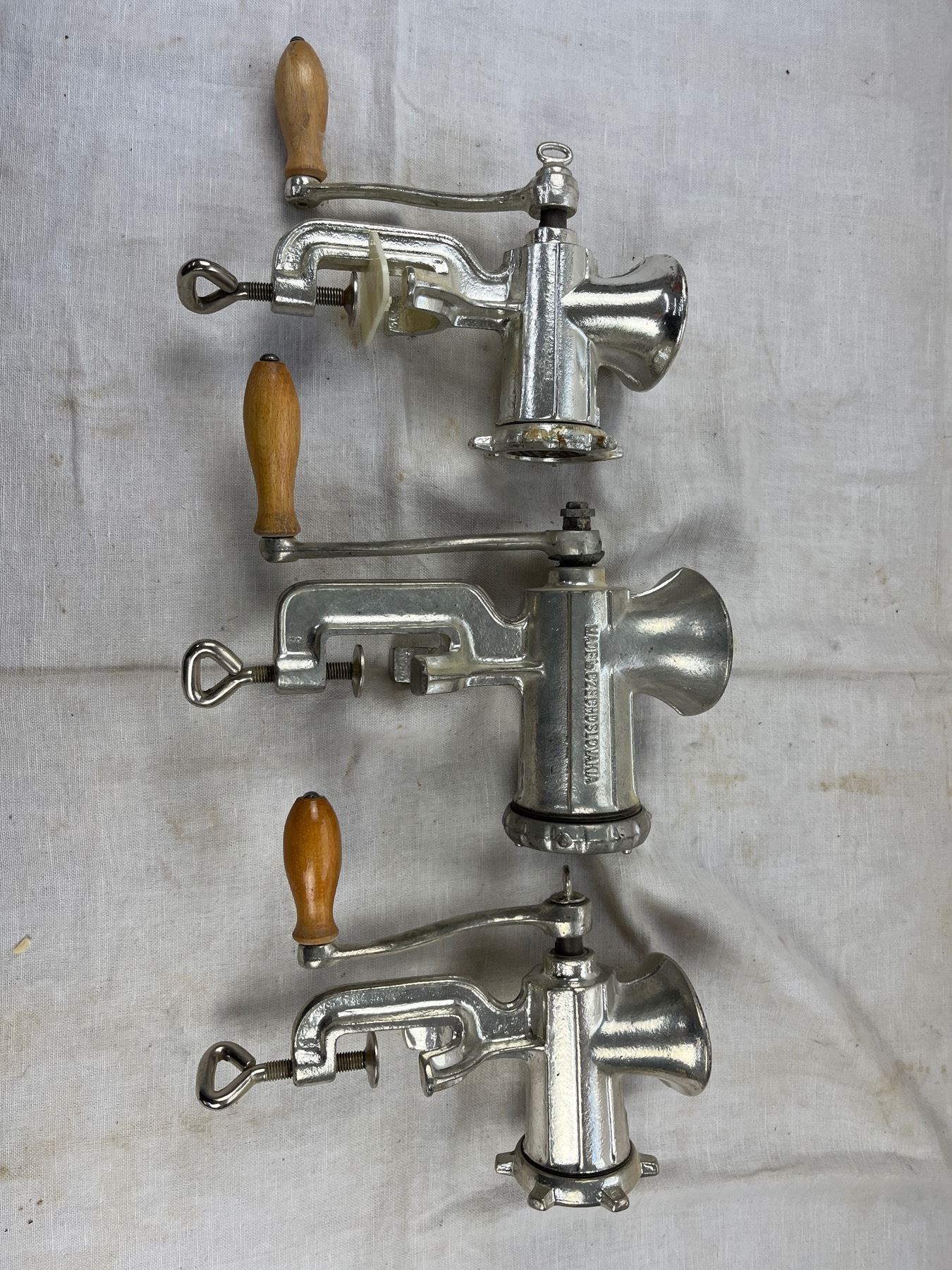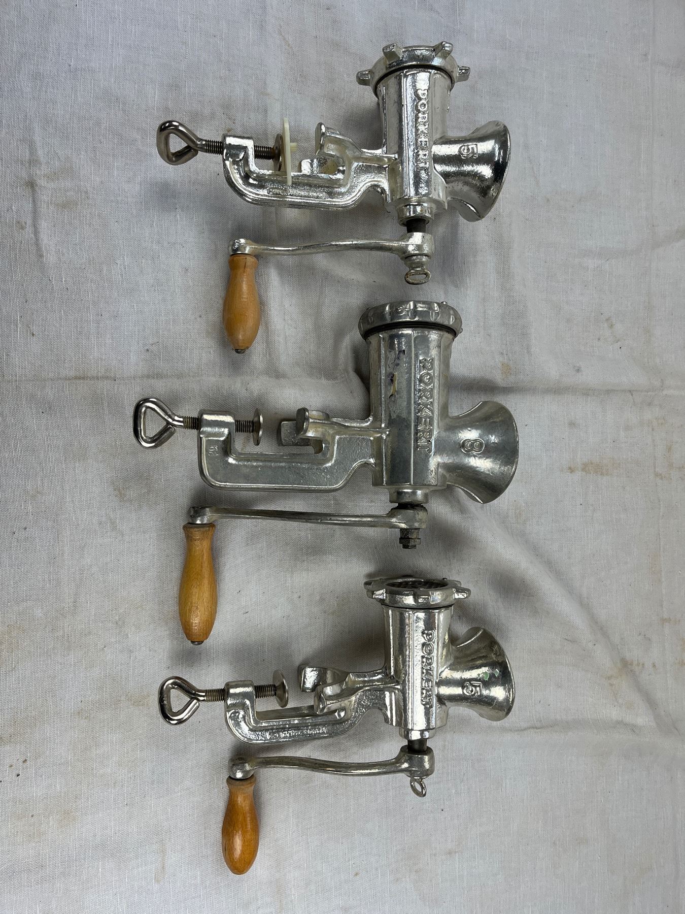 3 Made in Czechoslovakia Porkert Grinders - 2 No.5 and 1 No.8