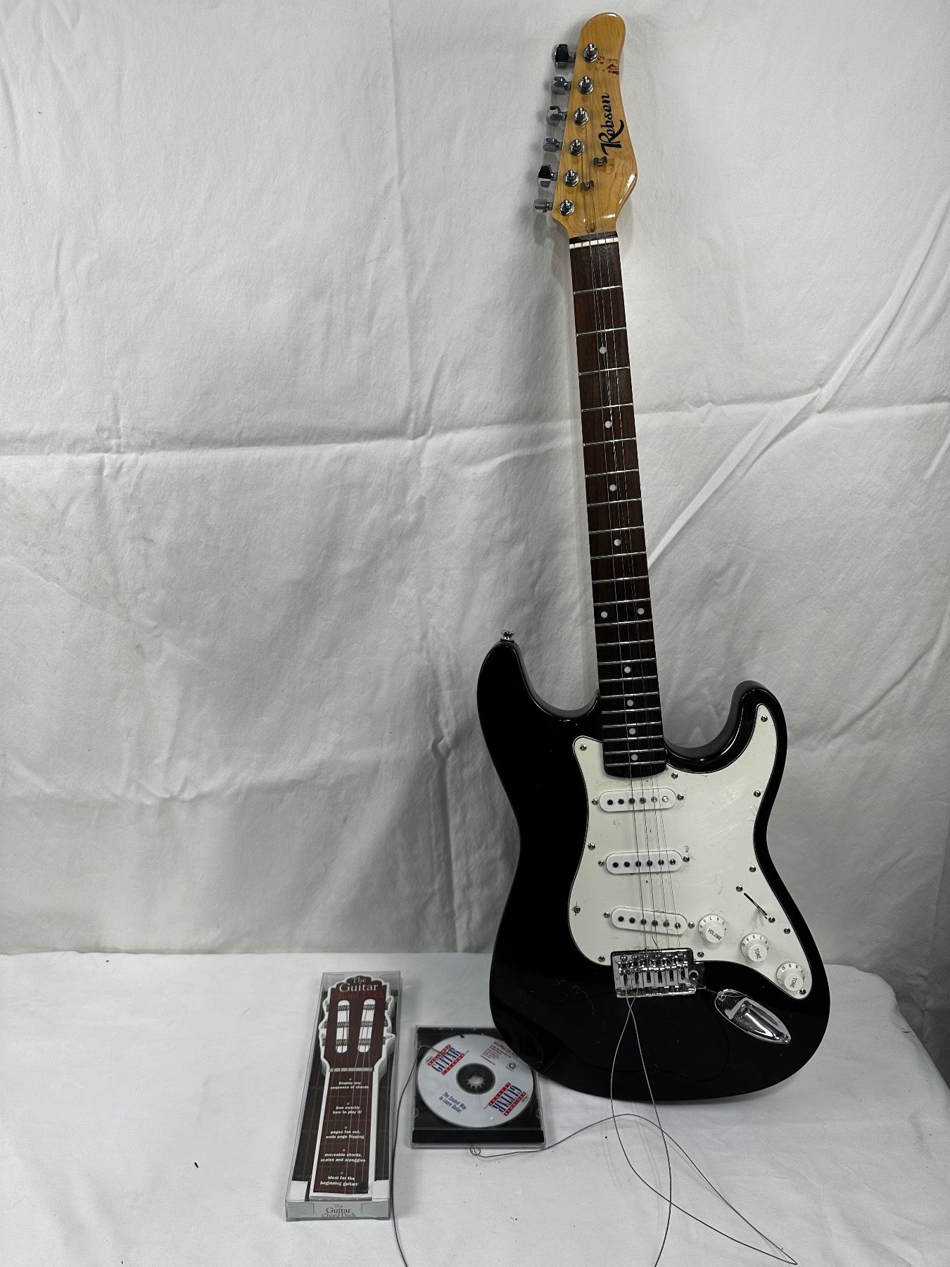 Includes Robson Guitar - made in China - has broken strings, eMedia Beginner Guitar Lessons CD and The Guitar Chord Deck.