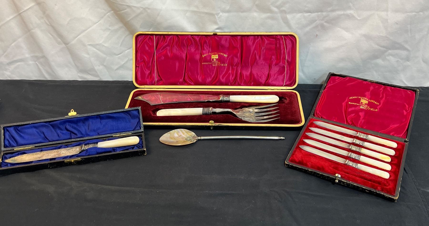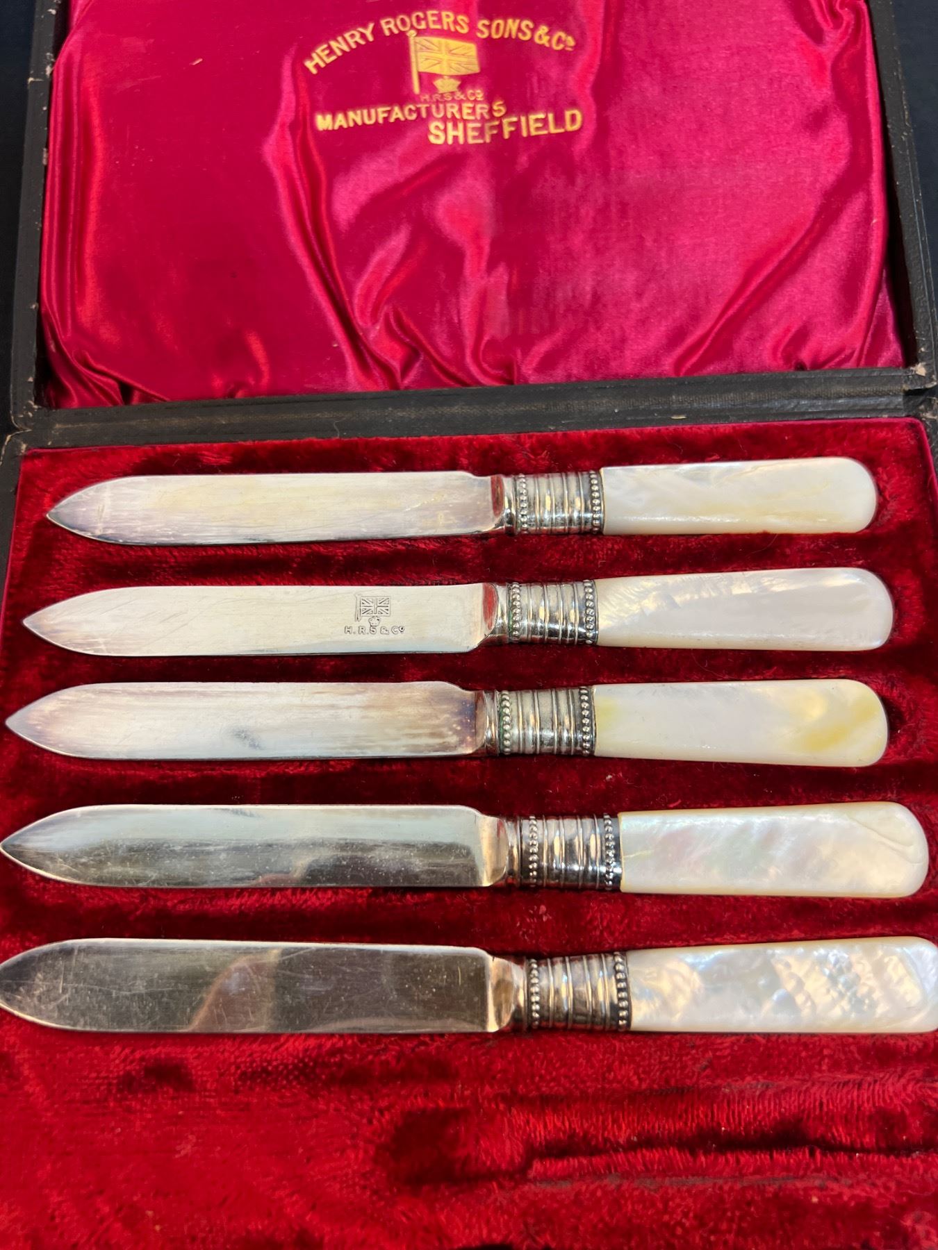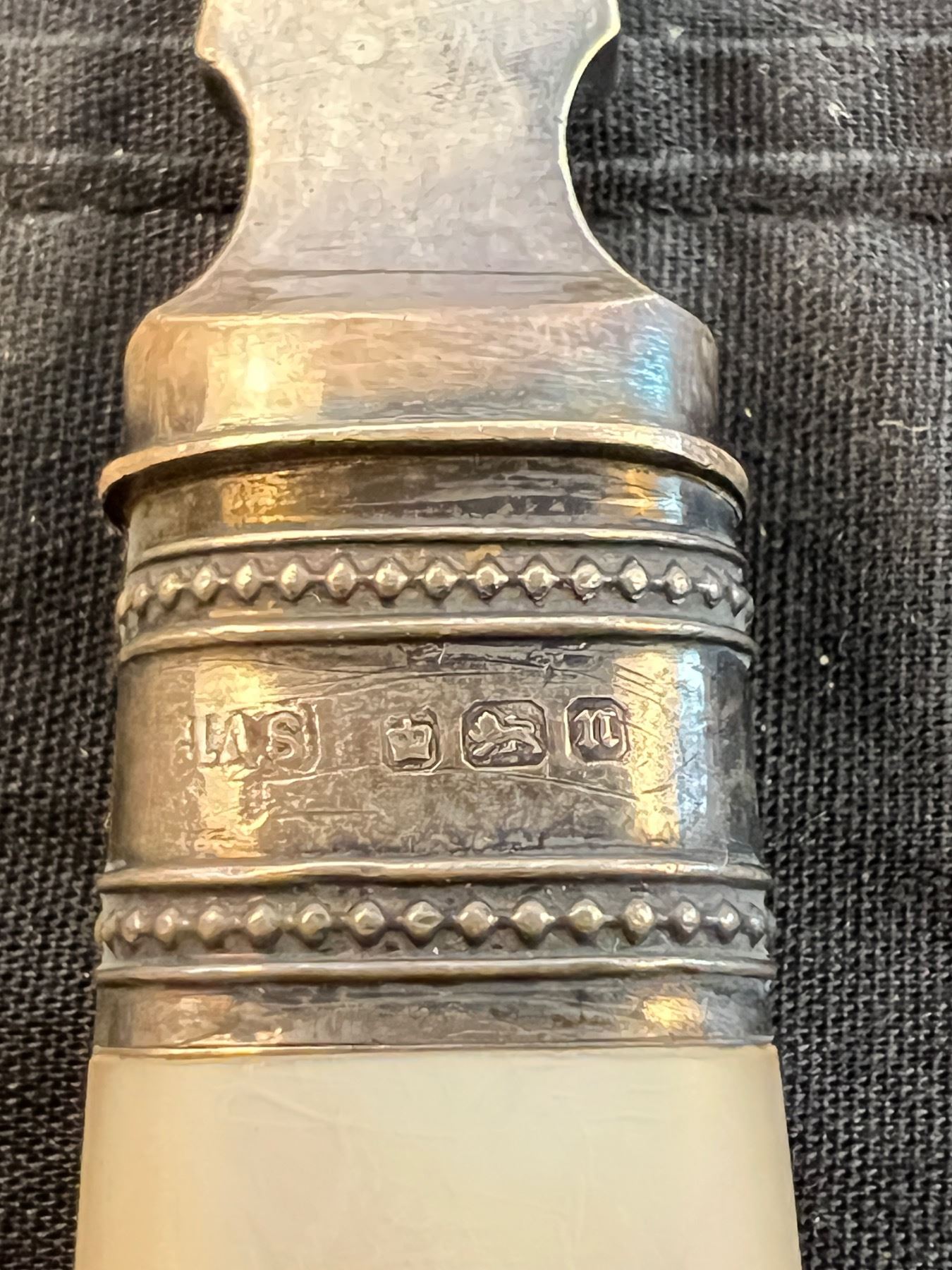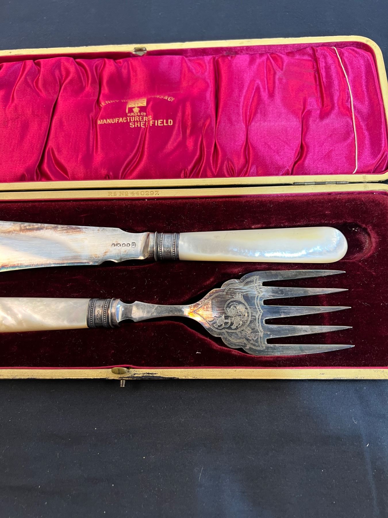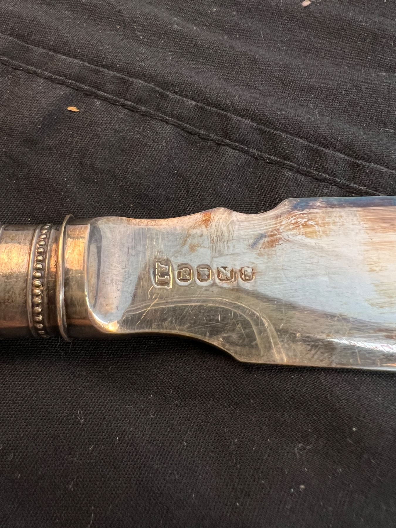 One of the large forks has the lion symbol on it. All have varying levels of tarnishing.