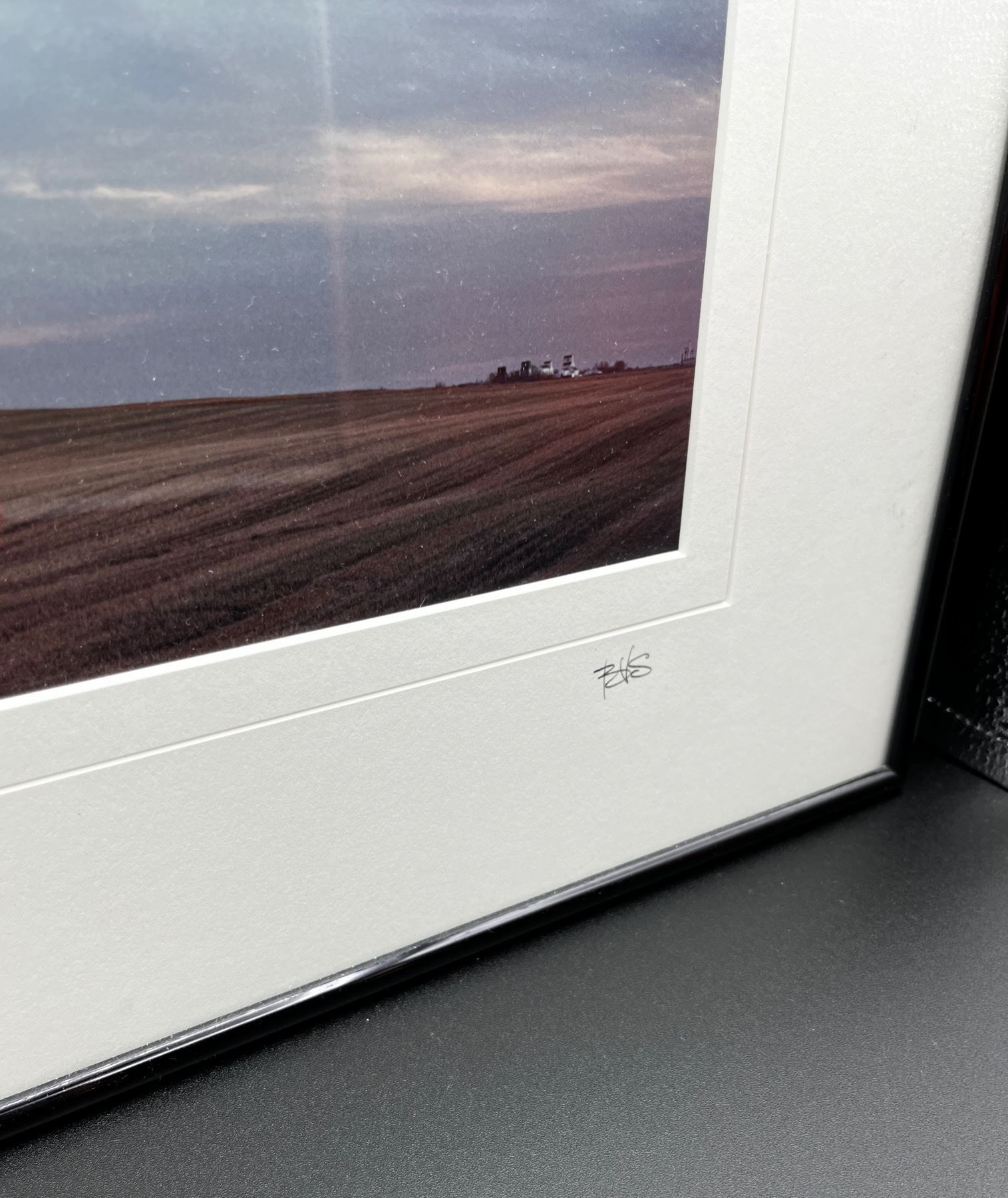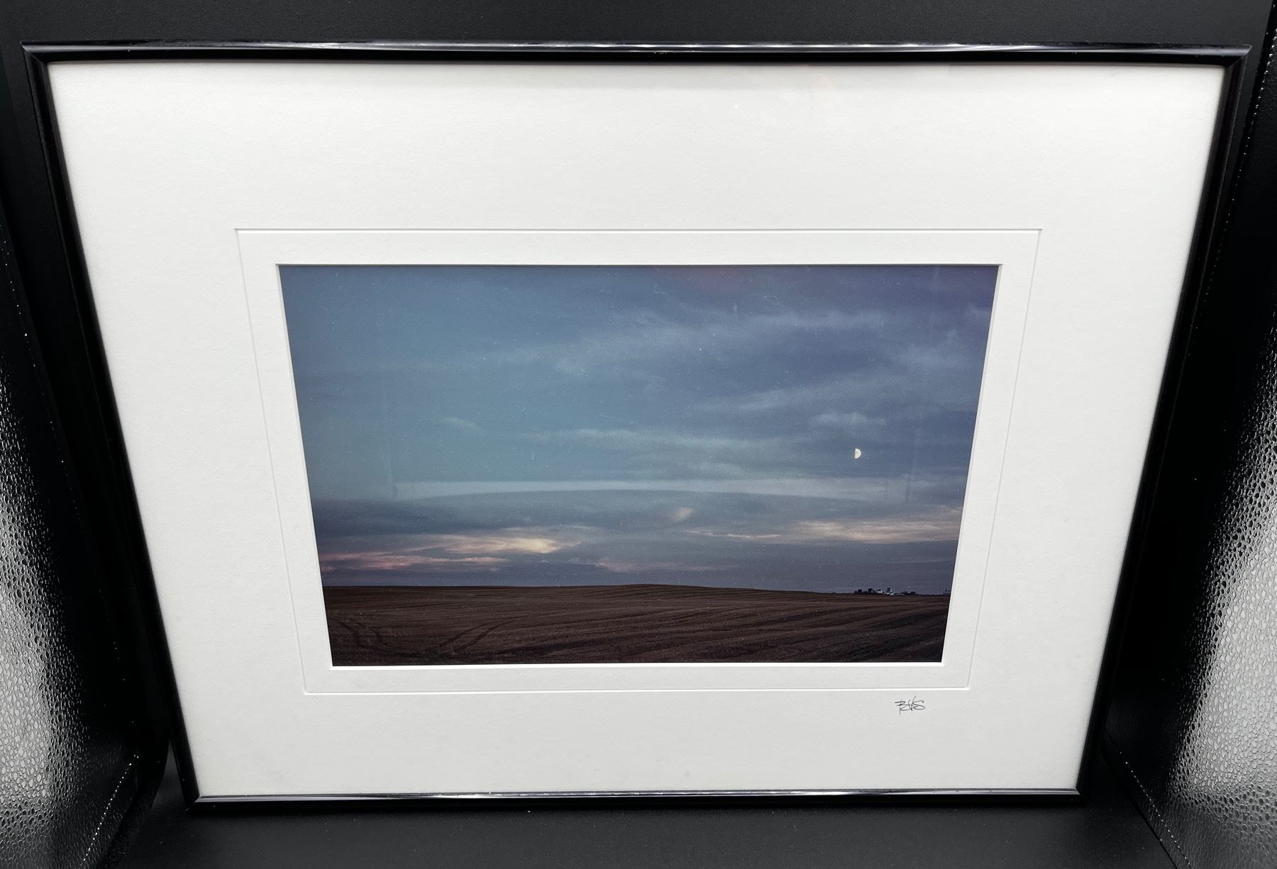 Original Alberta Landscape Photographs by Brian Van Sickle - Half Moon Over Priarie Town (Image 32 x 21 cm - Frame 50 x 39 cm) - Color Cibachrome - Black metal frame and archival mat - Signed