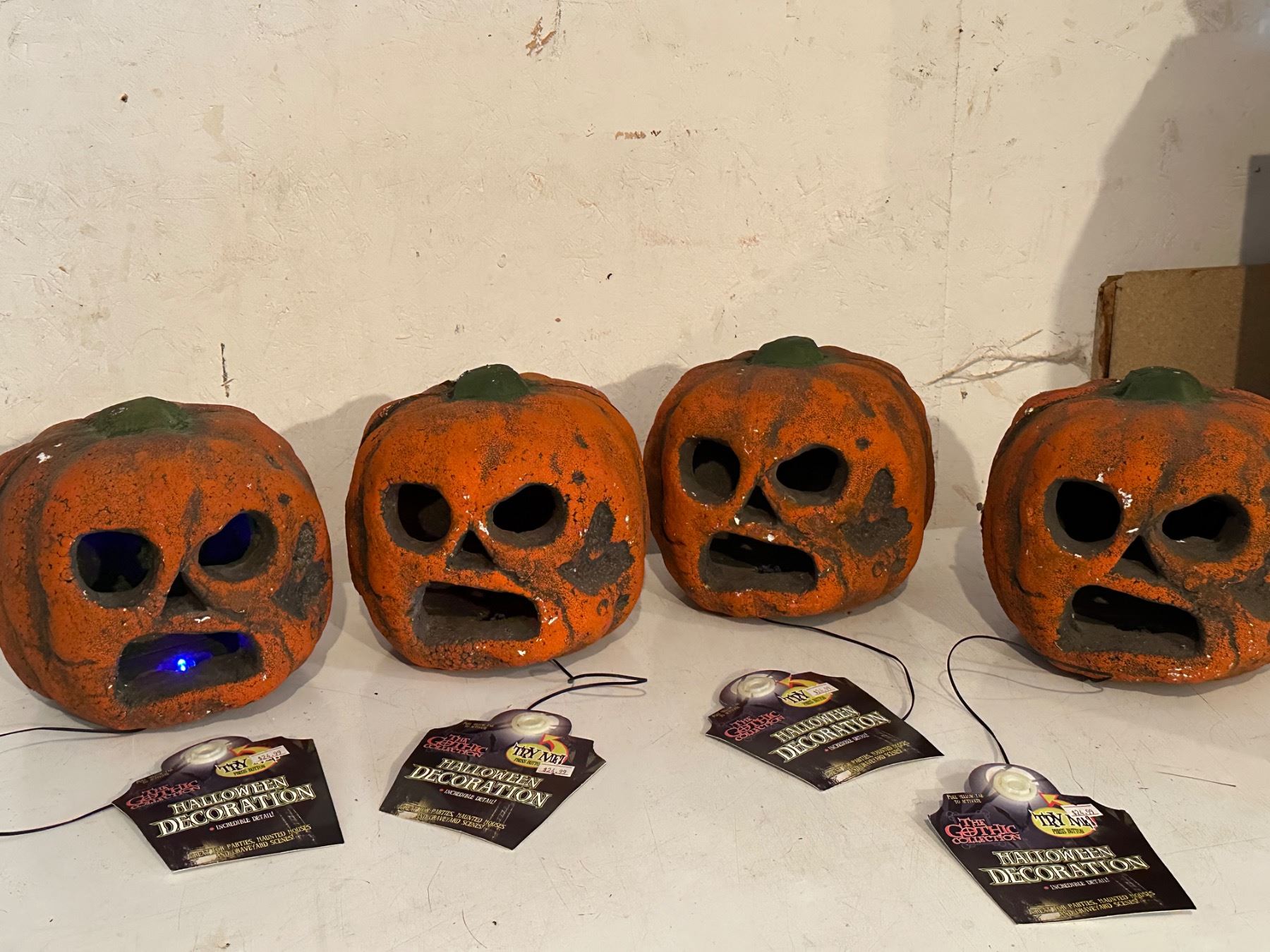 4 battery operated Jack-o-lanterns - 3 out of 4 worked when clicked the "try me" button - tak 3 AAA batteries