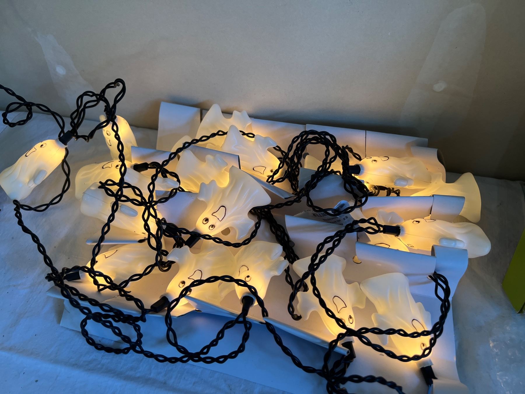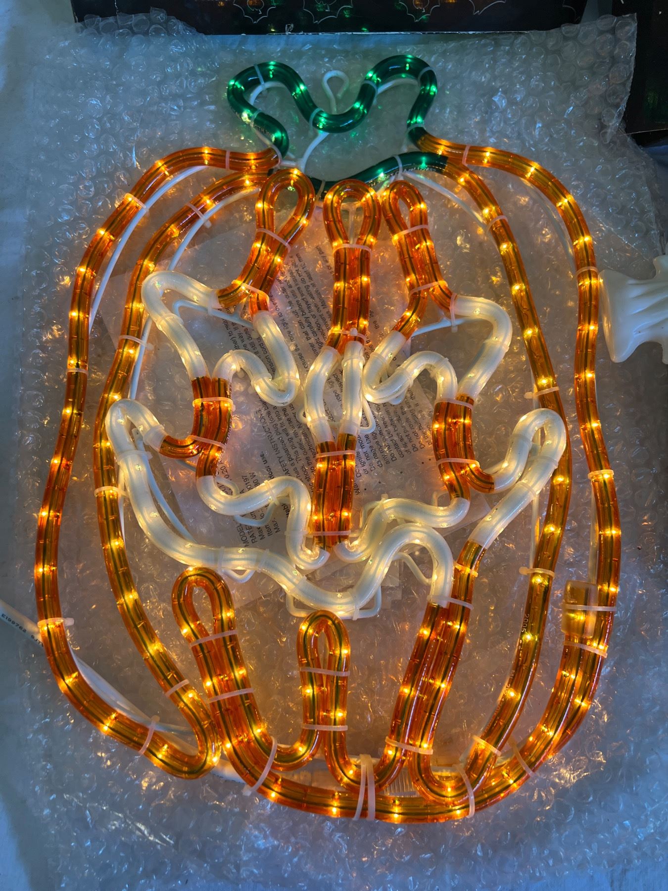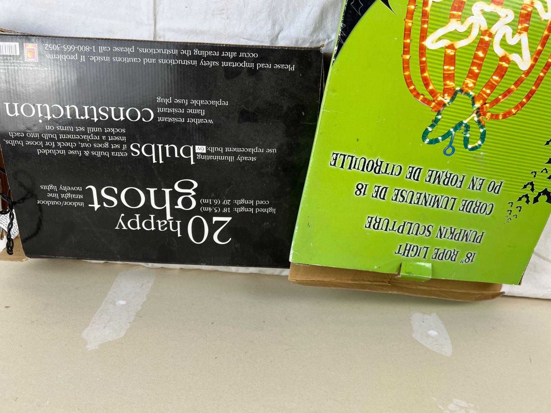 Includes a 18" Rope Light Pumpkin and Happy Ghost String Lights, both work