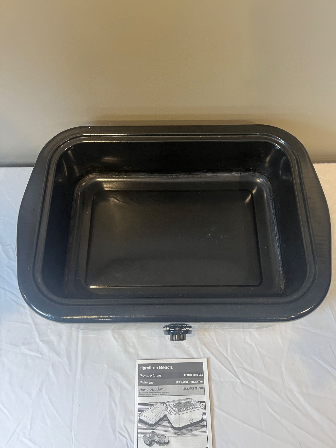 Powers on and creates heat. Has some staining to interior of lid