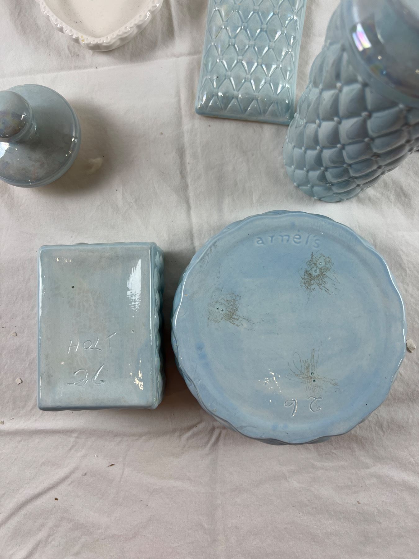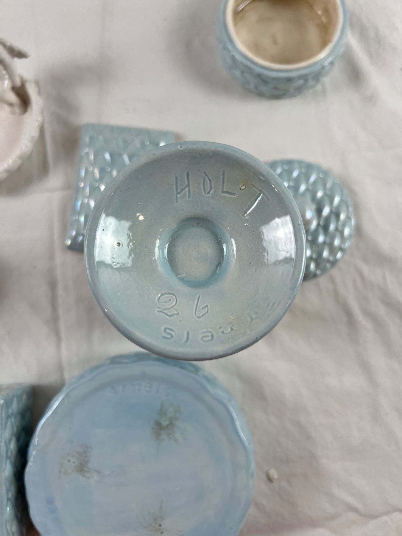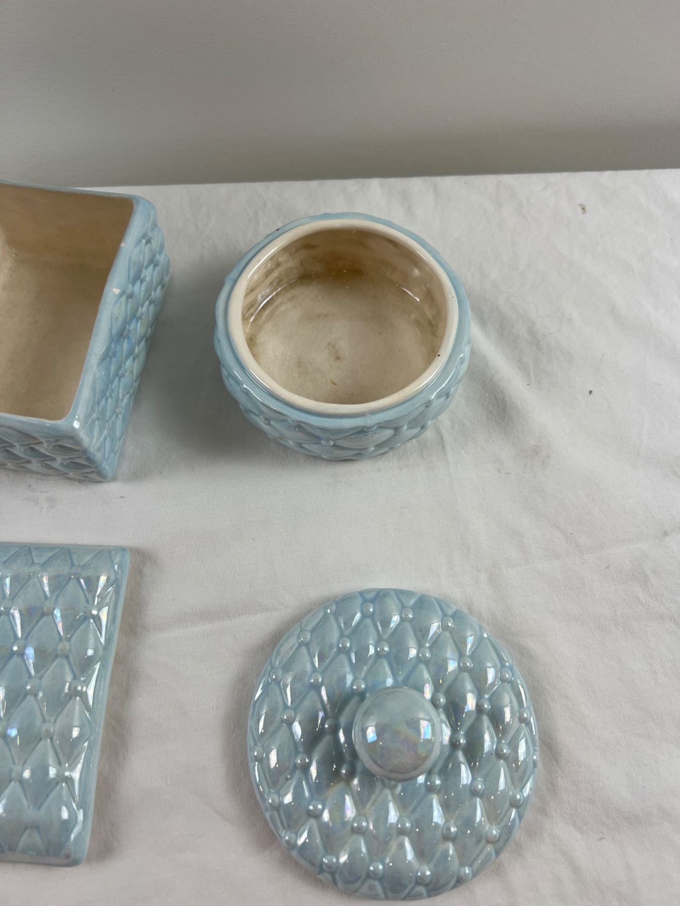 Some damage to rim of larger bowl. Tallest piece measures 9"
