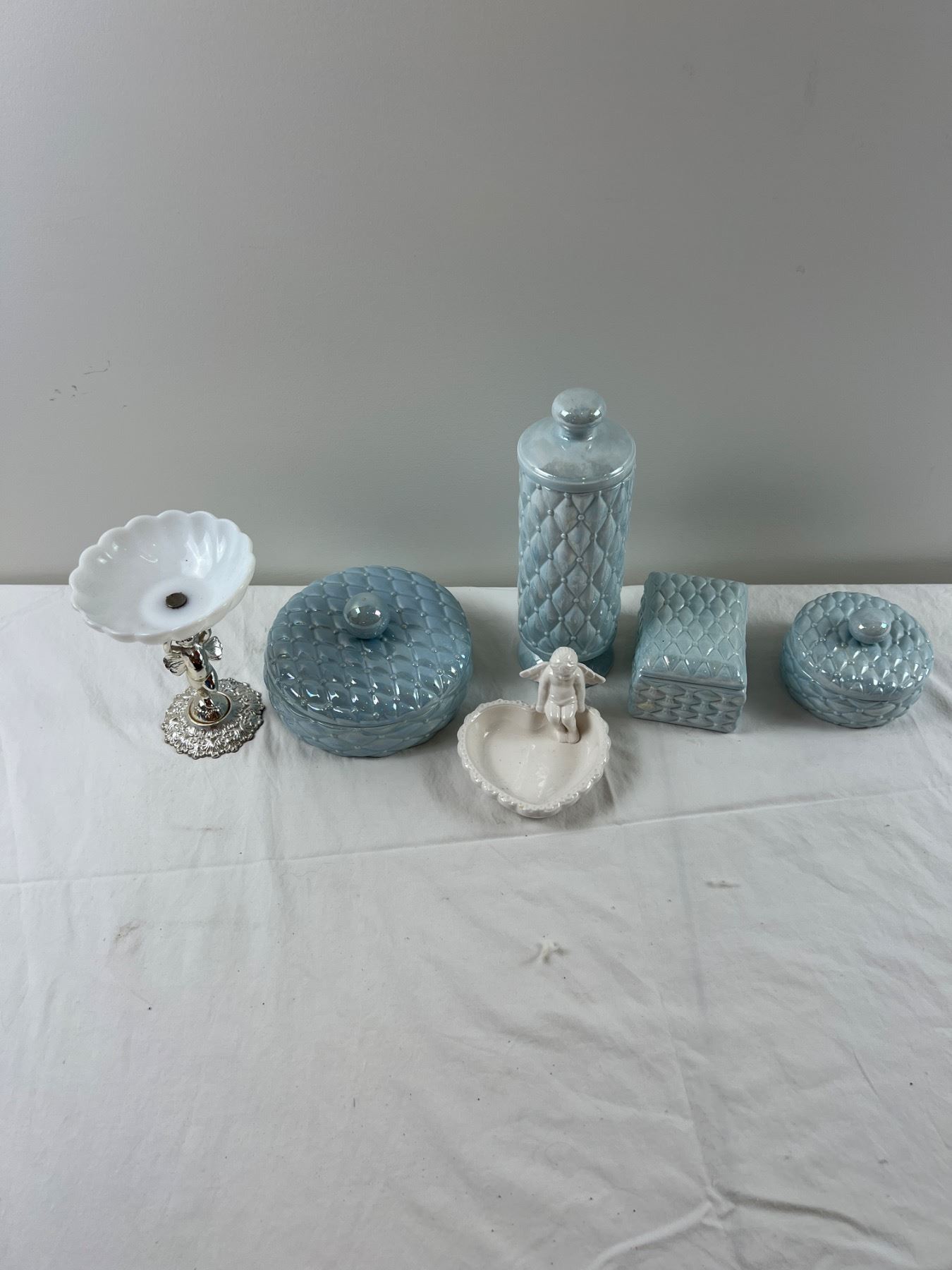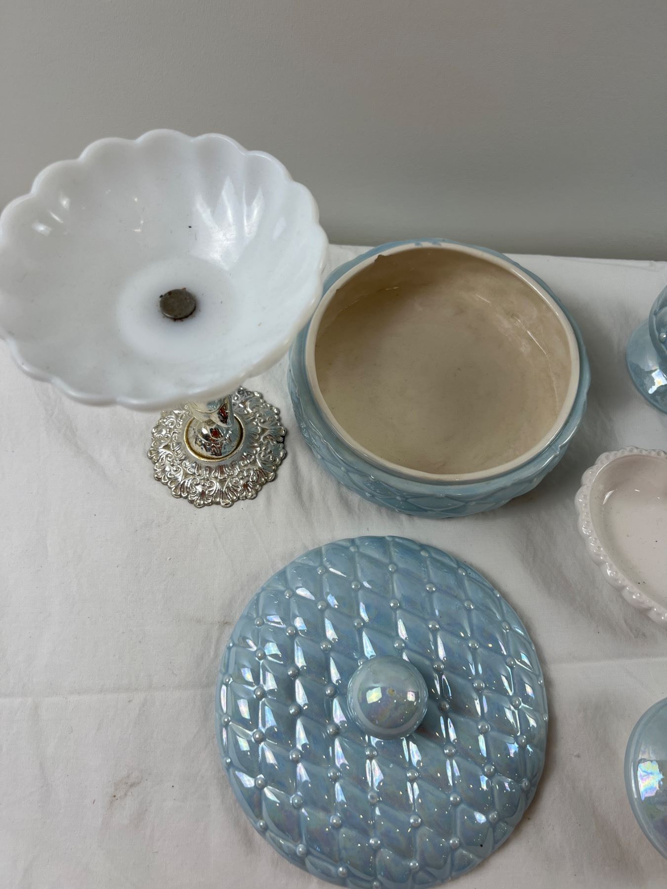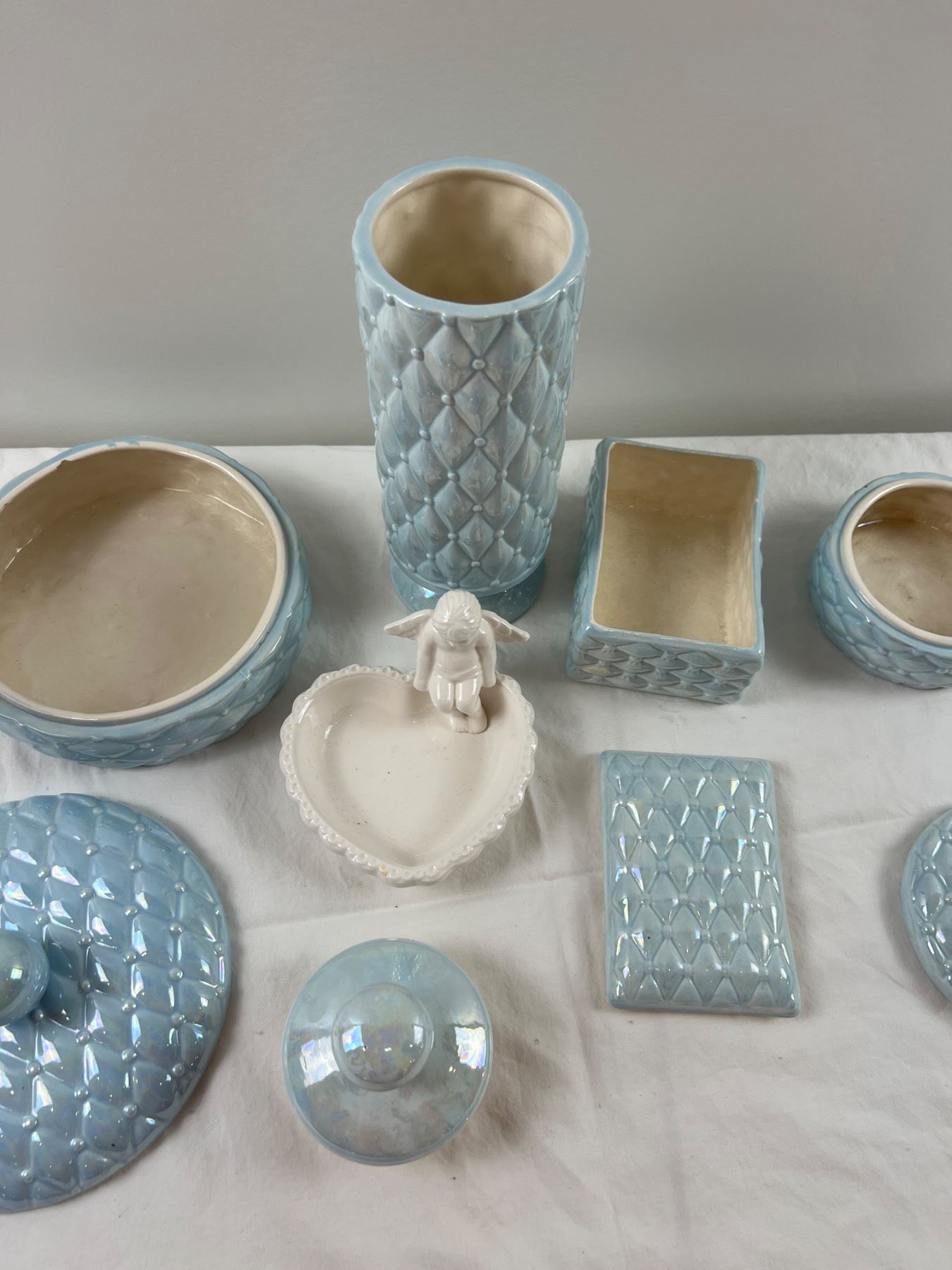 Some damage to rim of larger bowl. Tallest piece measures 9"