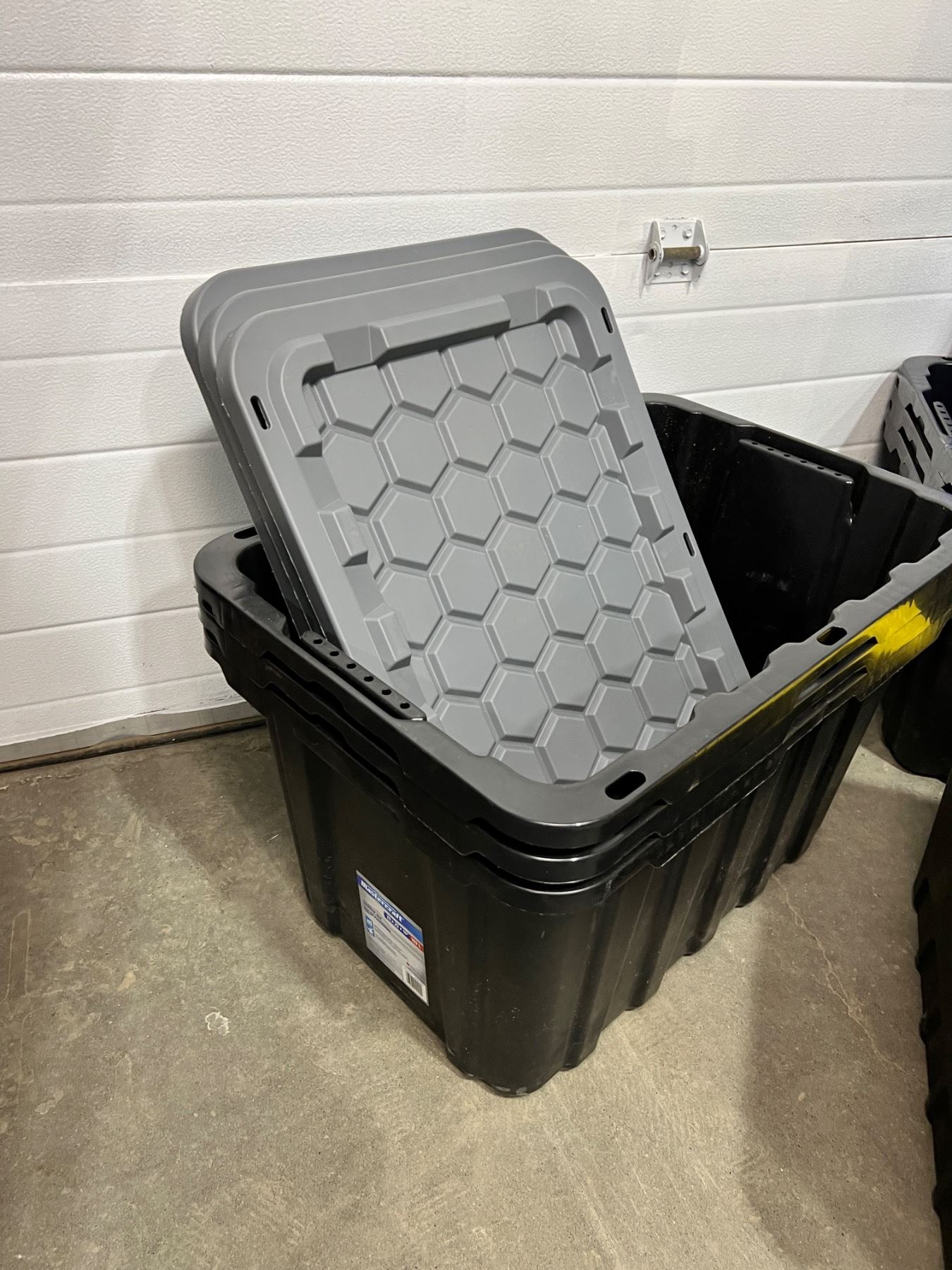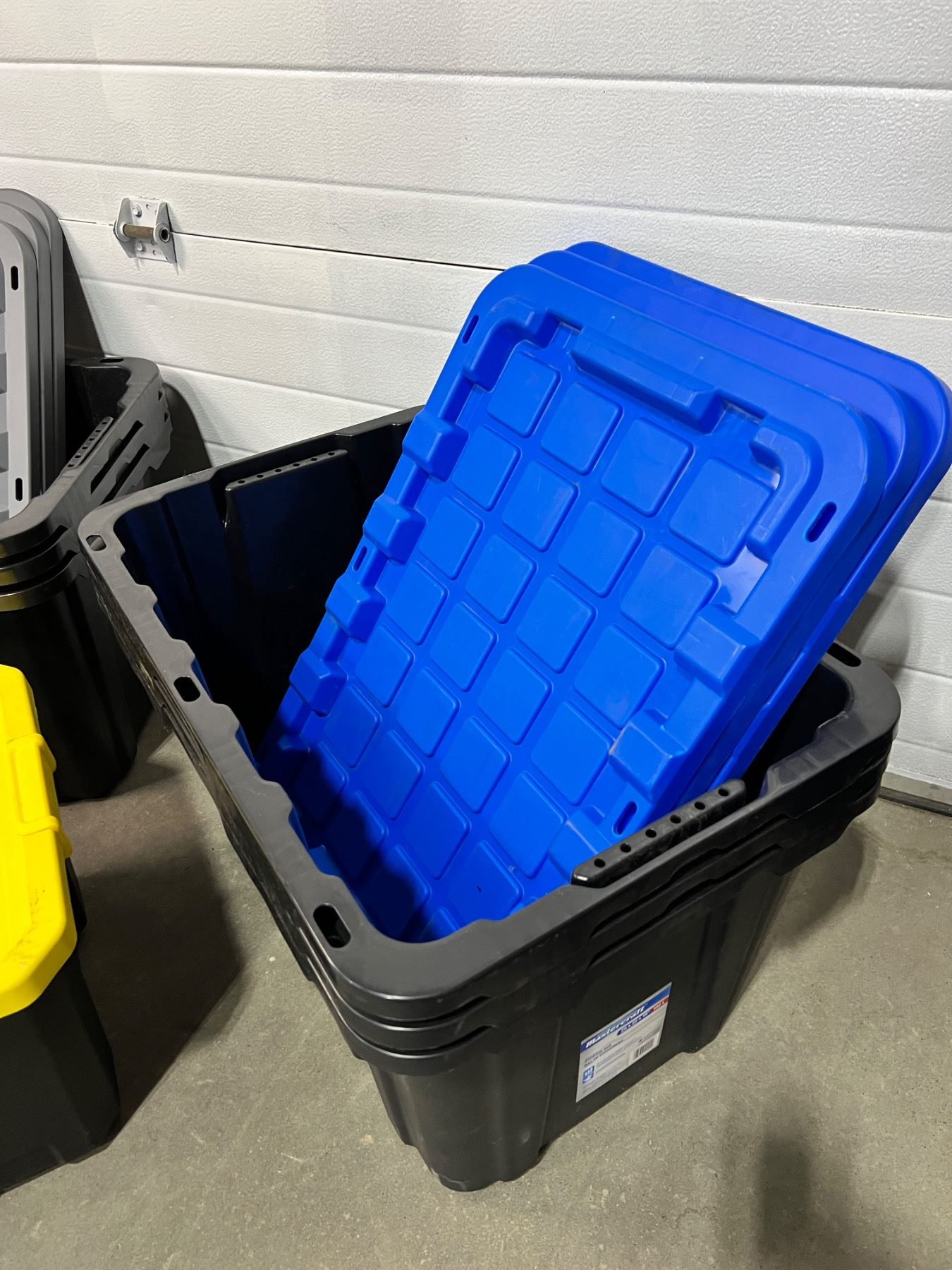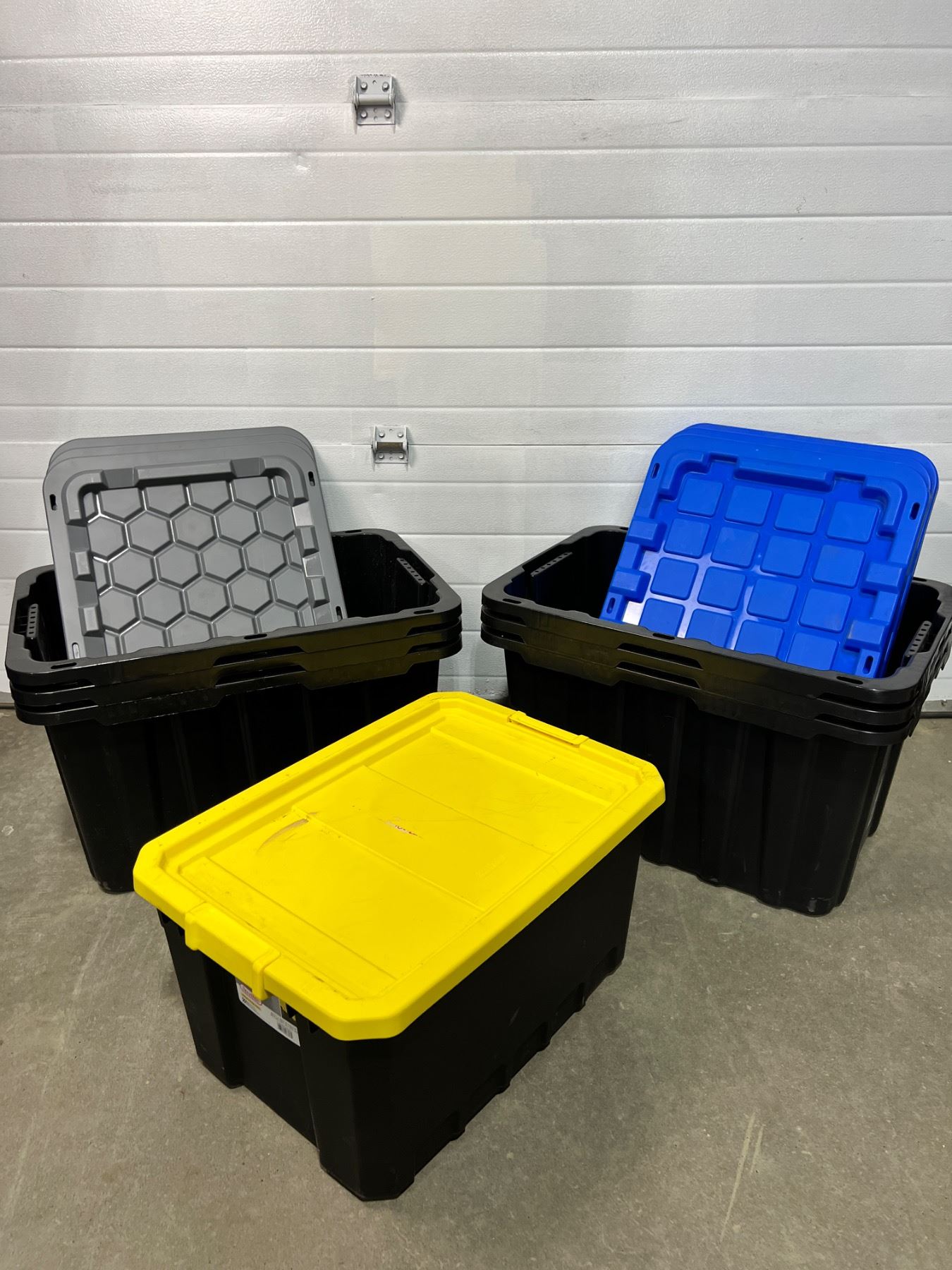 Includes, 6 Mastercraft 102L (29 x 20 x 16"), 1 Sterilite 19Gal, all have lids