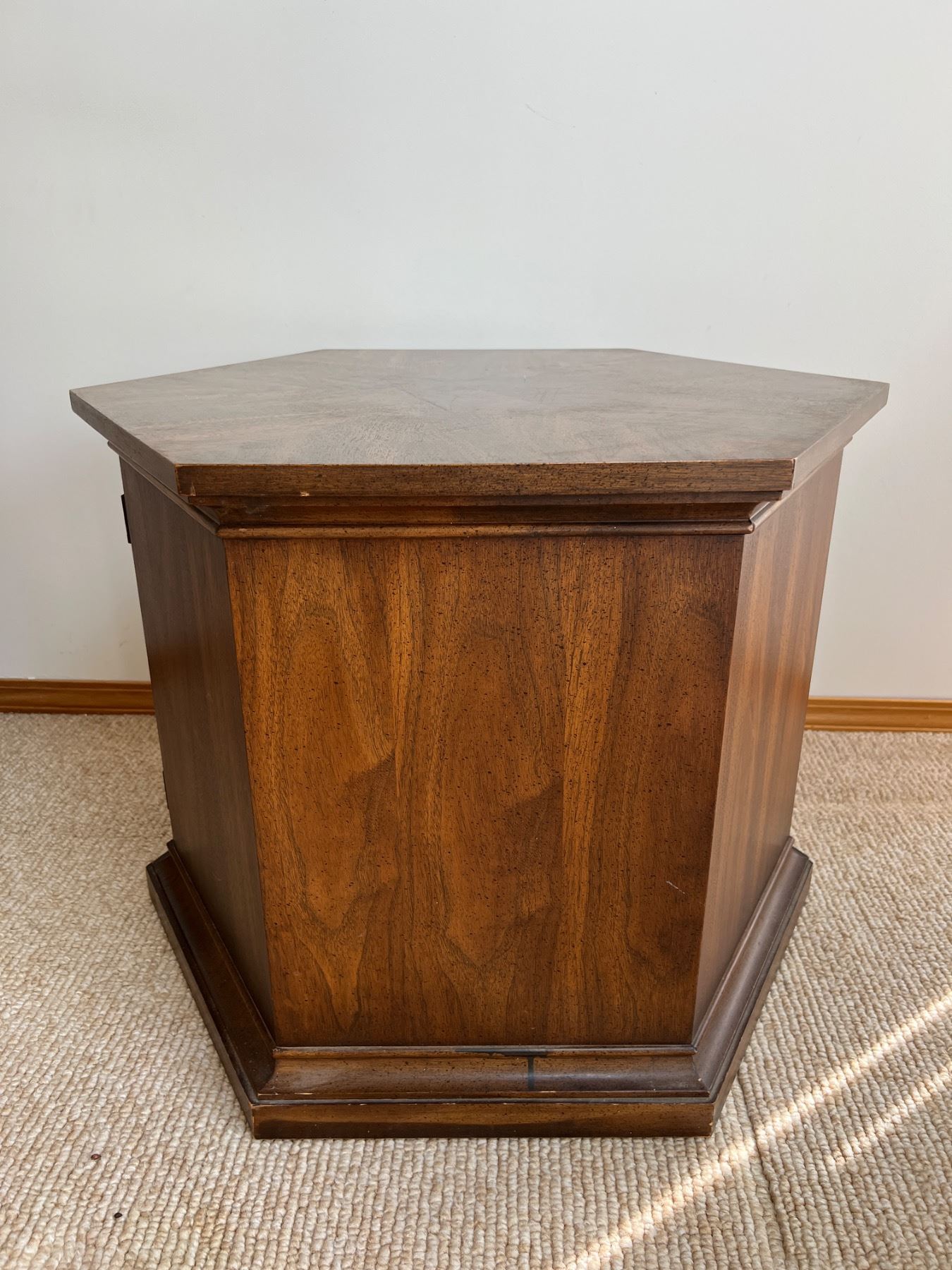 28" H by 25"W by 28" D. Stain on rear from drip of paint.