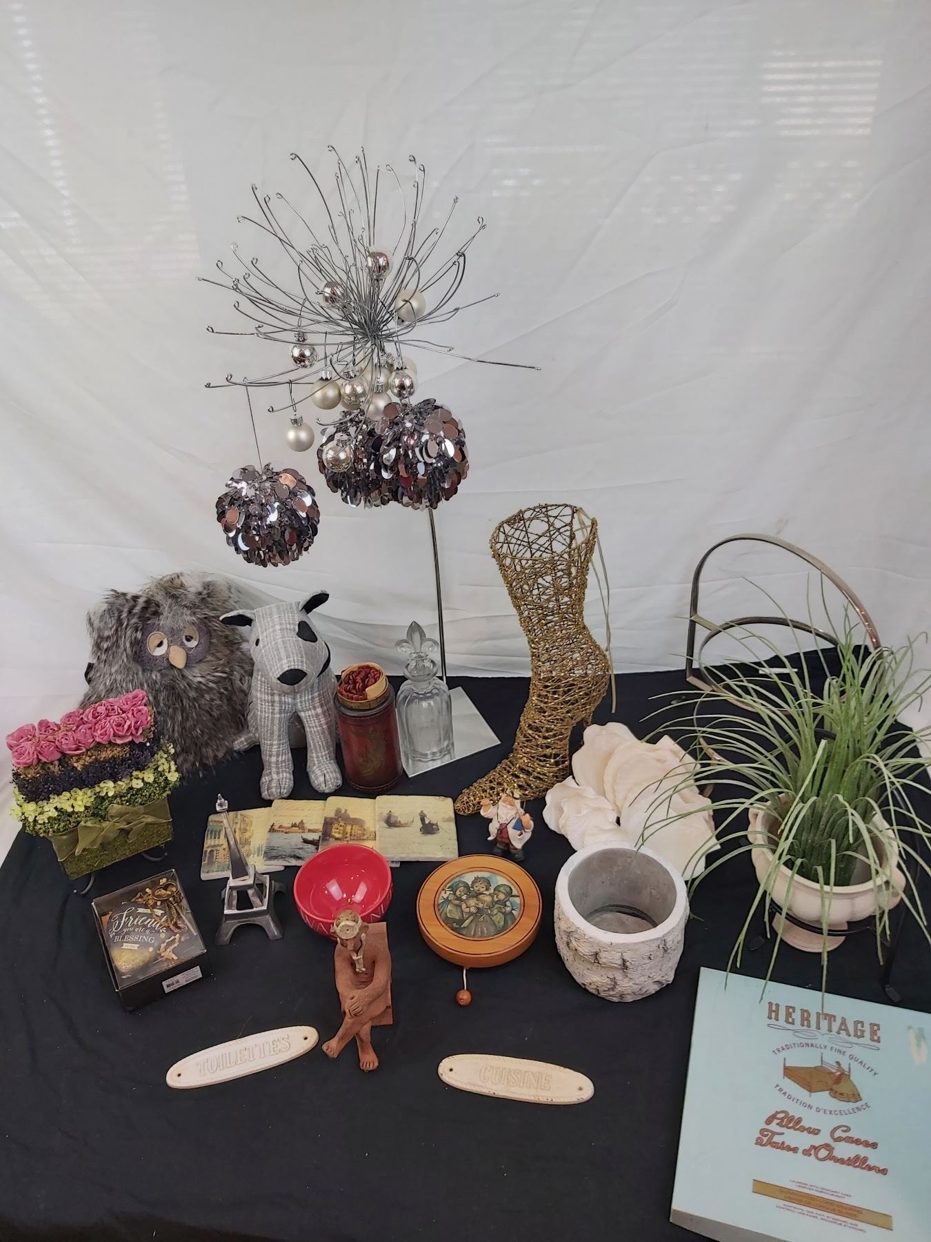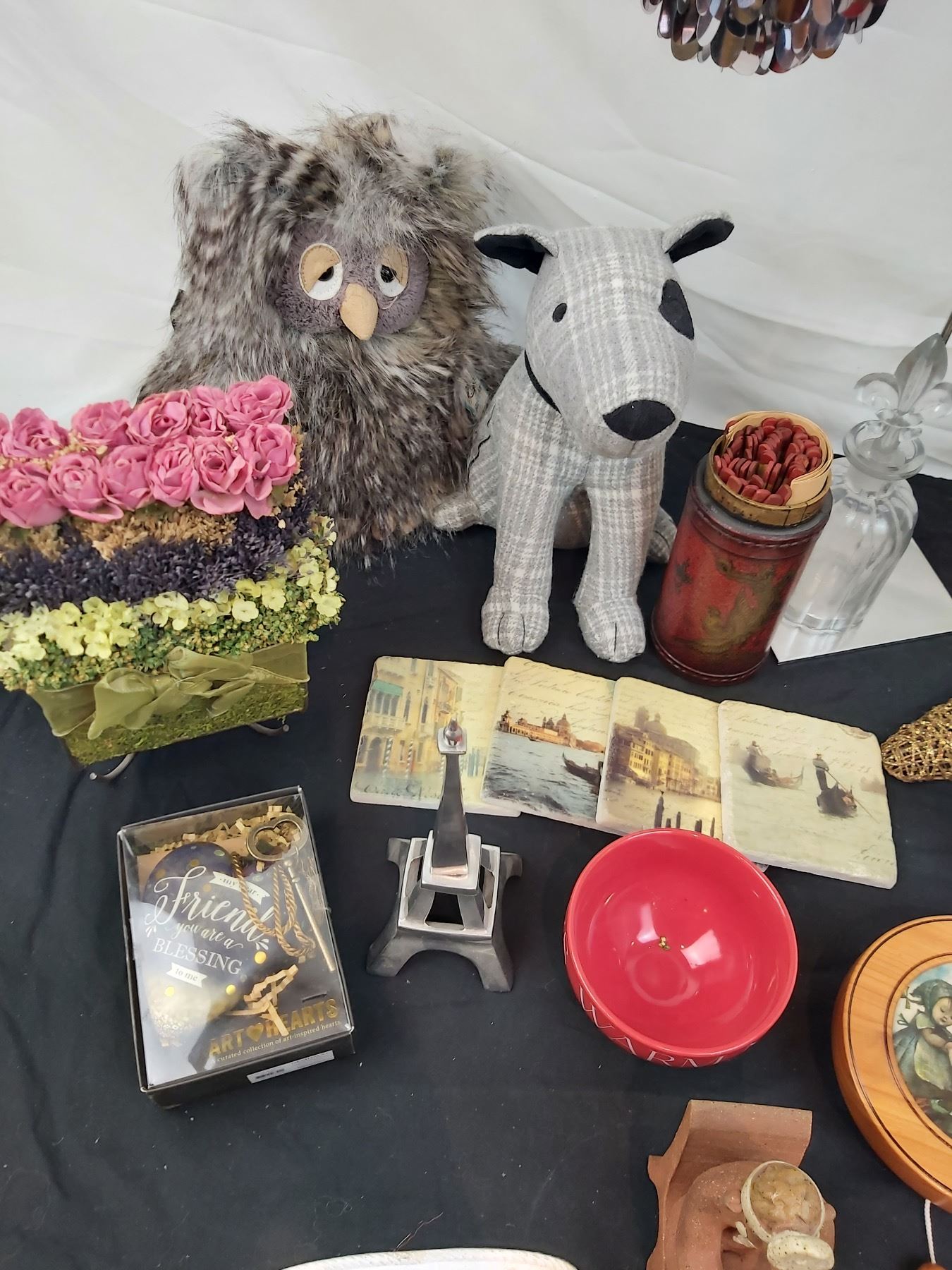 Includes, Heritage pillow cases, Chinese fortune sticks, W. Germany music box, faux plants, etc.