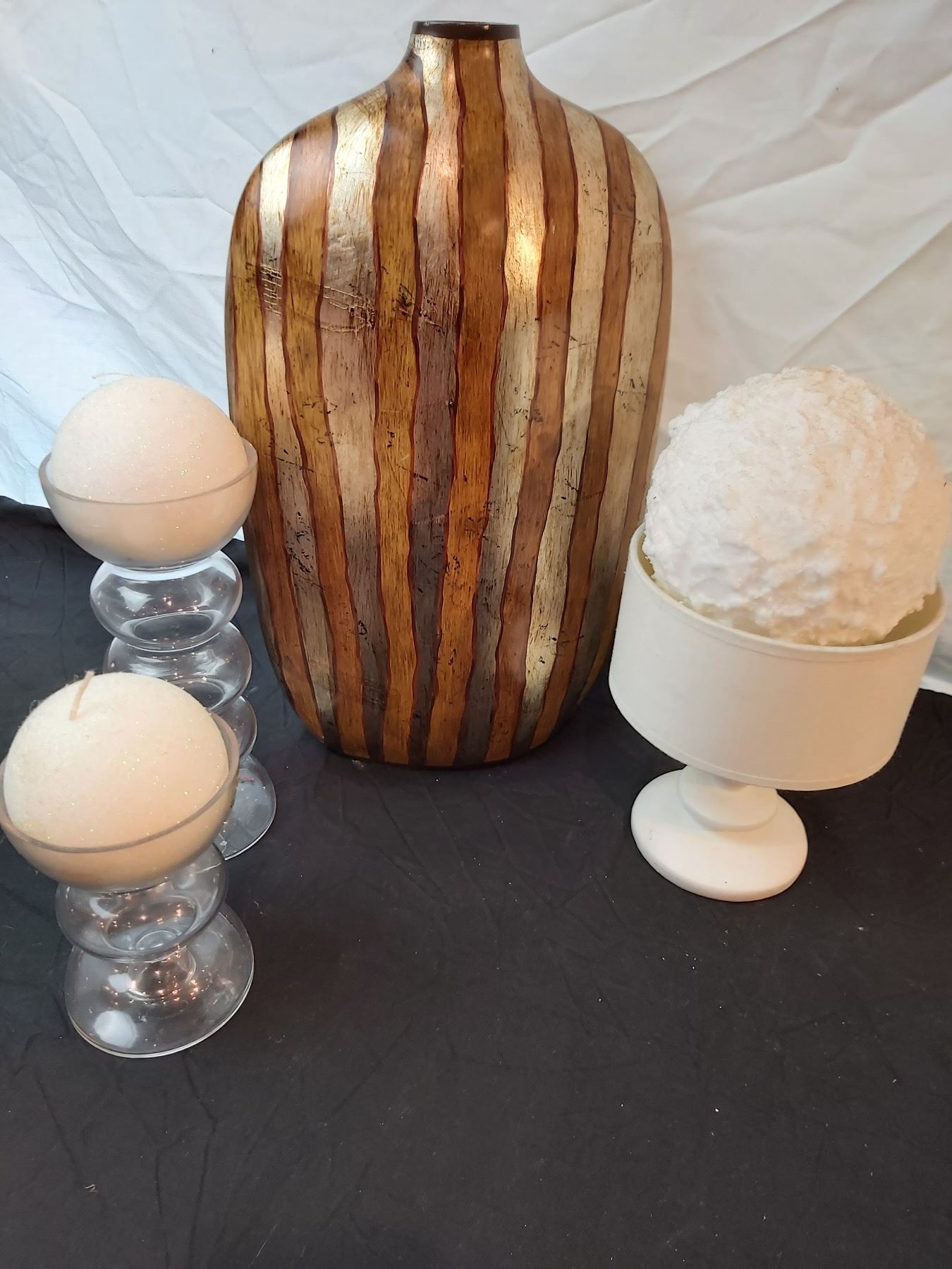 Includes 3 candles, 1 large vase; 10.5"L x 18"H
