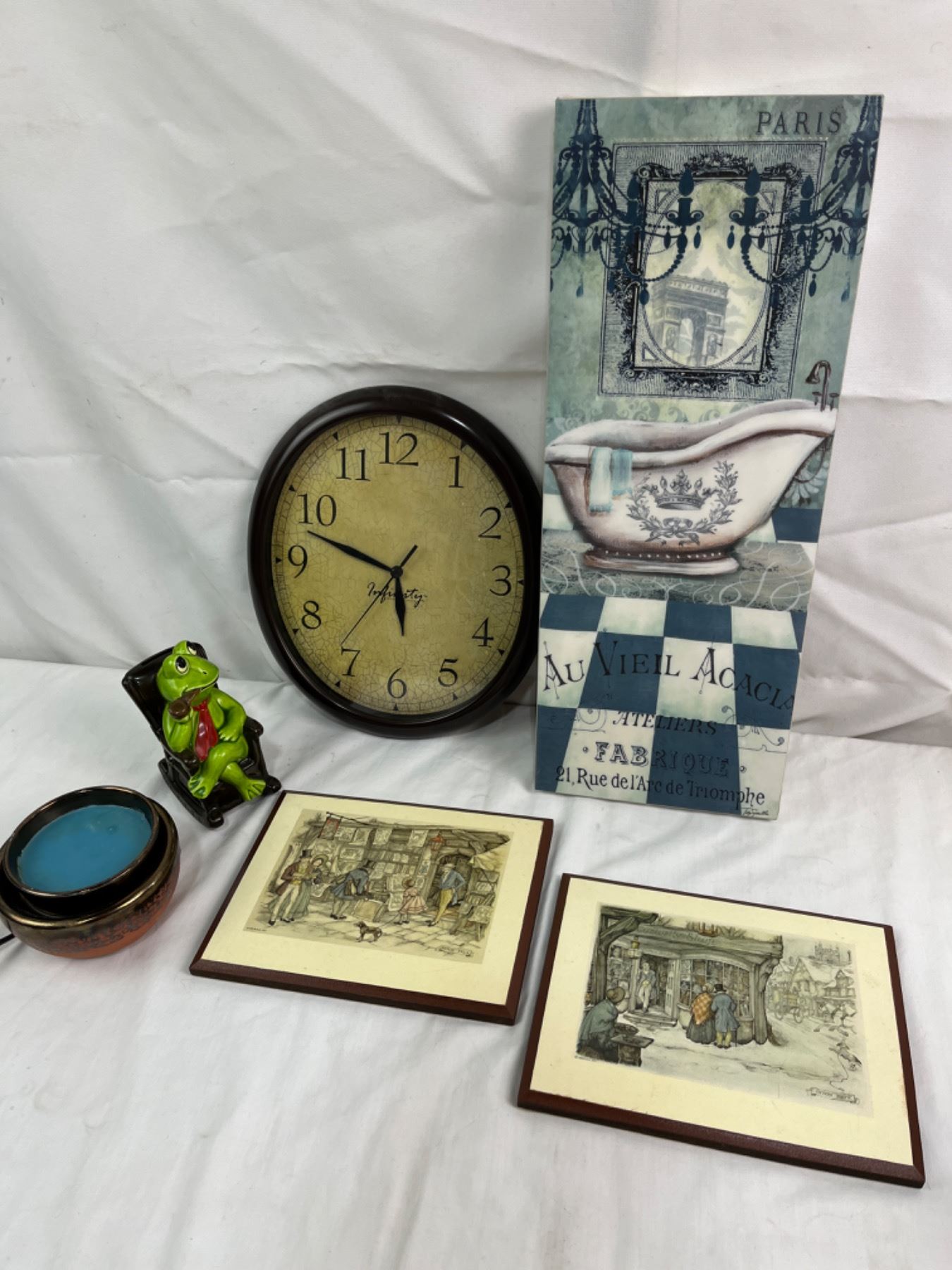 Includes, Scentsy candle warmer (turns on), Infinity Wall Clock (12x10.5"), Anton Pieck prints, etc.